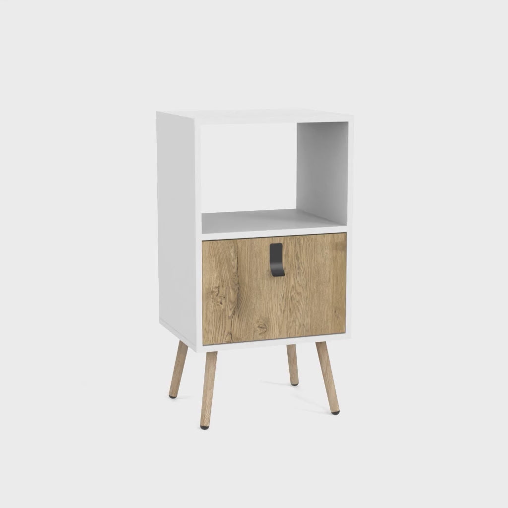The Toka Tall Nightstand will add a touch of refinement to your bedroom. It's unique thanks to its eye-catching dual-tone white/macadamia finish and modern style. A large drawer (13.2"W x 4.9"H) with a chic handle for covert storage and an open storage area (14.5"W x 9.9"H) for easy access to your bedtime reading material or display items are also features of the nightstand. With four robust wooden legs, this nightstand offers valuable storage and a stylish touch to your living space. Its large top surface (15,7"W X 13"D) makes it ideal for keeping your bedtime necessities within easy reach.