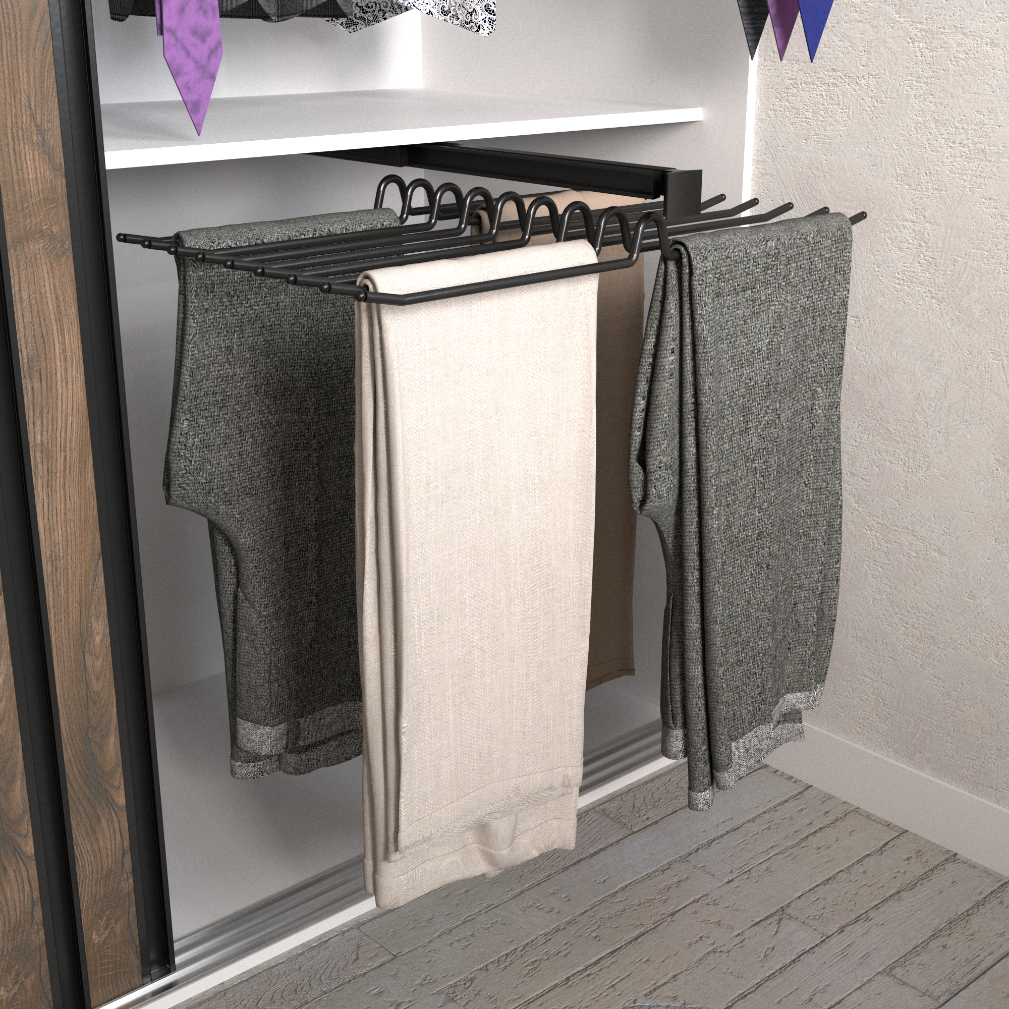 Pull Out Trousers Rack Eighteen Arms Black Clothes Organizer , Black