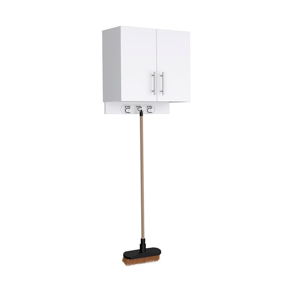 Albany Cabinet Wall Mounted with Broom Hangers and Metal Handles