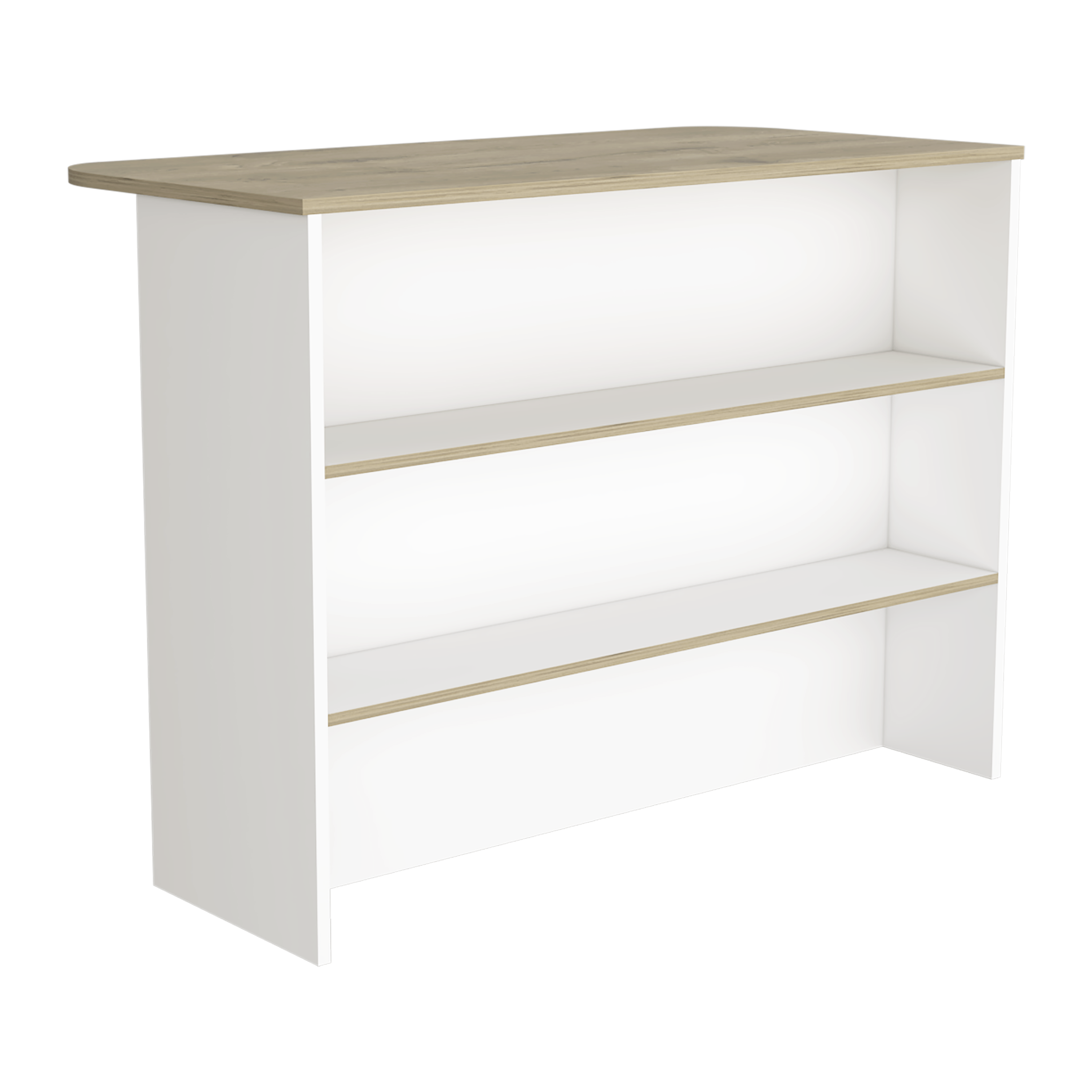 Make your kitchen the heart of your home with the Britton Kitchen Island with a Two-Tier Storage Shelf and Ample Workstation. This fabulous kitchen island is crafted with modern-style manufactured wood and is designed to be both stylish and functional. It features a chic white/light pine finish that will blend perfectly with any kitchen decor, as well as a generous amount of workspace (47,2 "W X 23,6 "D) and three-tier shelves (10,8 "W X 8,2 "D) for all the storage you need. With the added space offered by this beautiful island, you'll have plenty of extra room to prep meals or entertain guests without fussing over clutter. Get ready to show off your baking skills or host dinner parties for friends - this gorgeous kitchen island will surely add class and functionality to any space. Stop waiting - take control of your kitchen today!