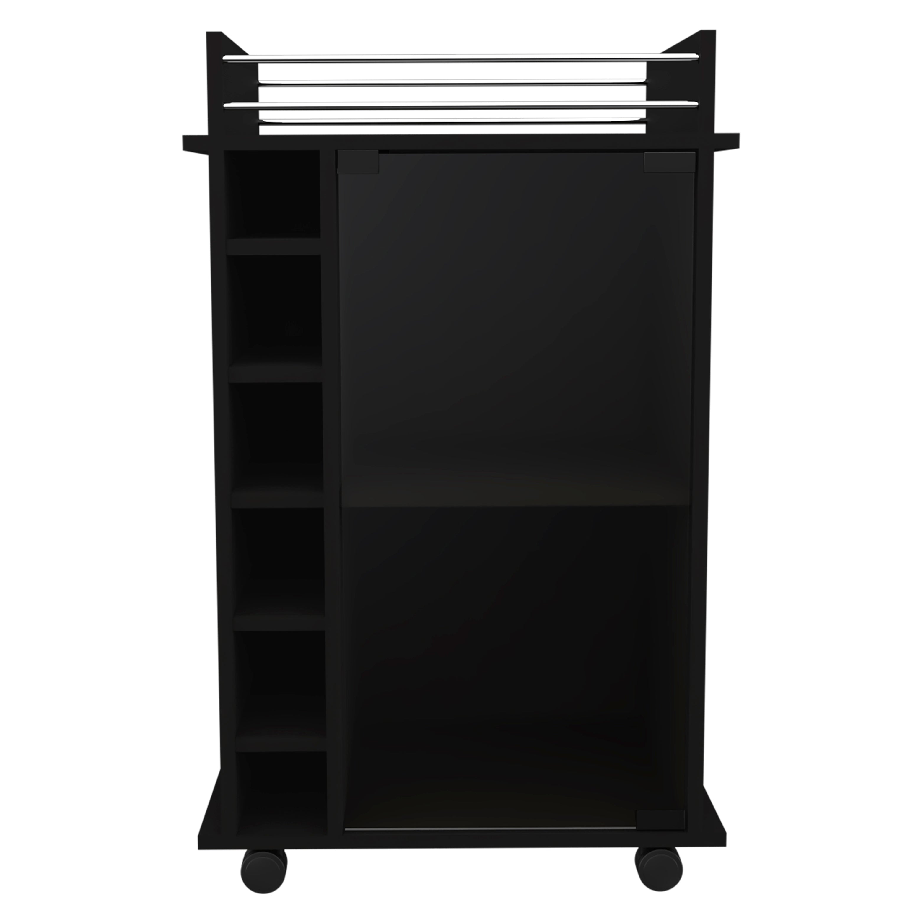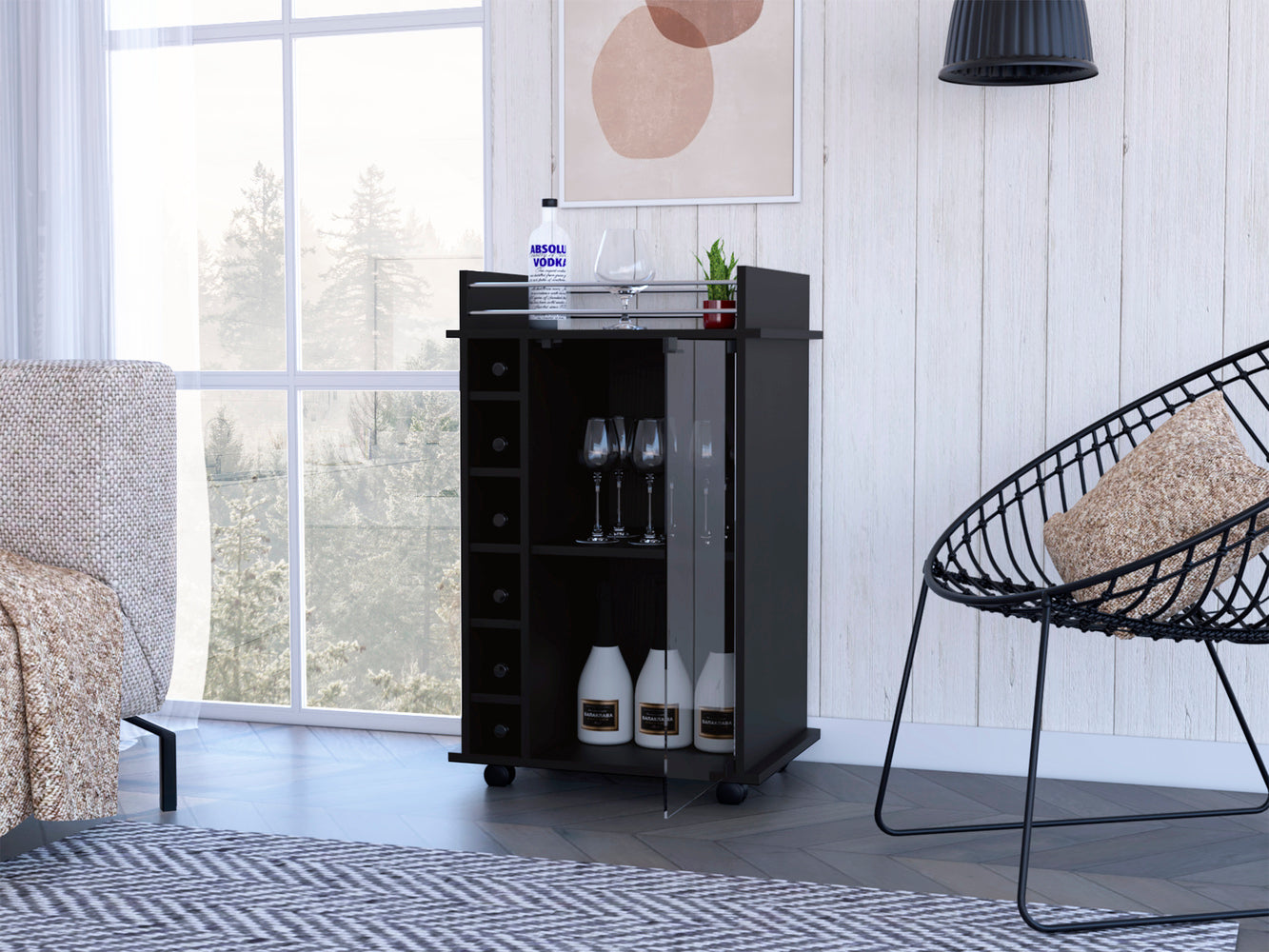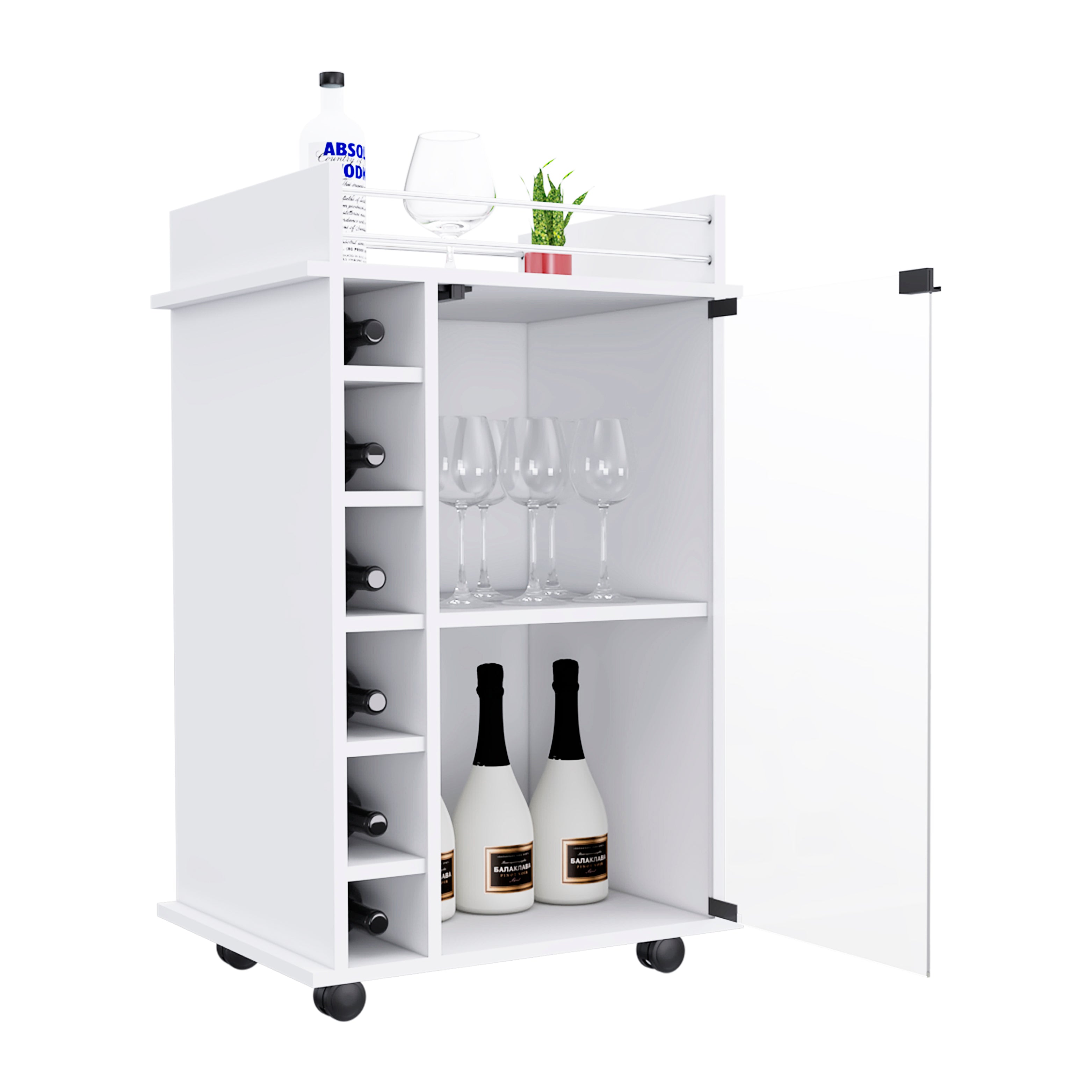 Huali Bar Cart, Six Built-in Wine Rack, Glass Door, Four Casters, Two Shelves