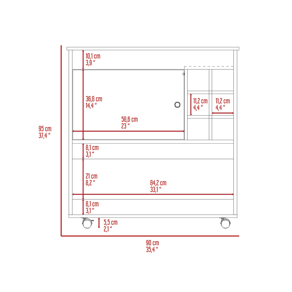Lotus Bar Cart, did you need more storage and a luxury touch in your home bar? The Lotus Bar Cart is an excellent way to organize your favorite drinks and show your contemporary style! Includes six-bottle cubbies to keep your wine safe and fresh, one large cabinet for your glasses, and the lower panel are perfect for your cocktail essentials; you can also prepare your favorite drinks on the countertop (35,4’’W X 18,5’ ’D), and the casters make it easy to move around. Designed with elegant black wengue and light oak-white manufactured wood finish.