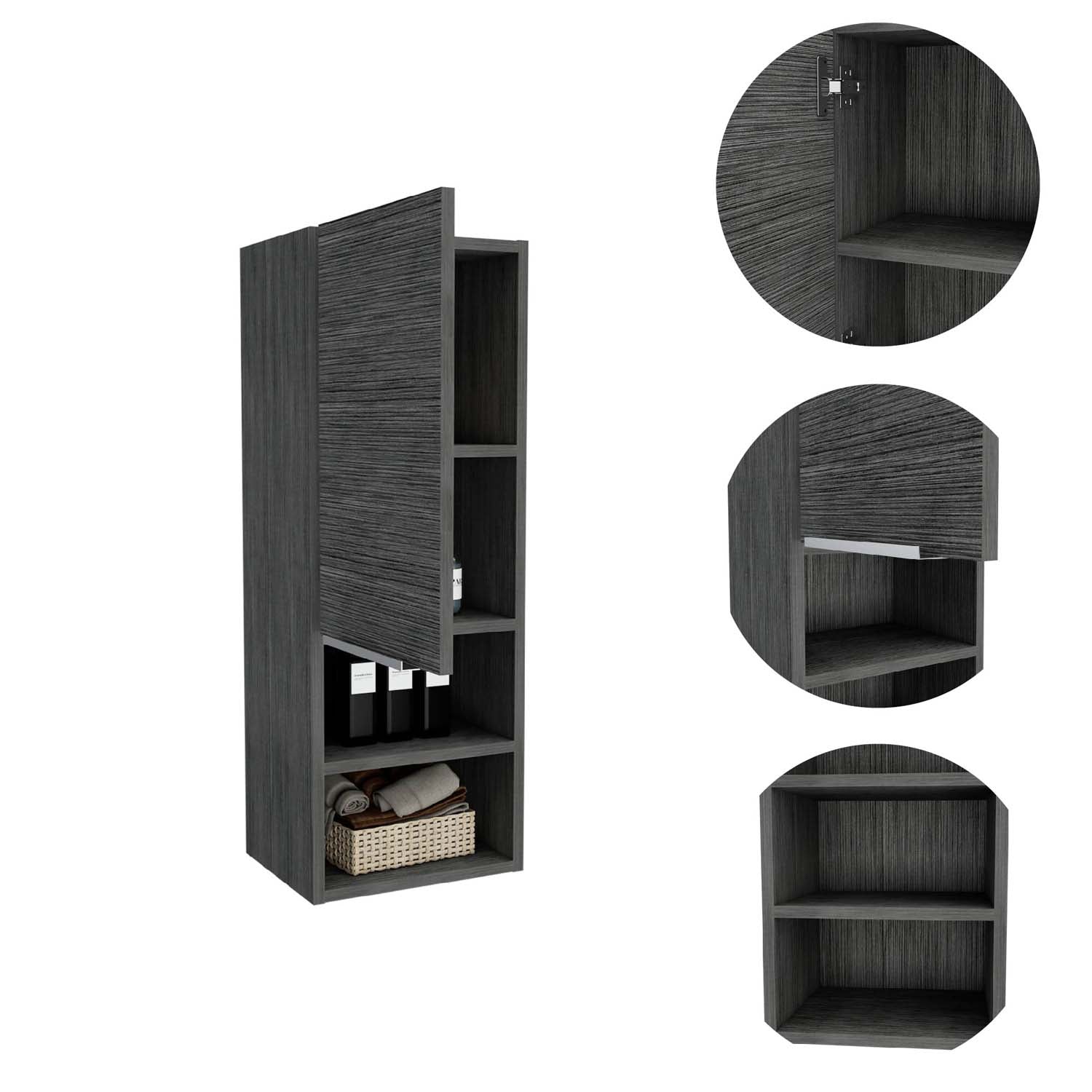 Savona Medicine Single Door Cabinet provides you with a very modern and attractive storage option for your bathroom and this cabinet is made to last and withstand the conditions of humidity in a bathroom. It features two lower open shelves for easy access items, a Top Cabinet with two internal shelves 5,7” in height X 10,6” in Width, and is easy to assemble. Designed with elegant Light Oak, White, Smokey Oak, and Black Wengue manufactured wood finish.