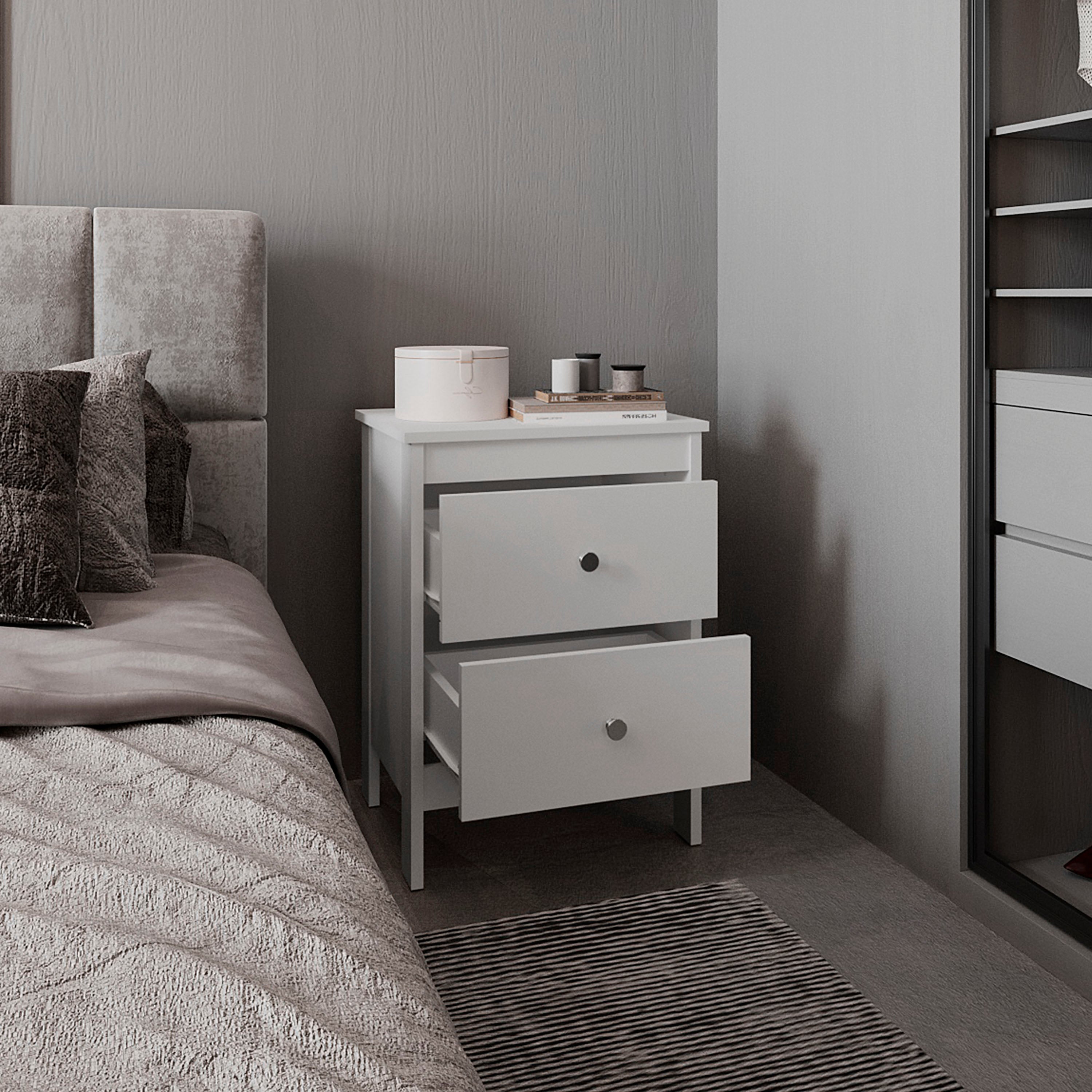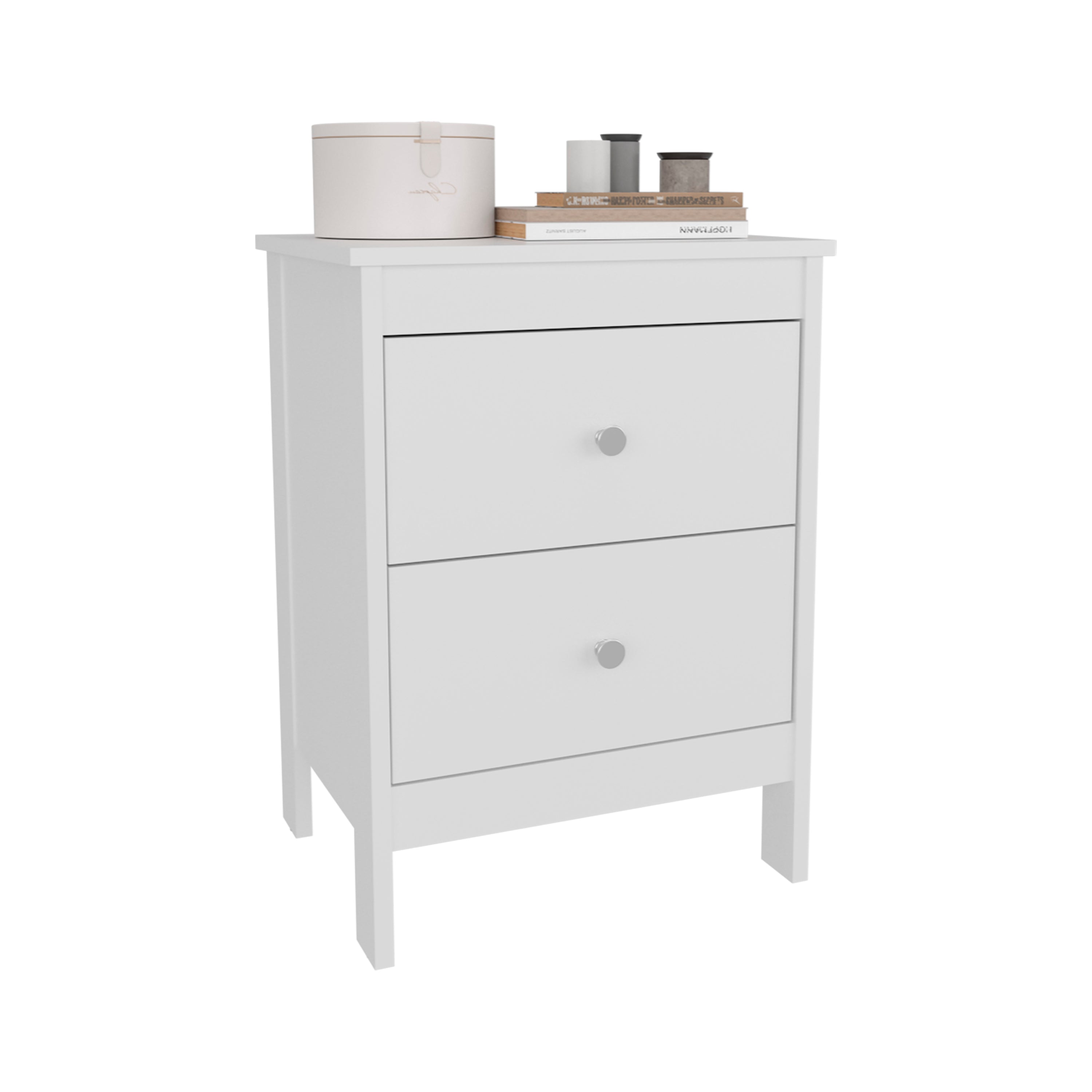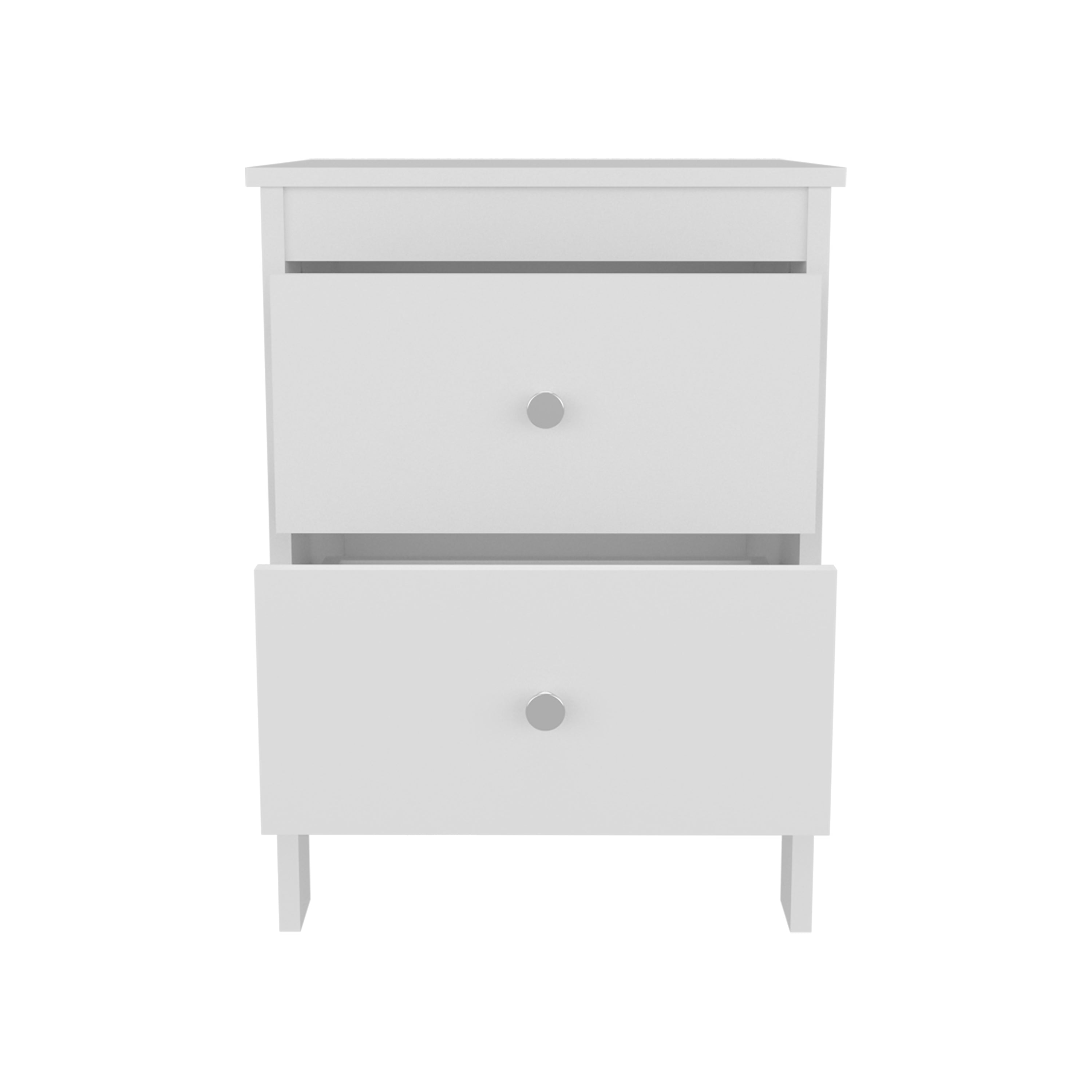 The Norge Nightstand is a sleek and functional piece designed to keep your bedroom organized and stylish. Featuring two spacious drawers, it offers practical storage for your essentials while maintaining a clean, modern profile. Its compact design makes it perfect for bedrooms of all sizes, adding convenience and sophistication to your nighttime routine.