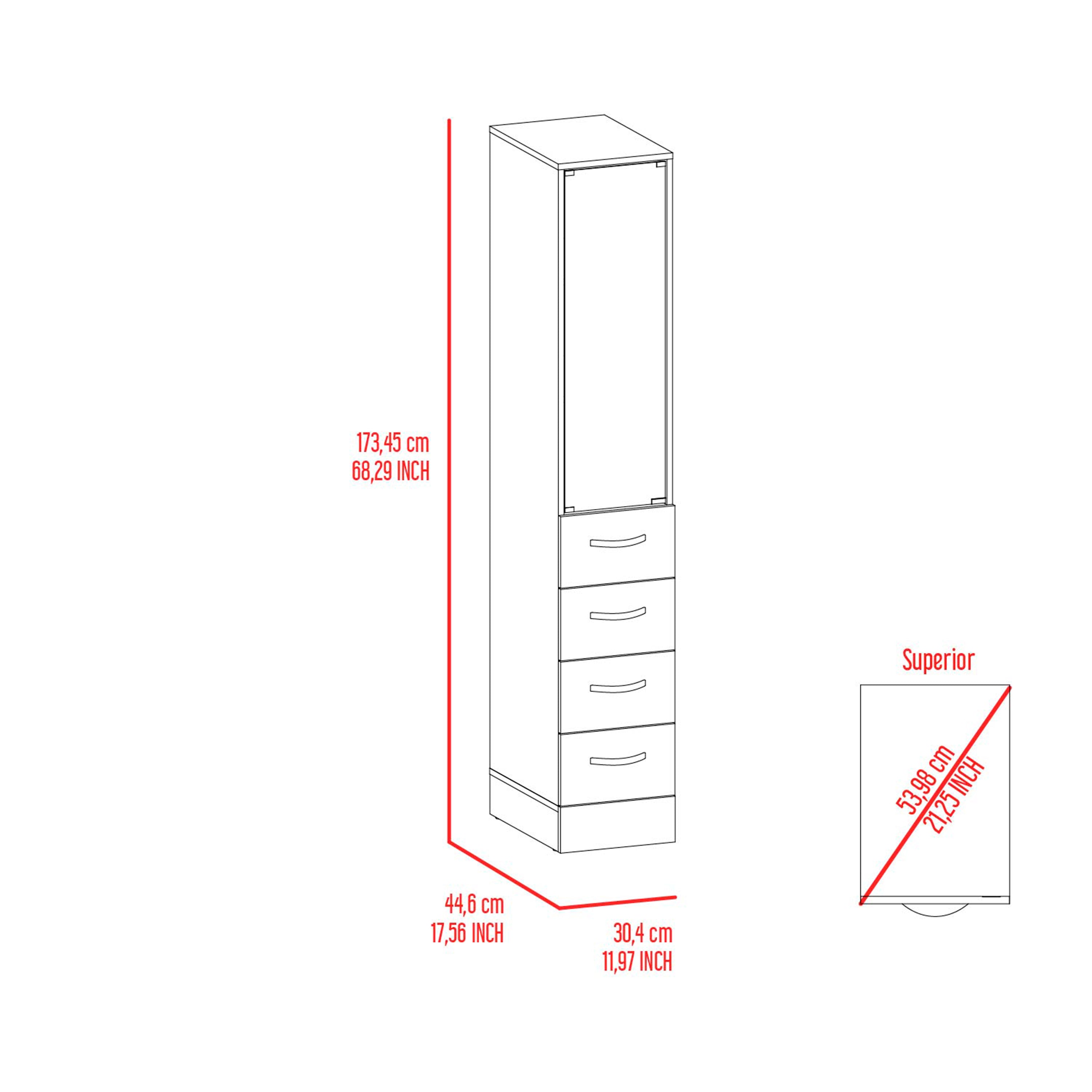 Keep your towels and toiletries more organized and out of sight with the Magna Linen Cabinet. This elegant cabinet fits perfectly in any corner and includes four drawers (4,72"H X 17,56"W) for keeping your essentials tidy. Three shelves (11,02"H) behind a glass door provide the perfect place to view your items.