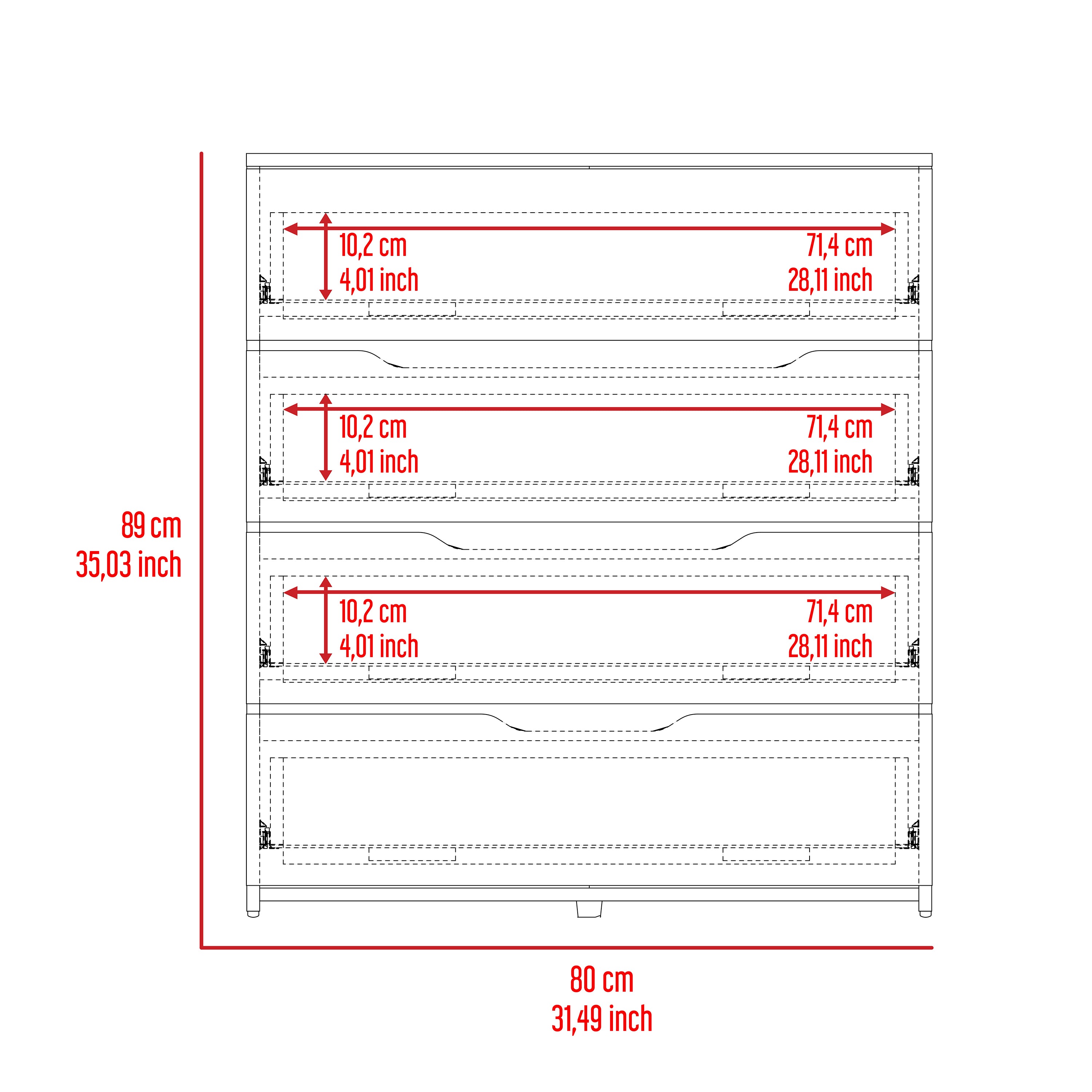 The Aralia Drawer Dresser is your stylish storage solution. It's the perfect home for your clothes, equipped with four ample drawers (10.2"W X 4"H). The generous top surface (31.4"W X 13.7"D) is ideal for showcasing decor or keeping essentials within reach.