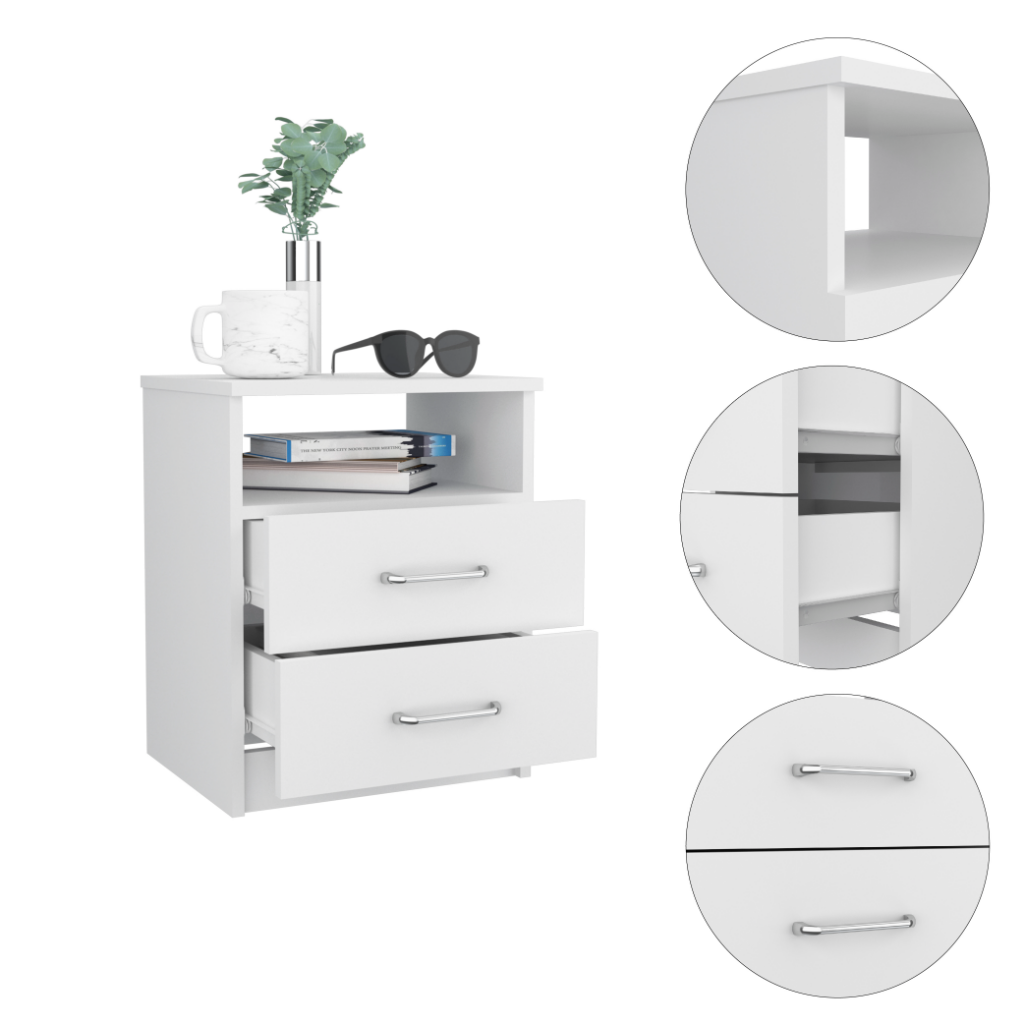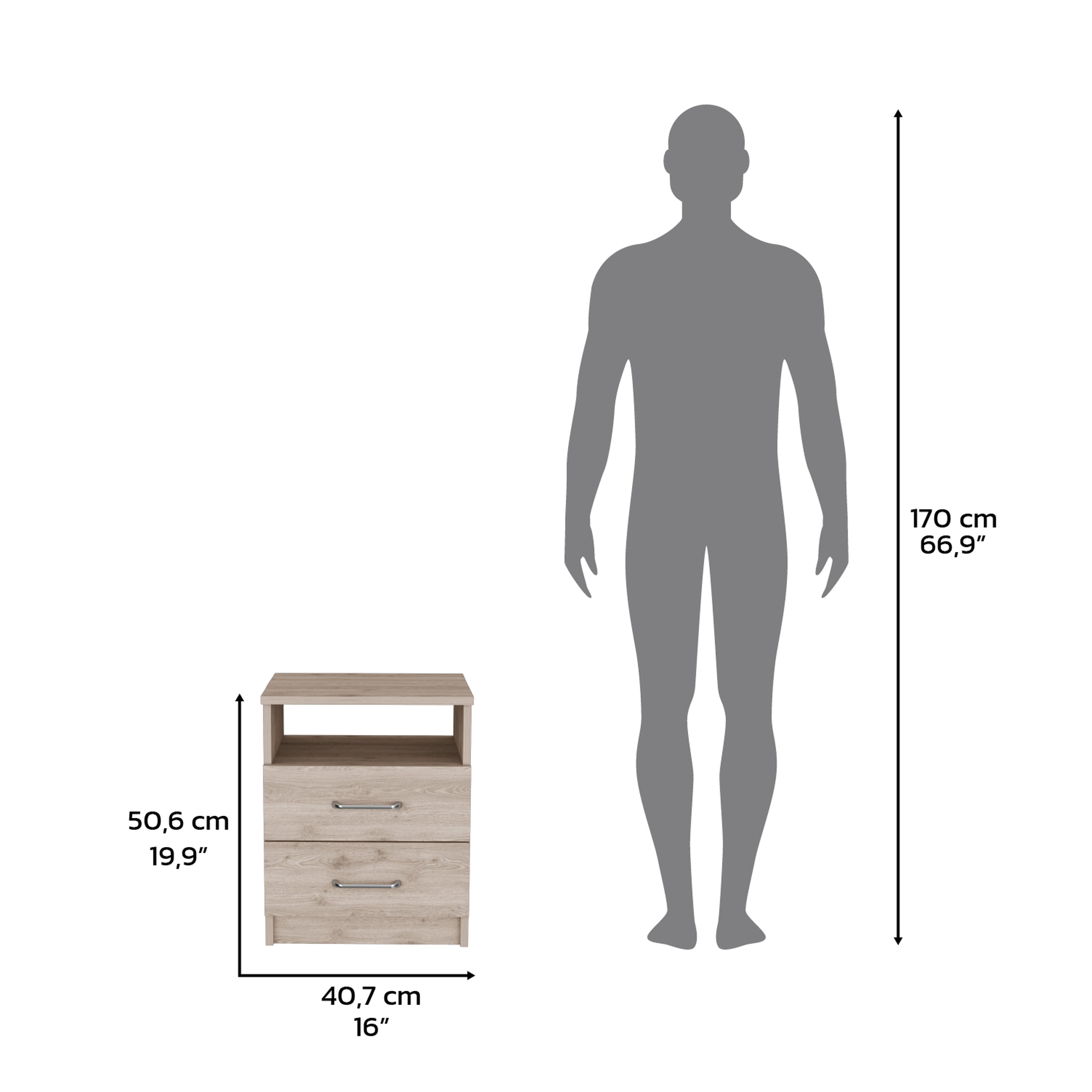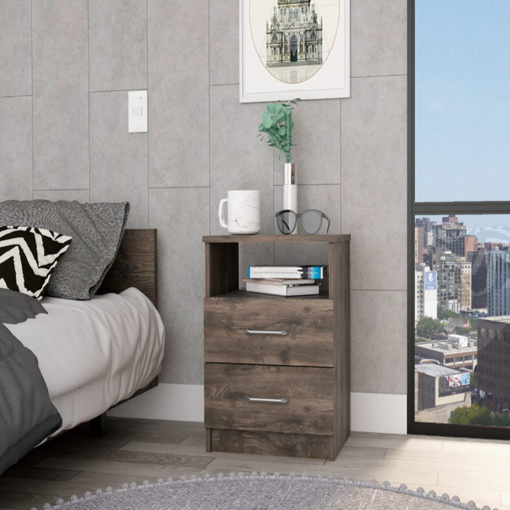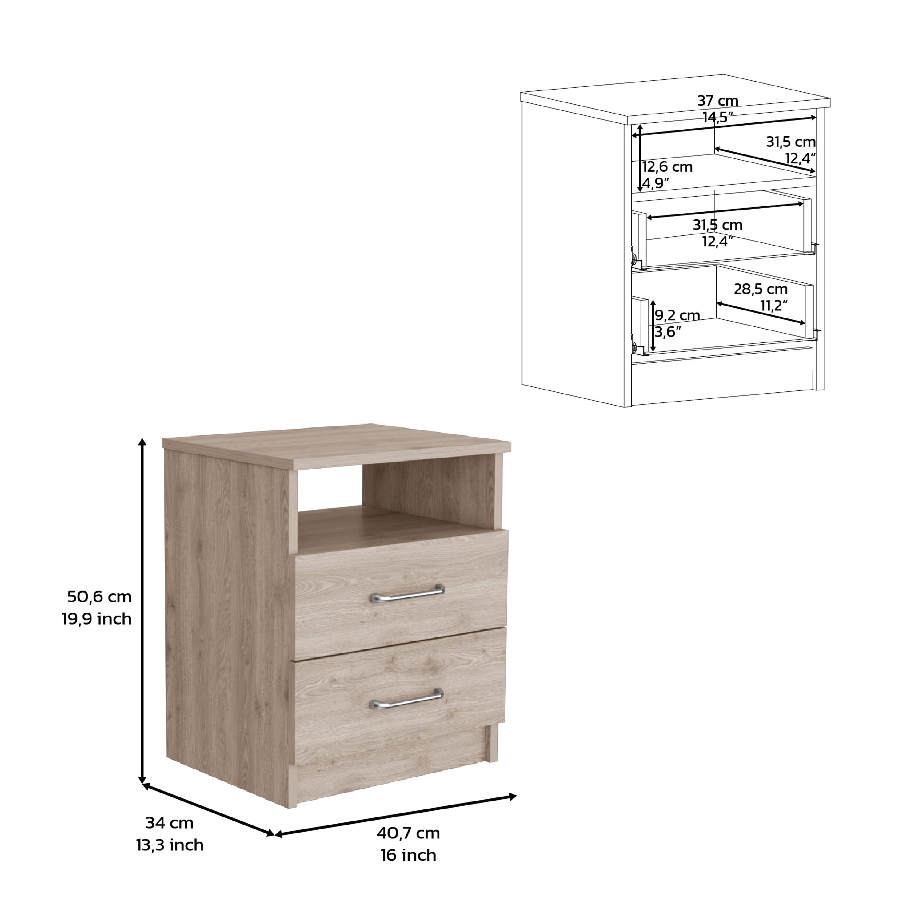Salento Nightstand, Two Drawers, One Shelf, Superior Top