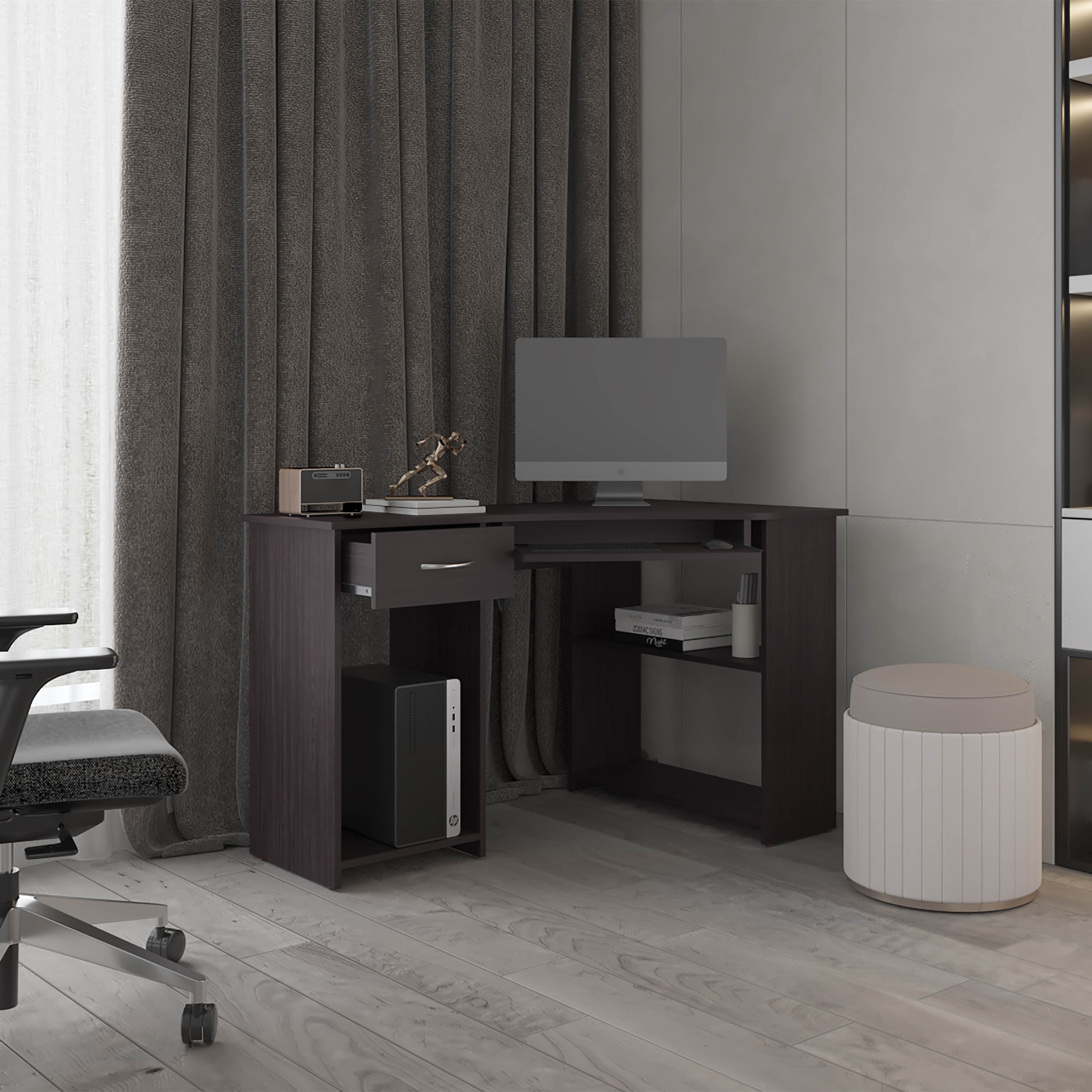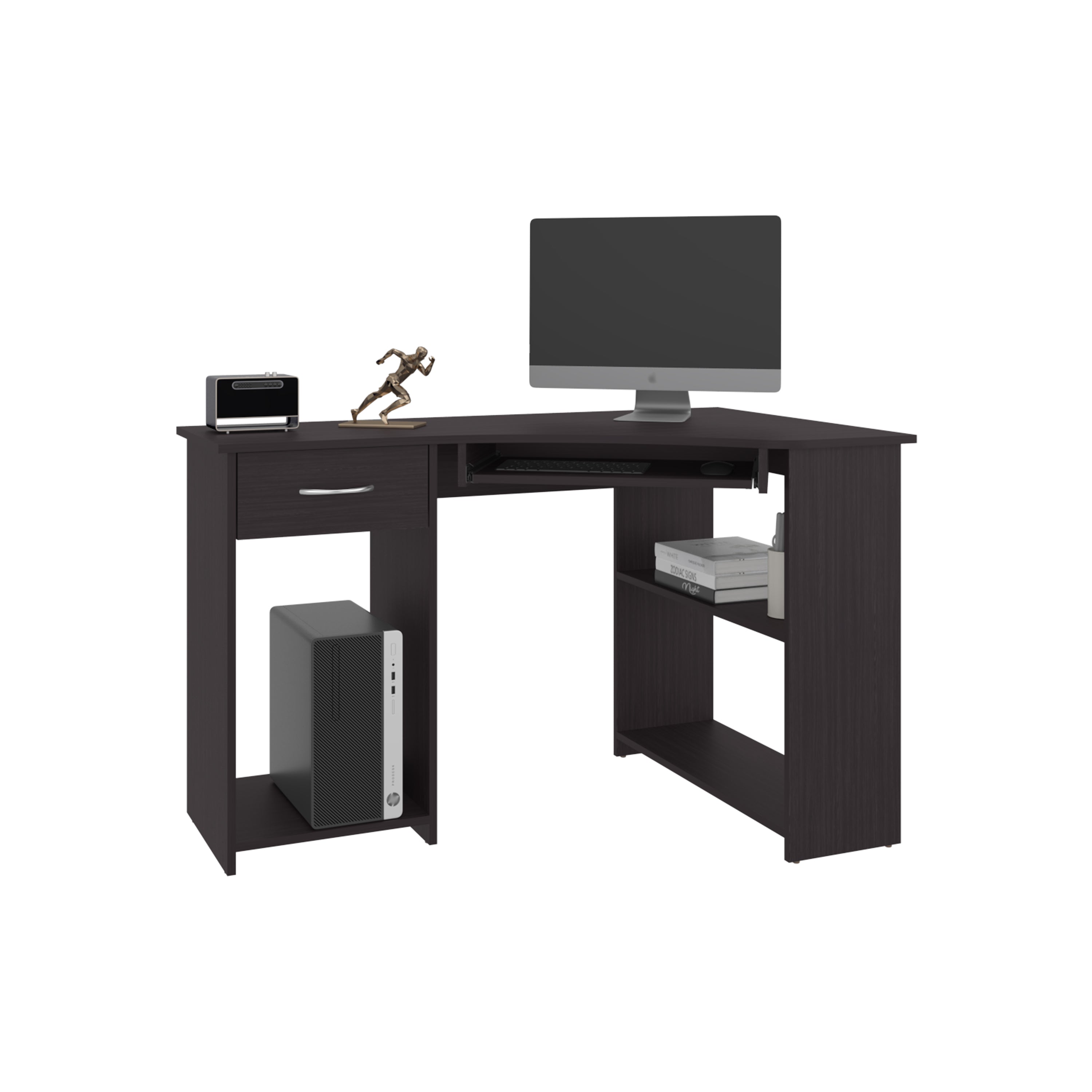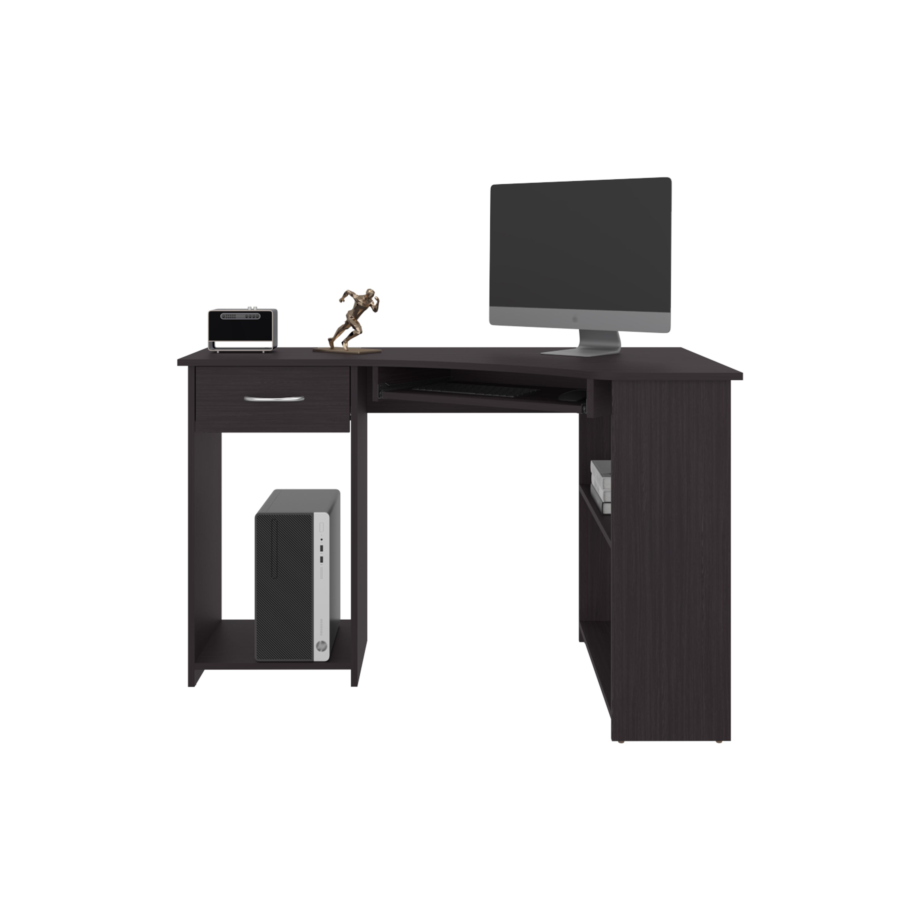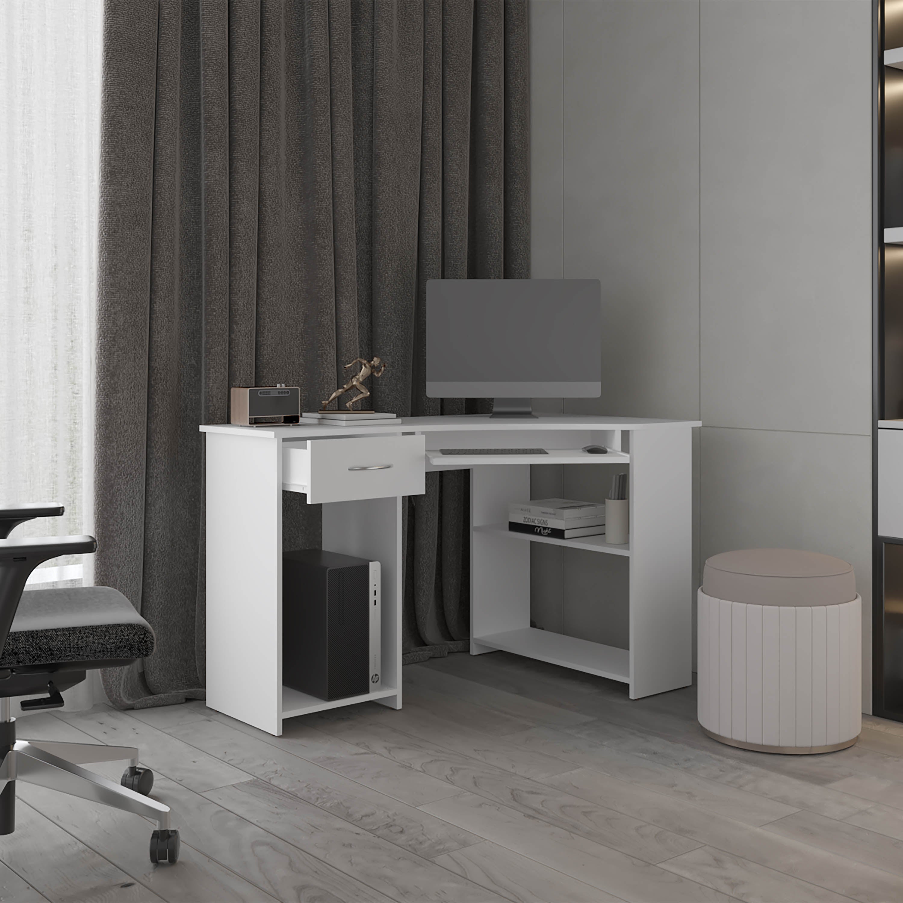 The Sturgeon Corner Desk is designed to maximize workspace efficiency while maintaining a sleek and functional layout. With two drawers and three shelves, it provides ample storage for office essentials, helping to keep your workspace organized. Its corner-friendly design makes it ideal for optimizing space in home offices or work areas.