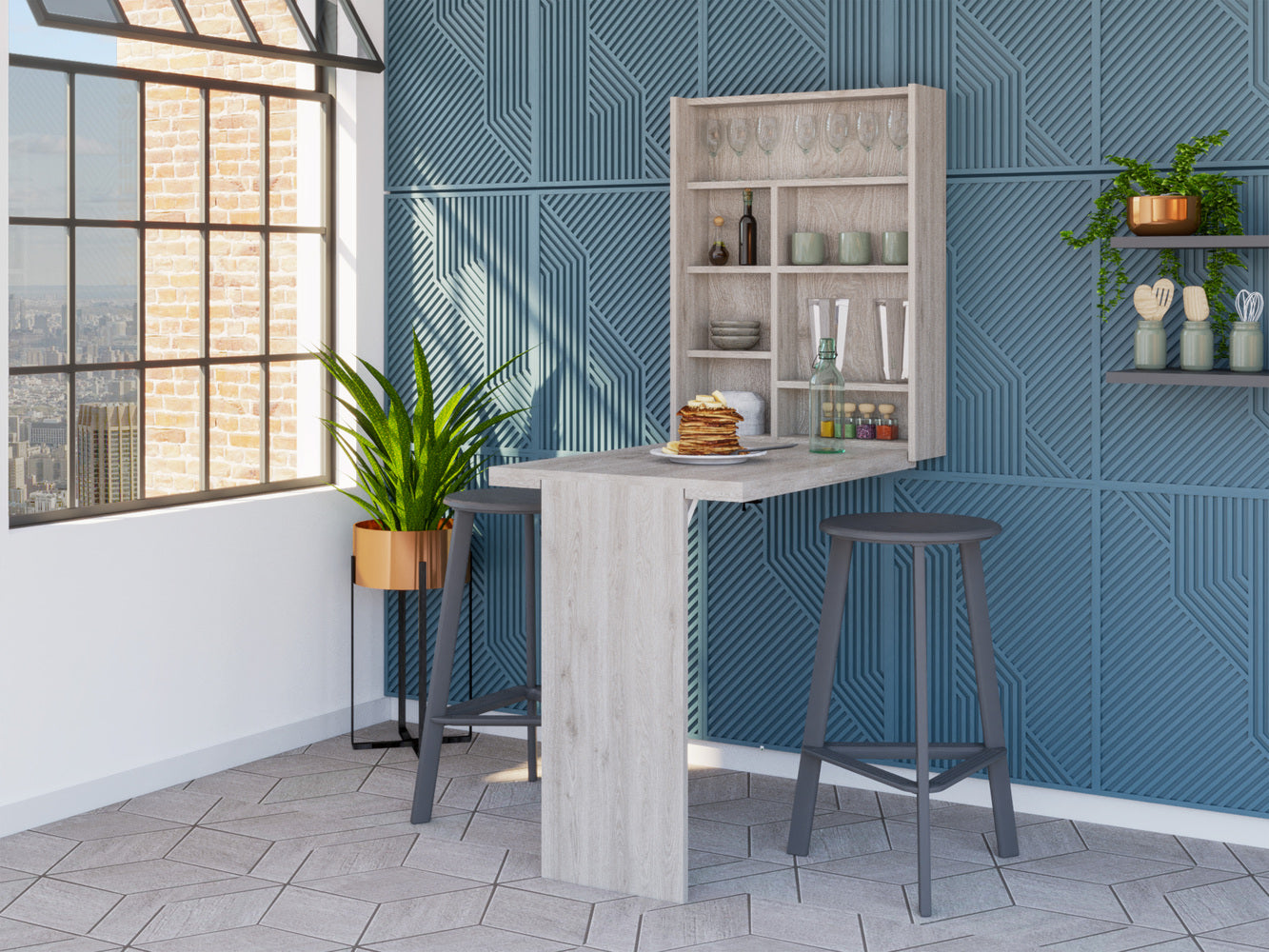 Toscana Wall Foldable Table with Multiple Shelves