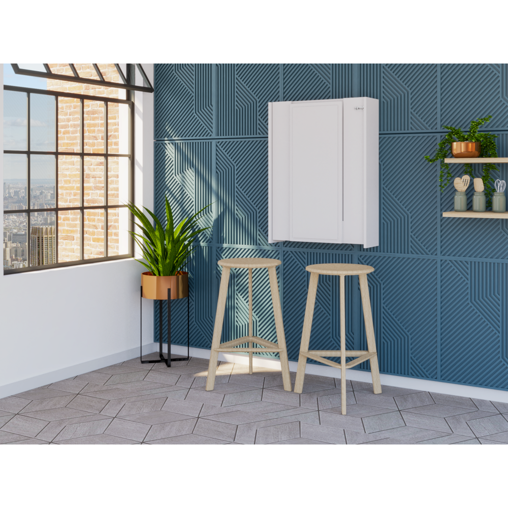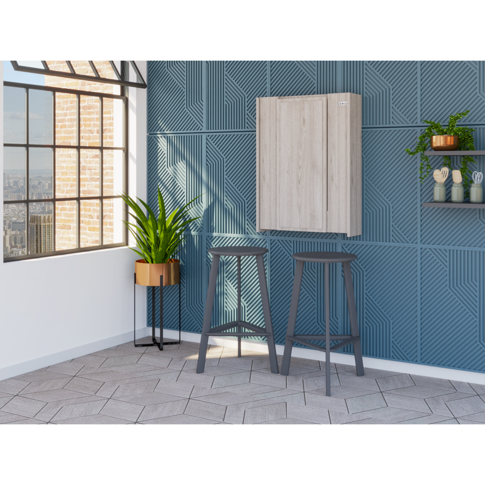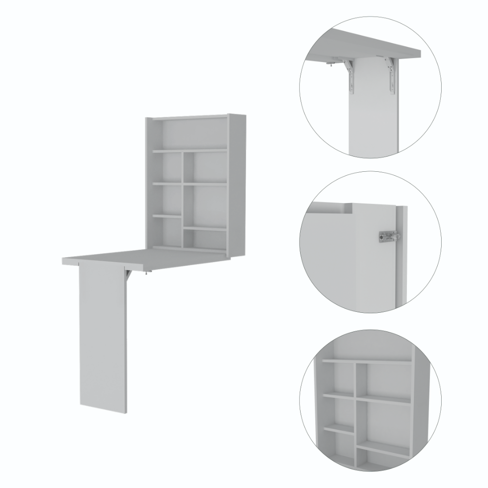 The Salento Wall Foldable Cabinet is the perfect solution for those who need a simple, elegant piece of furniture for their home office or study. Its unique foldable table (23,6'' W x 6,8'' D)and seven interior shelves adapt perfectly to any wall, making it ideal for small spaces. Made from high-quality materials, it is stylish and durable, meaning it will stand the test of time. Whether you use it for work, study, or simply as a place to keep your computer, the Salento Wall Foldable Cabinet will make your life easier. Designed with elegant light gray and white manufactured wood finish.