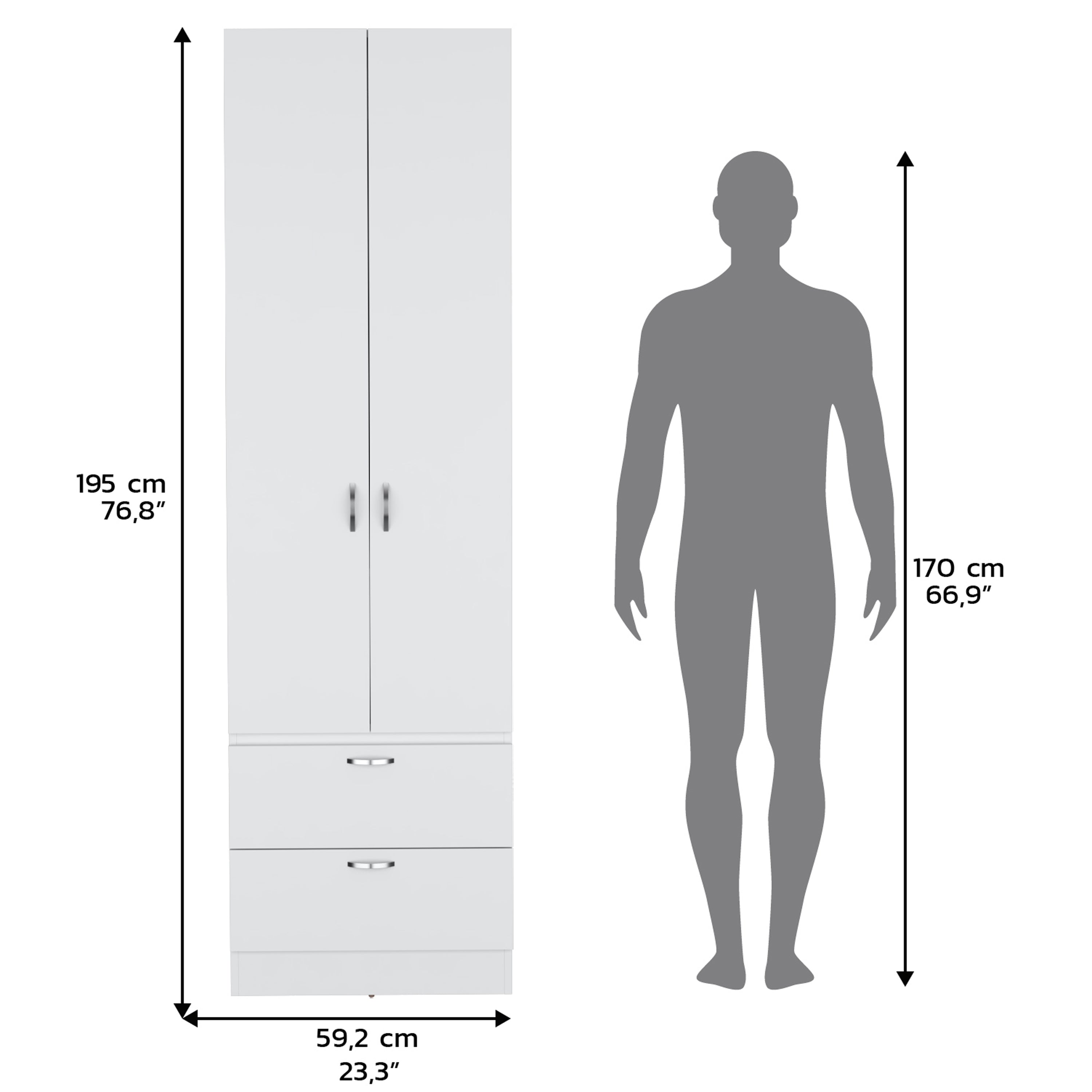 Vico Armoire Wardrove 76" H, Hanging Rod, 2 Drawers, 1 Shelf