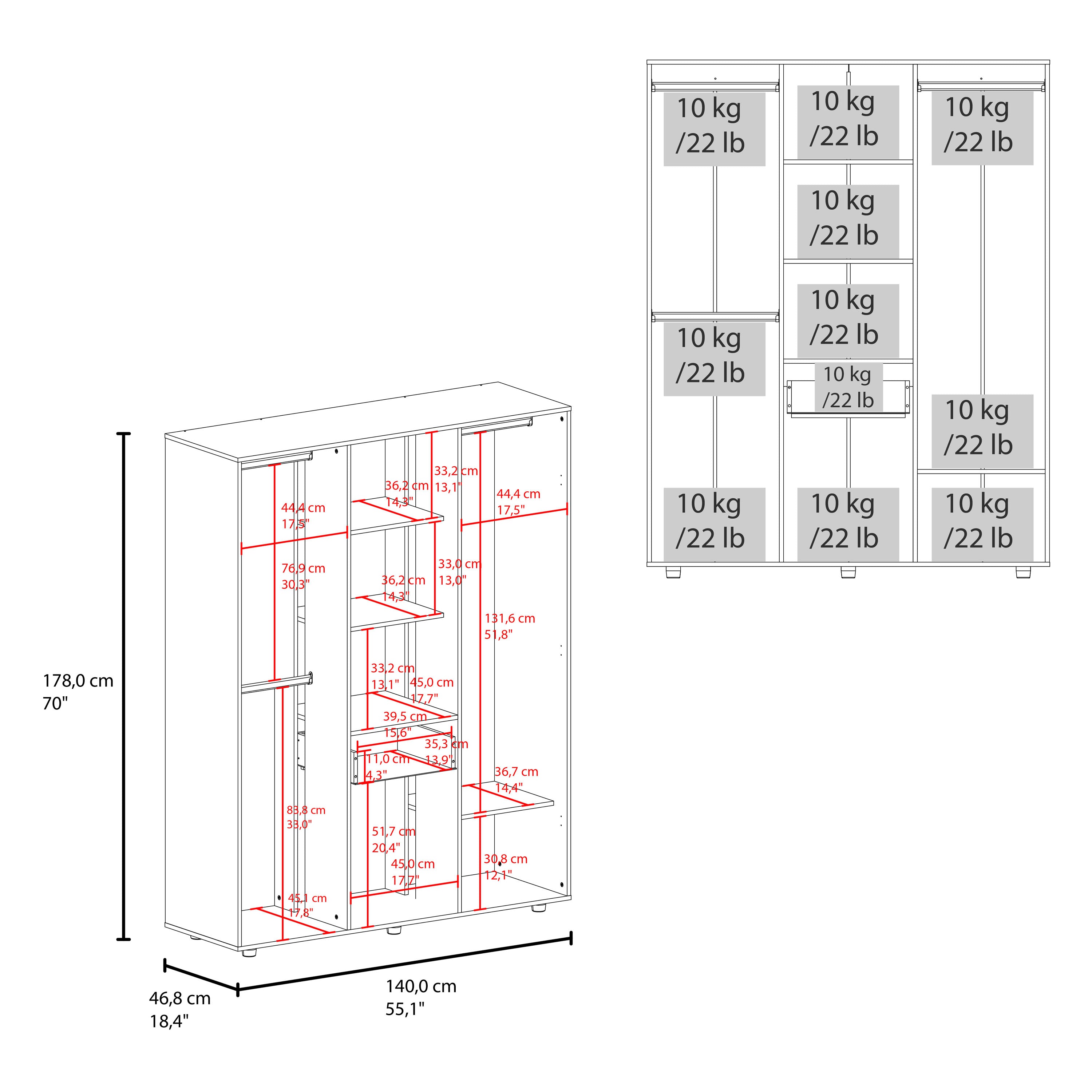 Volant Armoire, 2 Doors, 5 Shelves, 1 Drawer