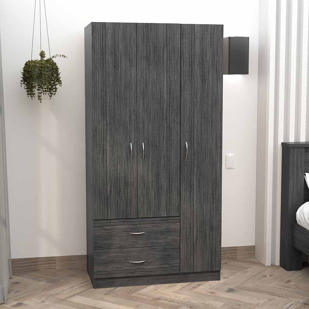 Bosko Three Doors Armoire, Two Drawers, Metal Rod