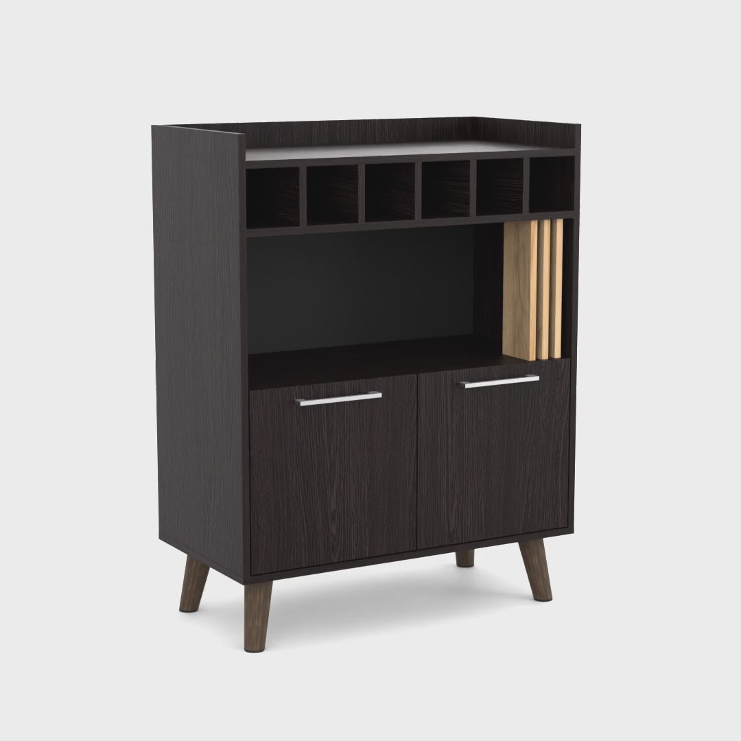 Upgrade your kitchen or dining area with the stylish and functional Ayr Bar Cabinet. Featuring two doors and one spacious shelf, this cabinet offers ample storage for your barware, bottles, and accessories while keeping them neatly organized. Its sleek and modern design makes it a versatile addition to any home setup.