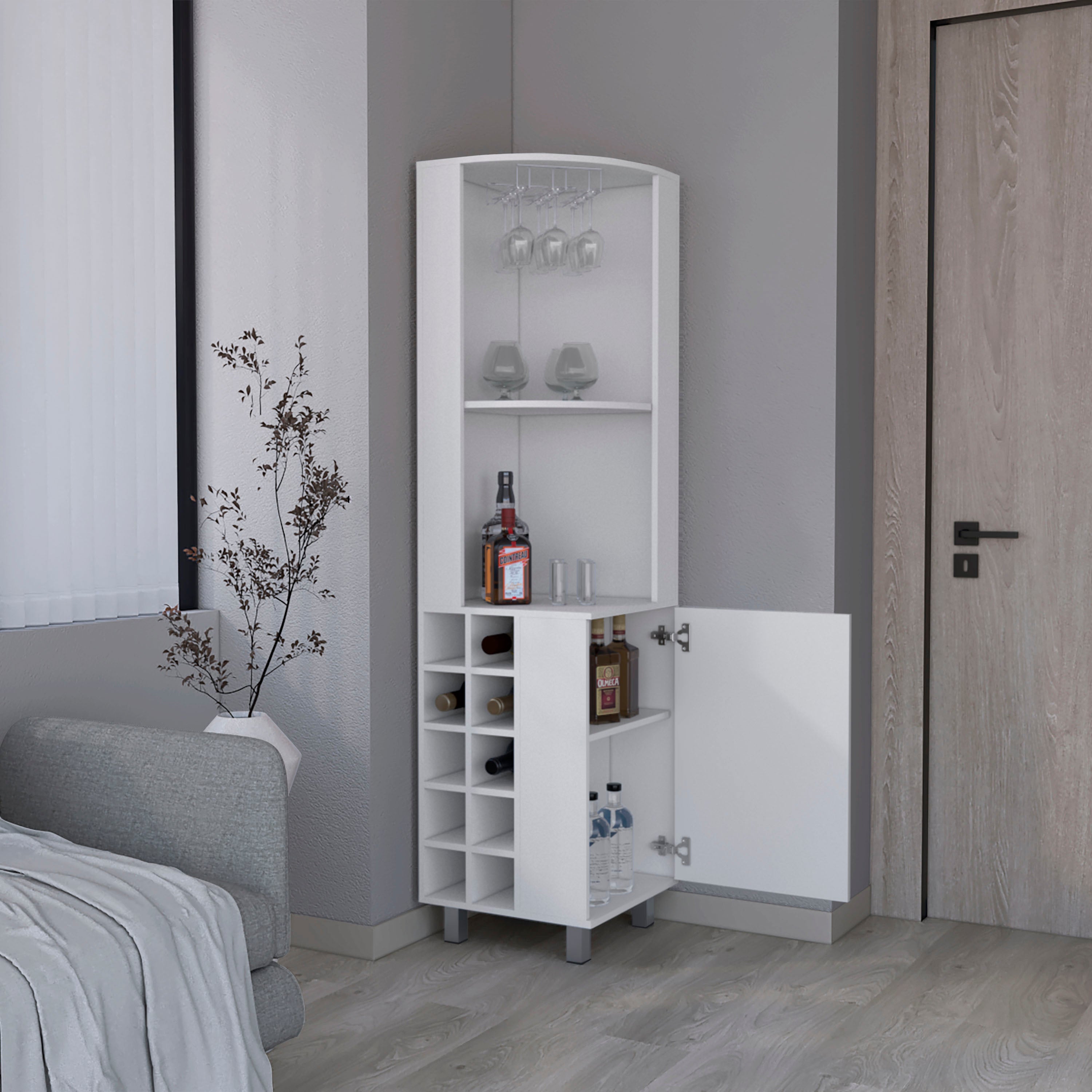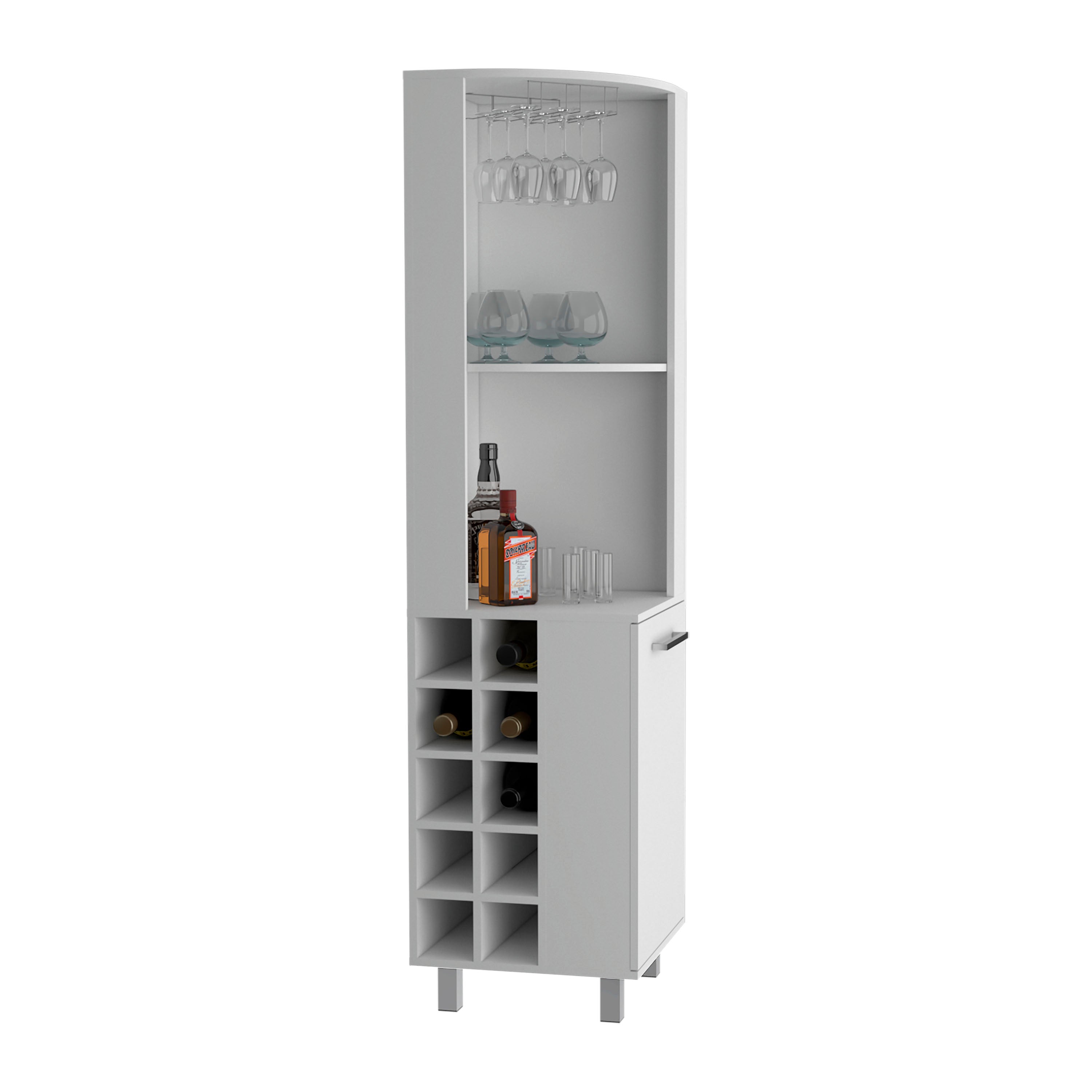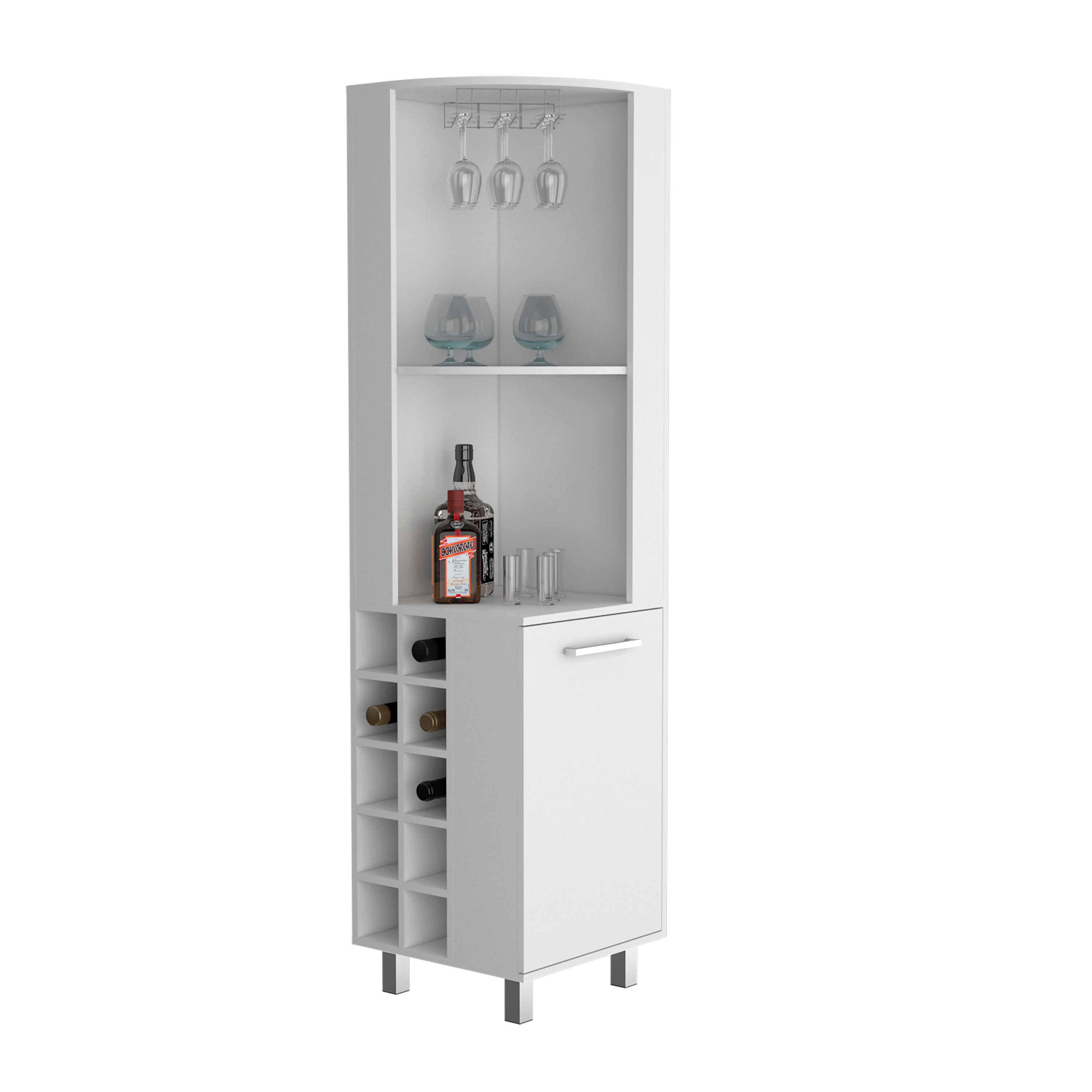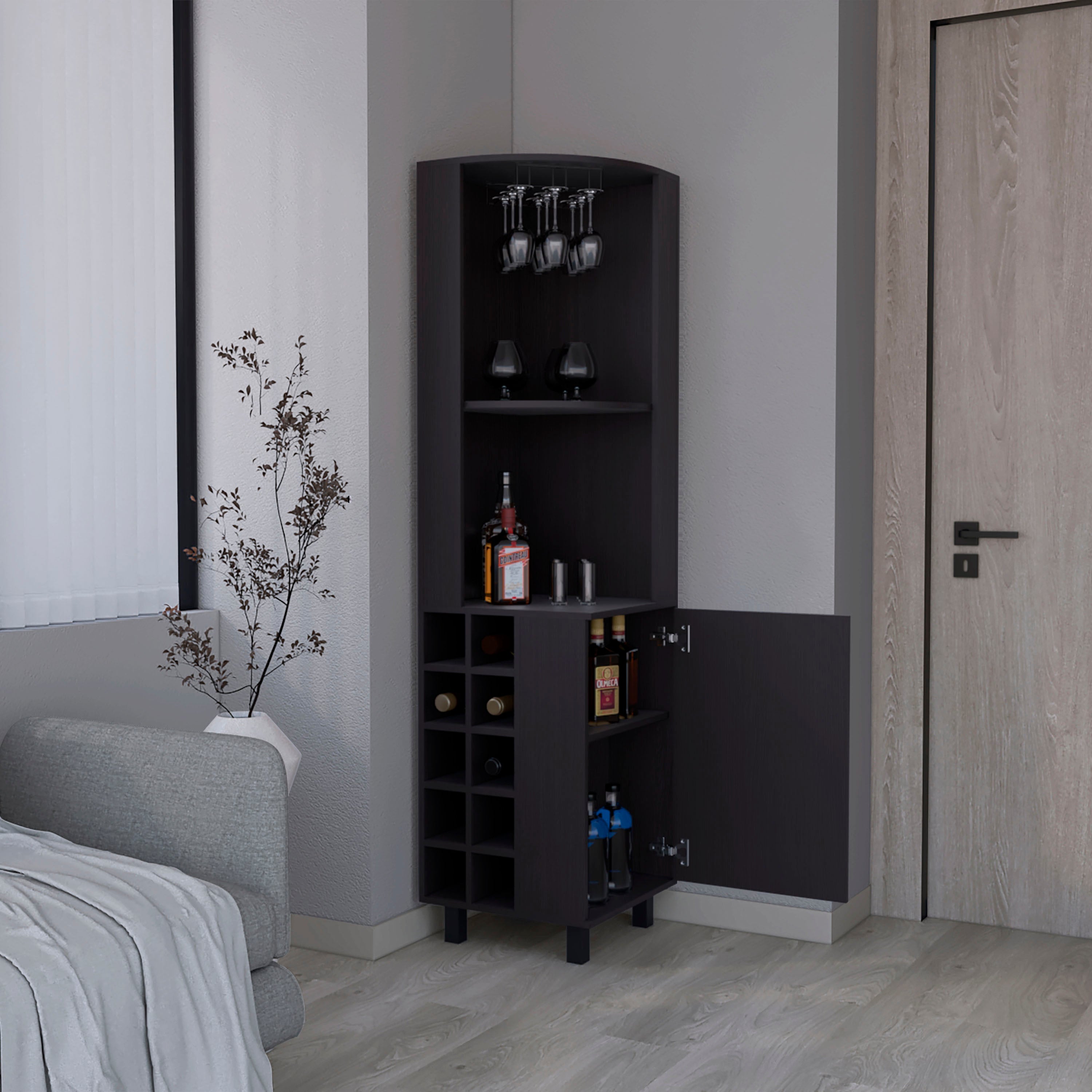 Morocco Corner Bar Single Door Cabinet Two Shelves, Ten Built-in Wine Rack, Two Interior Shelves, Living Room