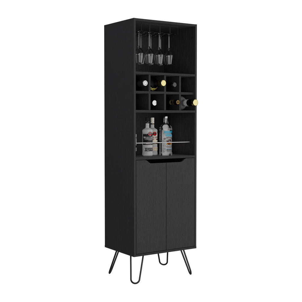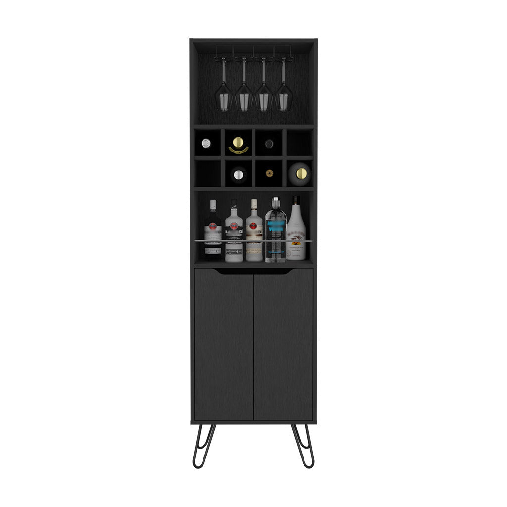 Zamna H Bar Double Door Cabinet, Eight Built-in Wine Rack, Four Legs, Four Shelves
