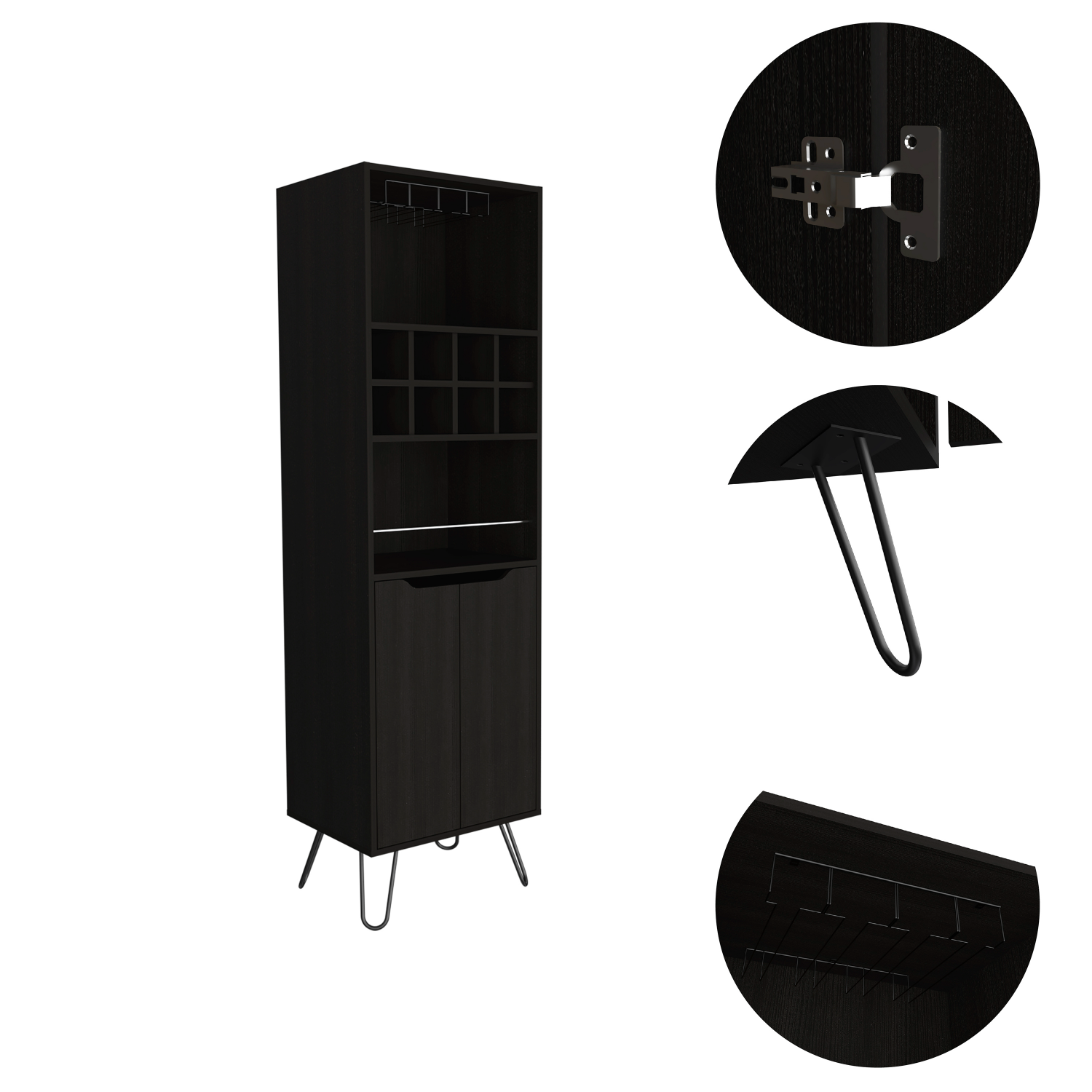 The Zamna H Bar Double Door Cabinet is the answer you were looking for to have a multifunctional, modern, easy-to-use, and great-looking piece to entertain your guests at your dinners, and the best thing is that it is a piece of furniture that adapts to any space easily. Its features give to your room a sophisticated look that blends with any home décor, glass shelf and 8-bottle shelf 2, one door shelf perfect for storing everything in the bar, easy assemble this product comes with step-by-step instructions so you won't have any complications with its assembly. You will only need a screwdriver and a hammer. Designed with elegant Black Wengue manufactured wood finish.