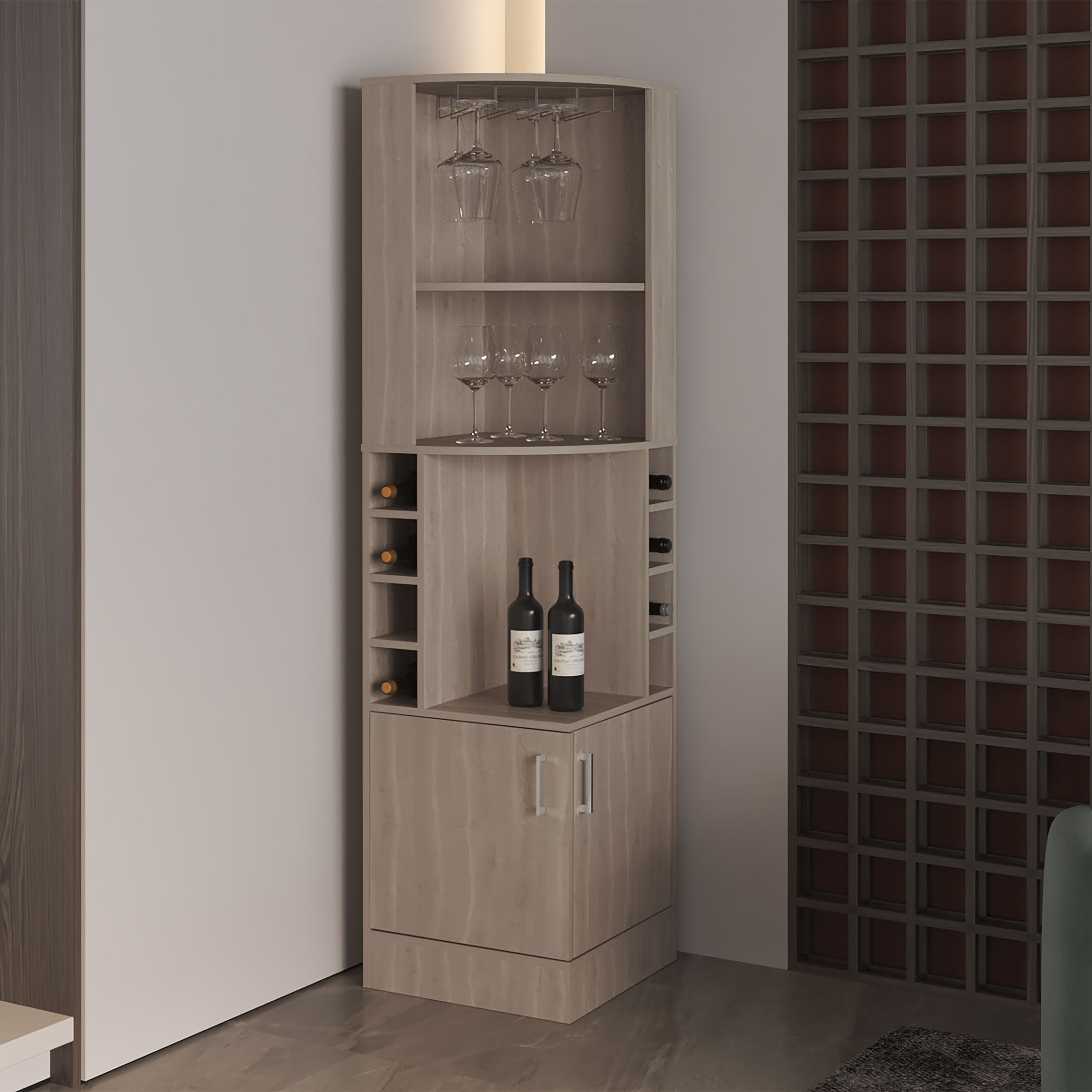 Nashville Corner Bar Cabinet Unit with Wine Glass Rack and Lower Cabinet