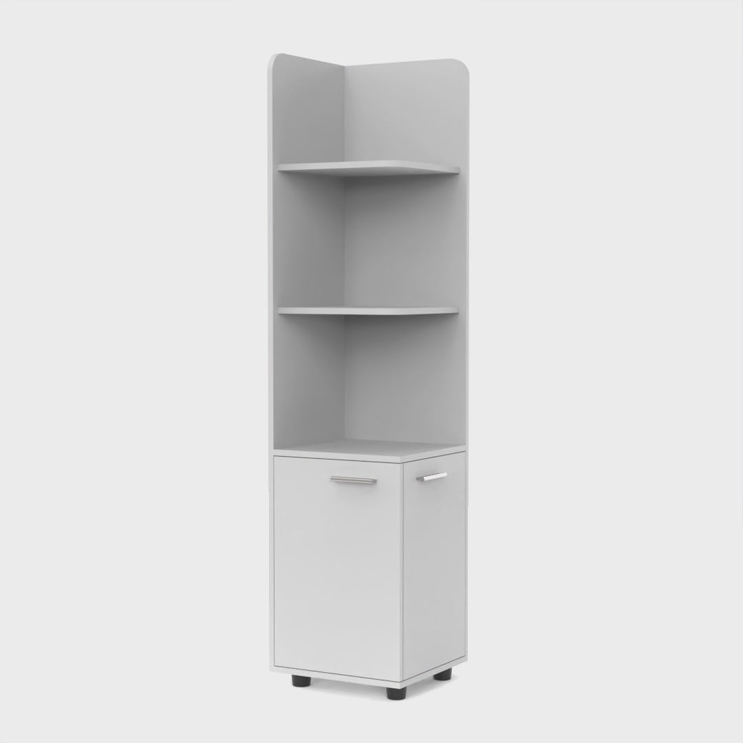 This Tall Vestal Corner Cabinet is a great way to maximize storage space in any room, especially bathrooms, and kitchens. The Cabinet is designed to fit neatly into any corner, and it has a 3-tier open shelf perfect for displaying or storing items. The base cabinet is ideal for keeping more oversized items safe and out of the way. The doors feature sturdy metal handles, making accessing whatever you have stored inside easy. Designed with an elegant white manufactured wood finish.