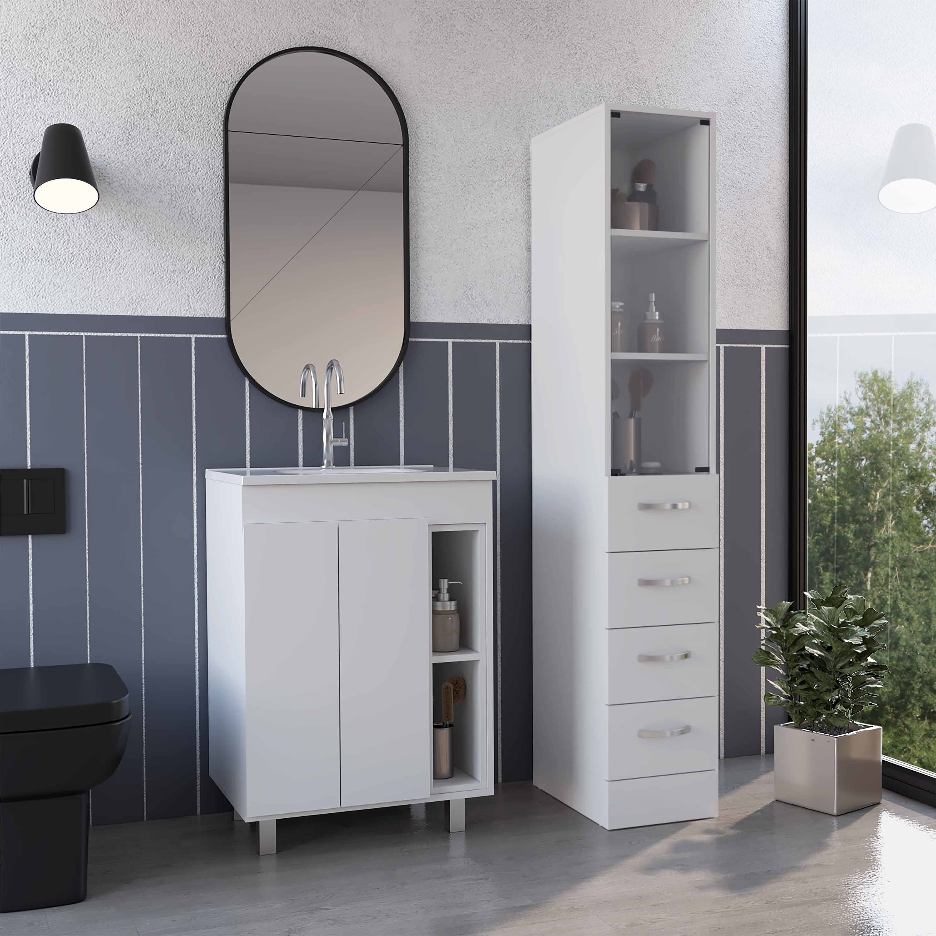 Montana Two Piece Bathroom Set, Bathroom Vanity + Linen Cabinet , White