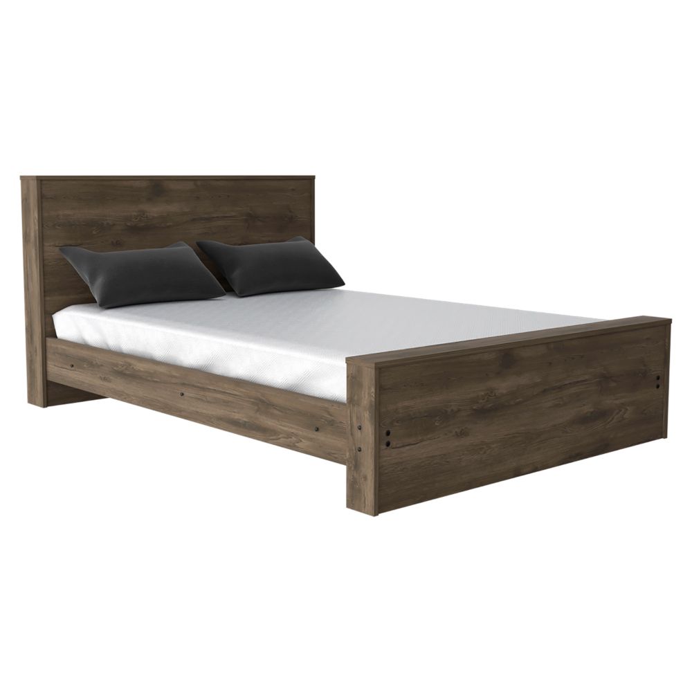 Barrie Full-Size Bed is part of our exclusive collection and is sure to make a statement in any bedroom, with complete and perfect dimensions fitting perfectly in any bedroom. It is crafted from resistant and manufactured wood and has a weight capacity of 440,9'' LB. The headboard is 38,58'' high, making it the perfect place to lean back and relax after a long day. So why not treat yourself to the ultimate sleeping experience with the Barrie Full-Size Bed? You deserve it! Designed with an elegant dark brown manufactured wood finish.