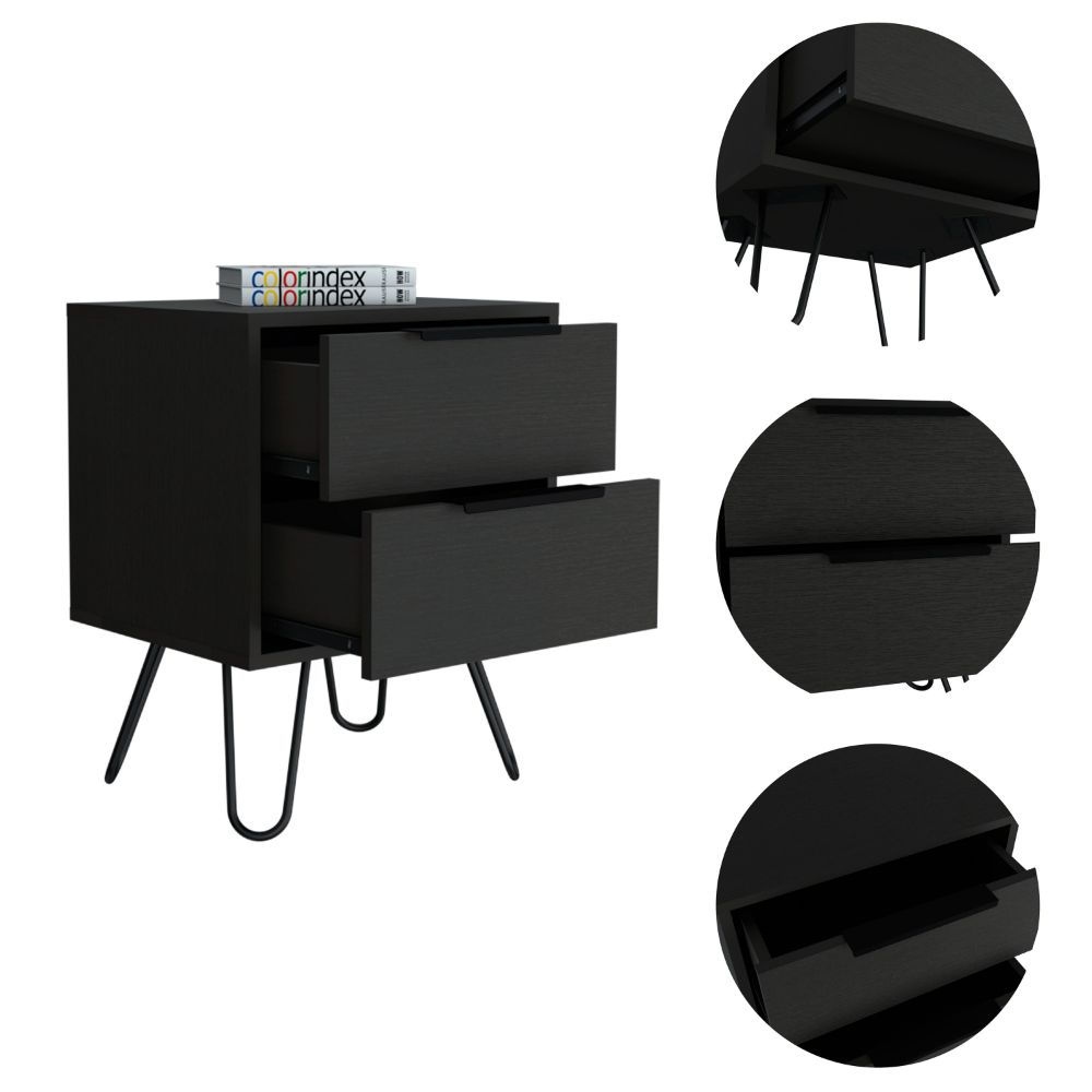 Begonia Nightstand, Hairpin Legs, Two Drawers