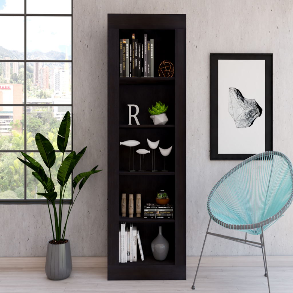 Poros Bookcase with Vertical Design and Five Storage Shelves