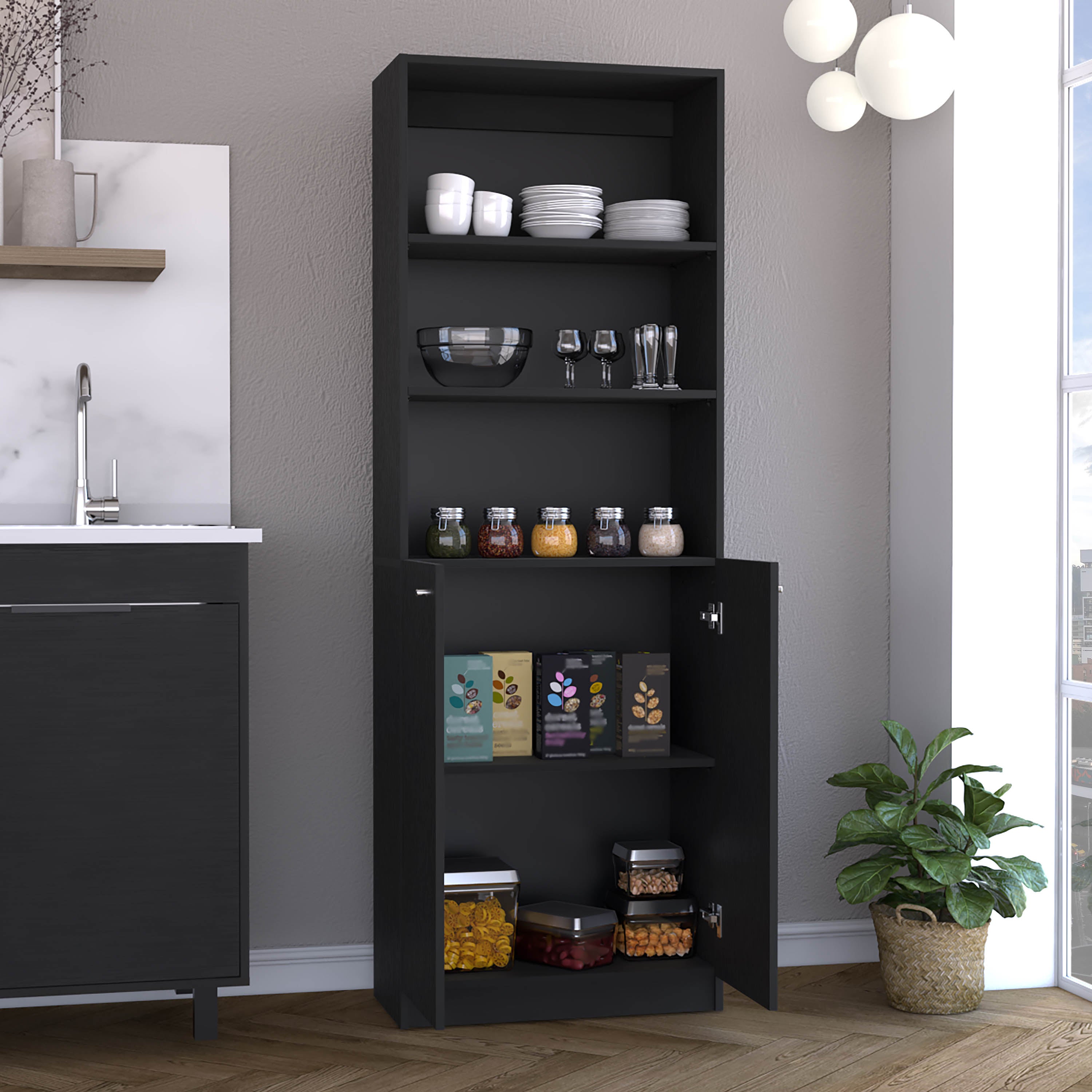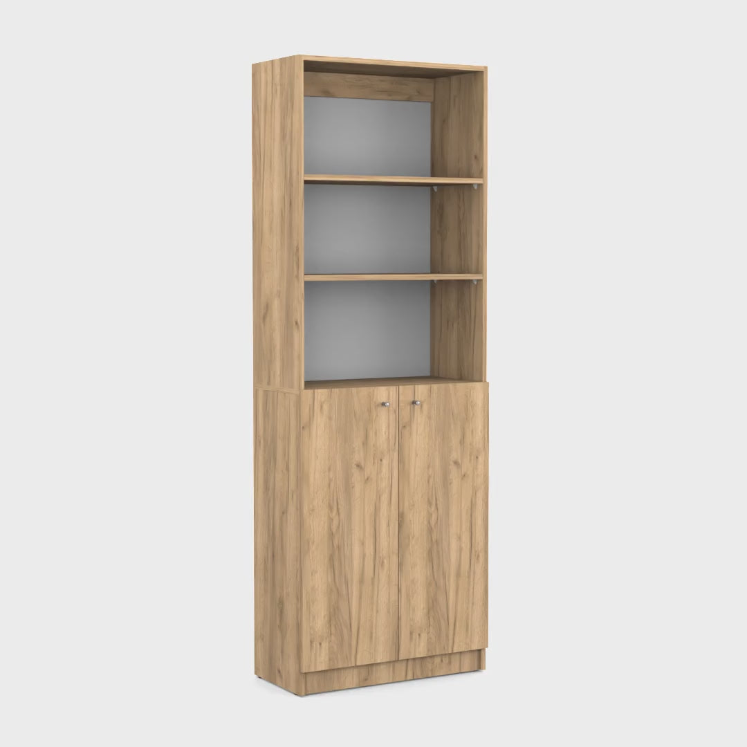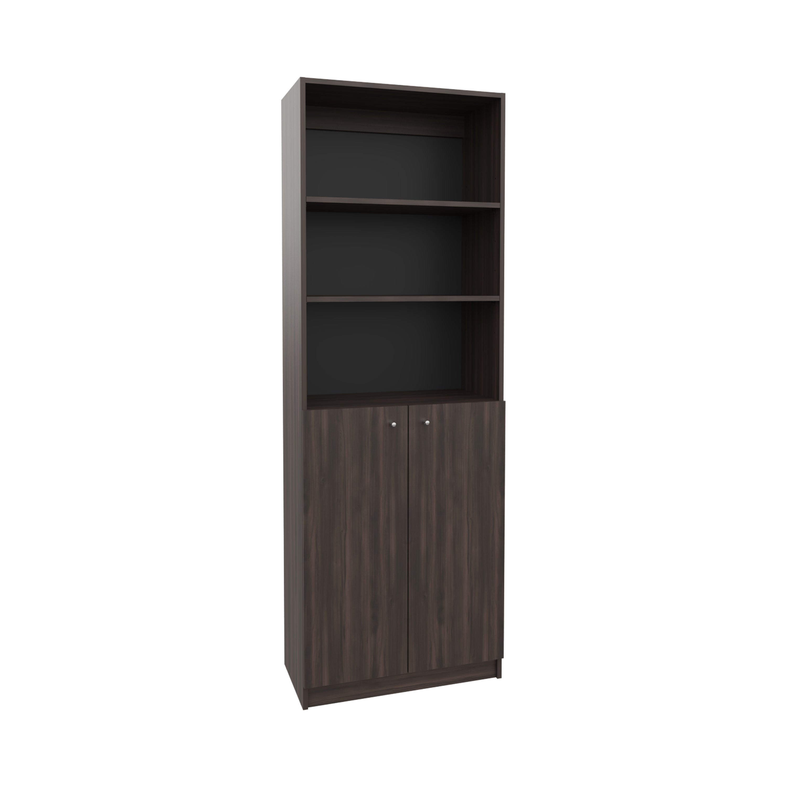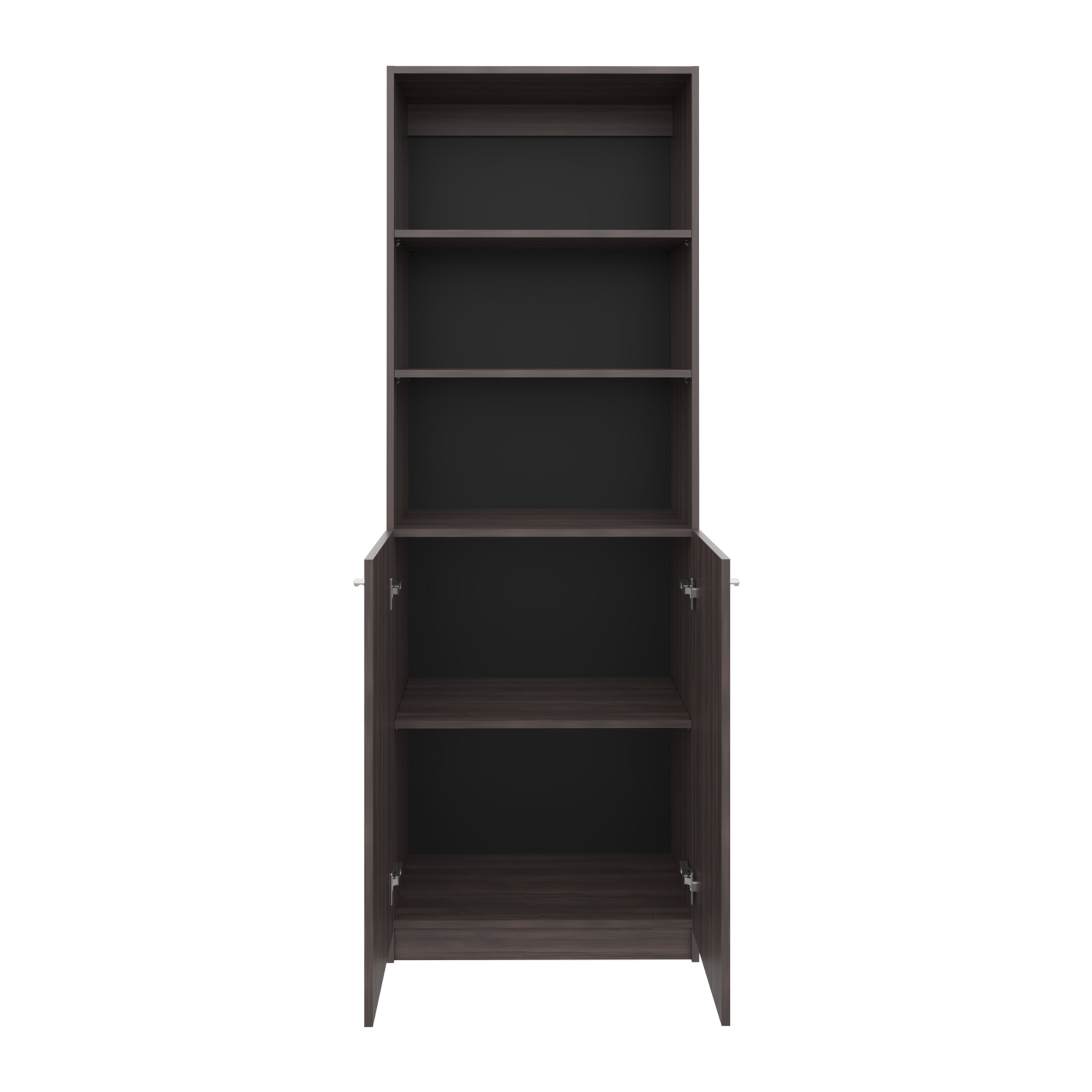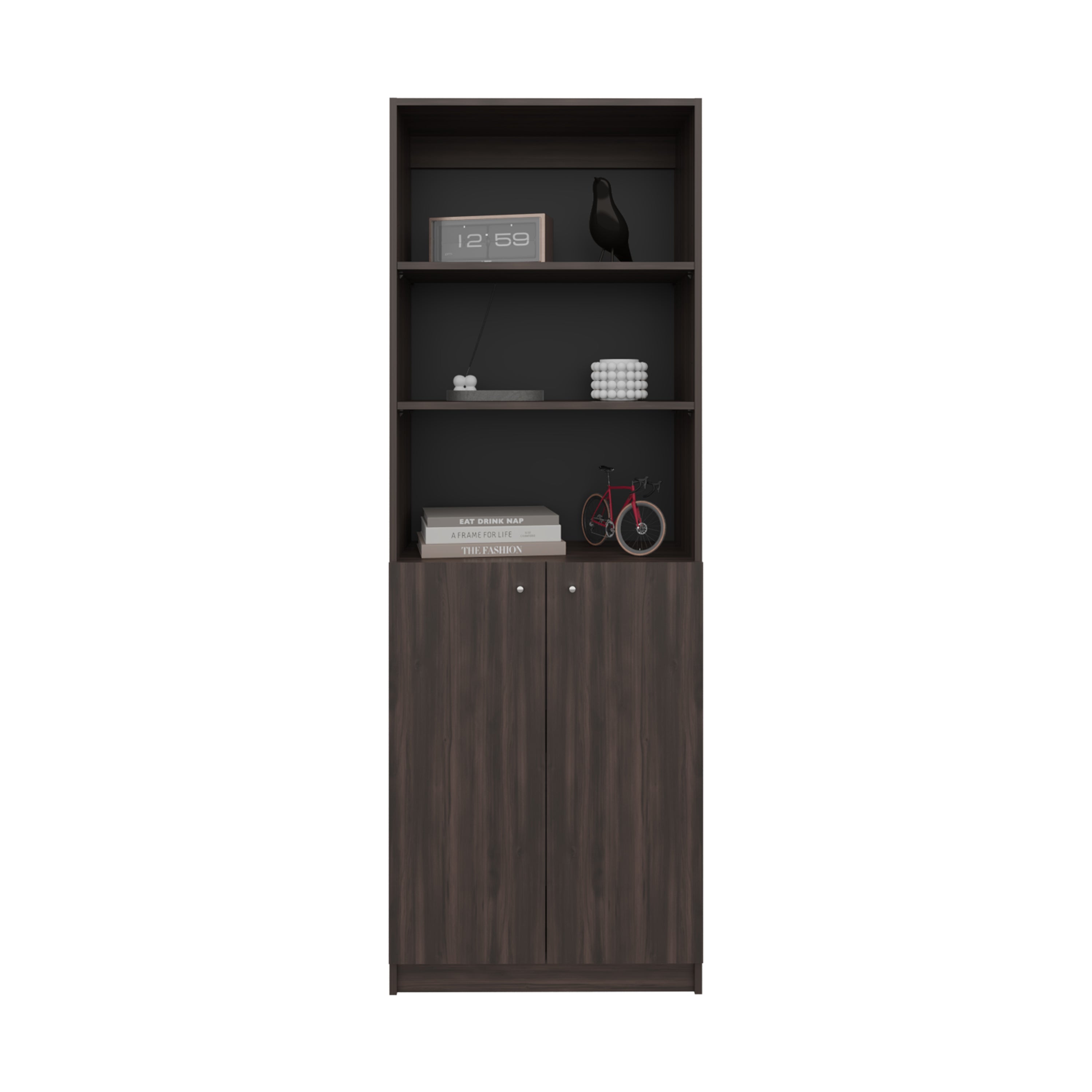 Utilize the Vinton 2-Door Bookcase to enhance your living area. It offers organized storage in a sleek design with two enclosed shelves (14.5"H x 15.1"H x 23.4"W x 11.6"D) and three open shelves (12"H x 10.4"H x 23.4"W x 11.6"D). This bookcase, which comes in black, white, or matt/gray finishes, perfectly combines contemporary design with practicality. Ideal for décor, books, and other things.