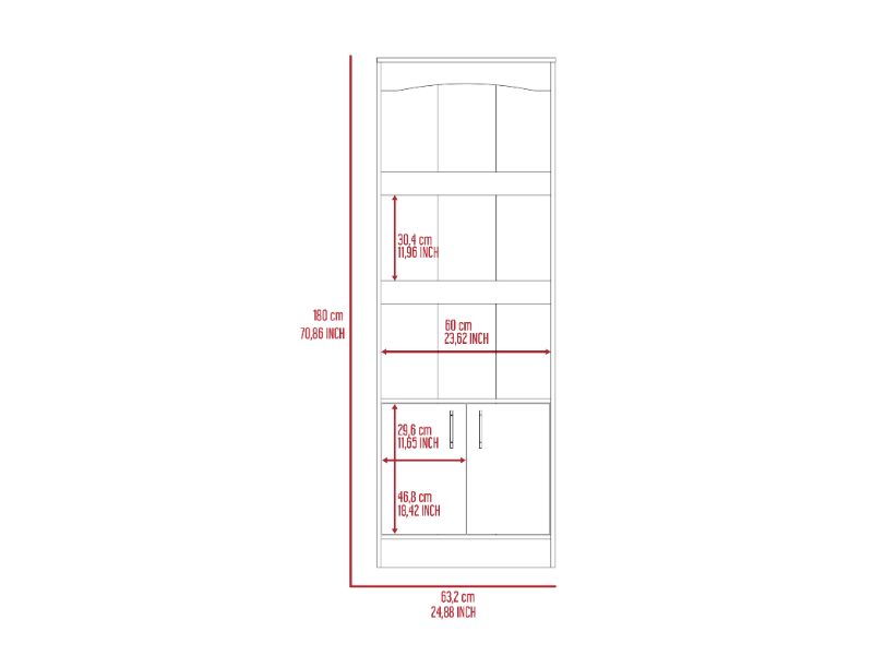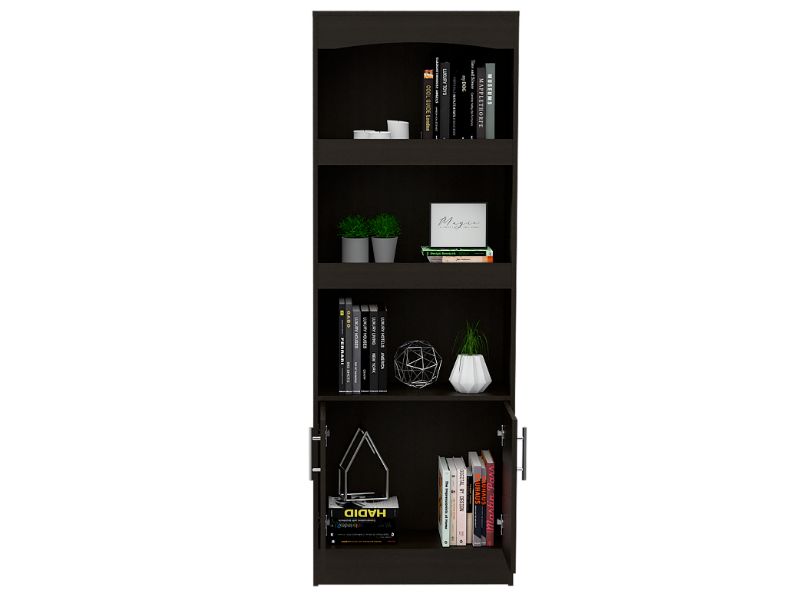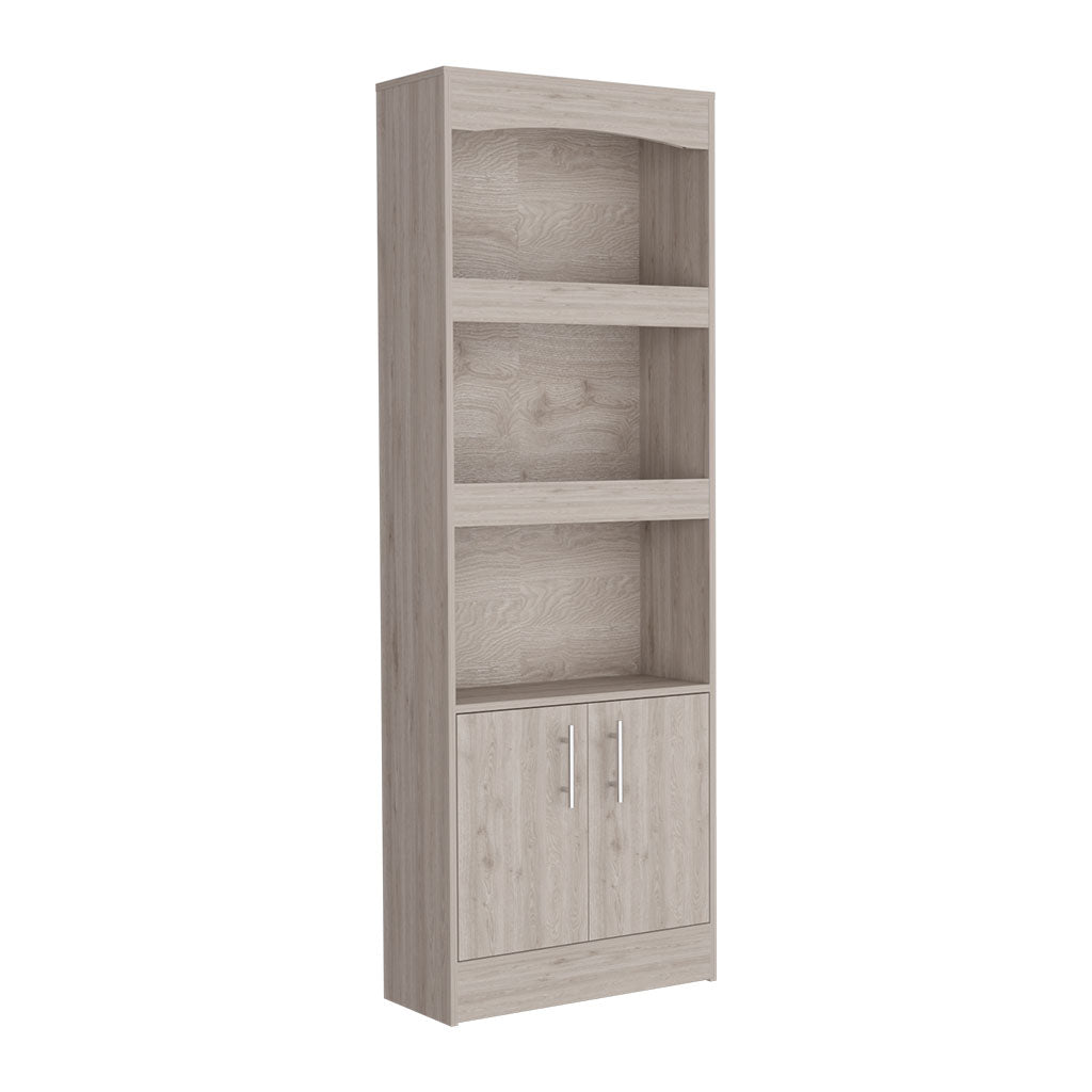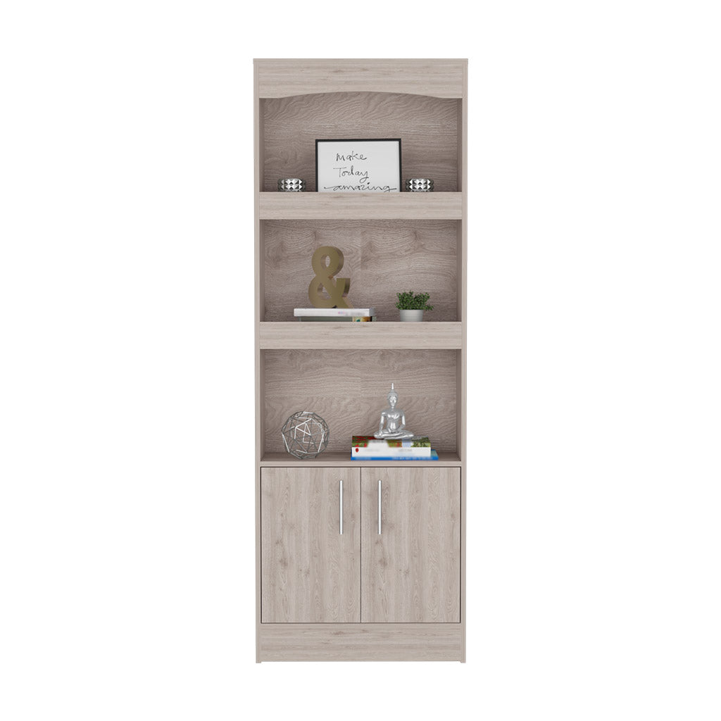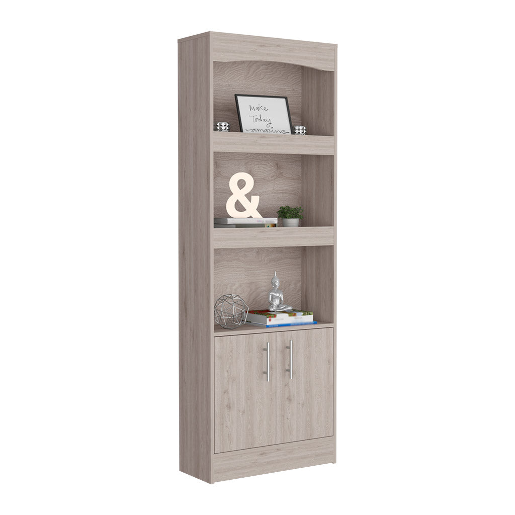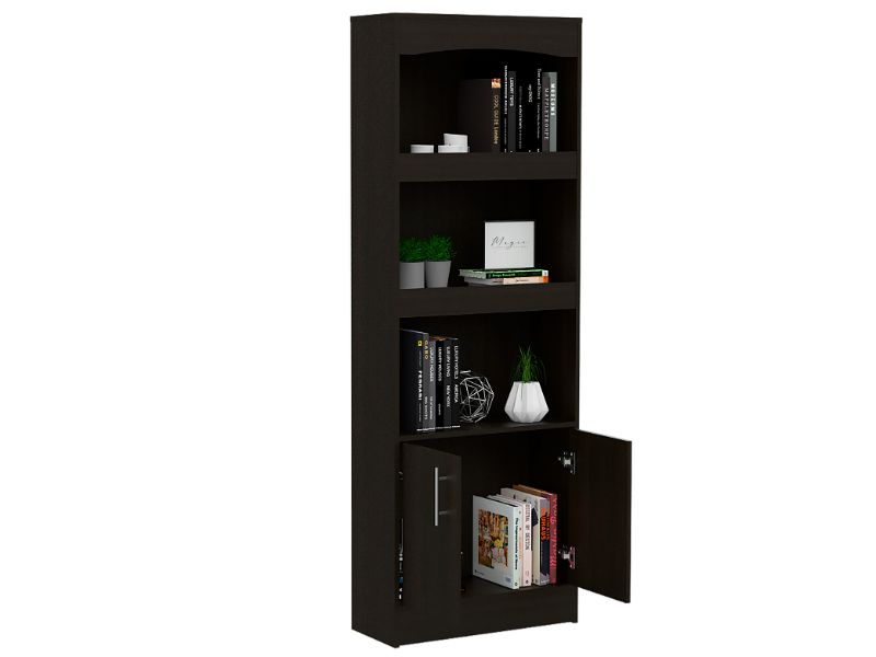 Dozza Bookcase, Three Shelves, Double Door Cabinet, Metal Hardware