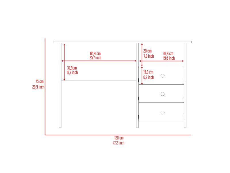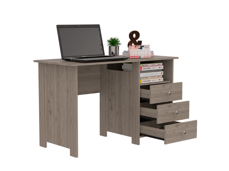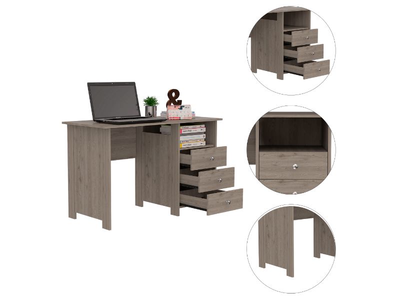 The Antara Computer Desk is the perfect desk for anyone who wants a sleek and stylish desk with plenty of storage. The three drawers (7,8''H X 15,6''W X 21,7'' D) provide ample storage space for all of your office supplies. In contrast, the open cubby space above is excellent for holding books or other materials, and the work surface (47,2'' W X 21,7' 'D) is perfect for your computer. Simple design will never go out of style. The Antara Computer Desk is the ideal size for any home or office. Designed with elegant light gray, gray oak, and black wengue manufactured wood finish.