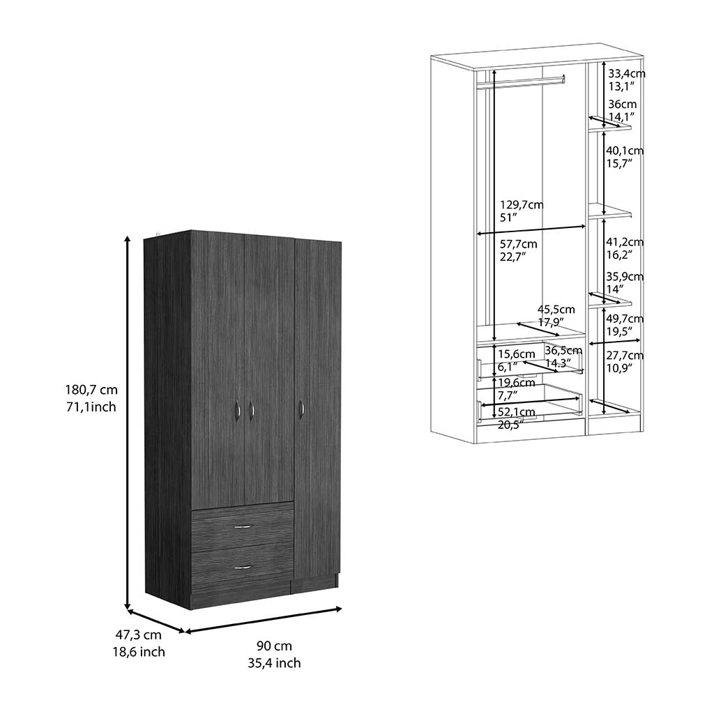 Bosko Three Doors Armoire, Two Drawers, Metal Rod