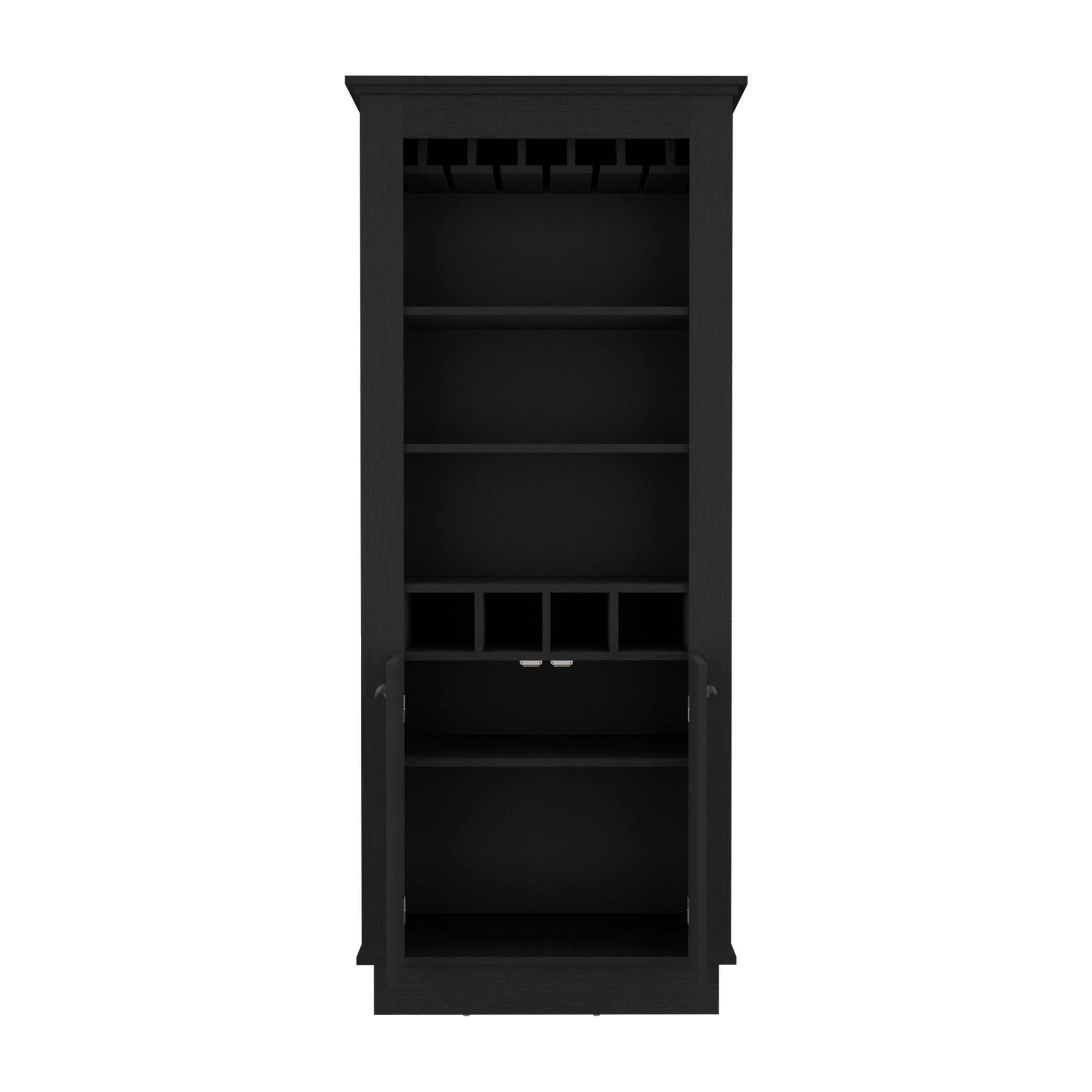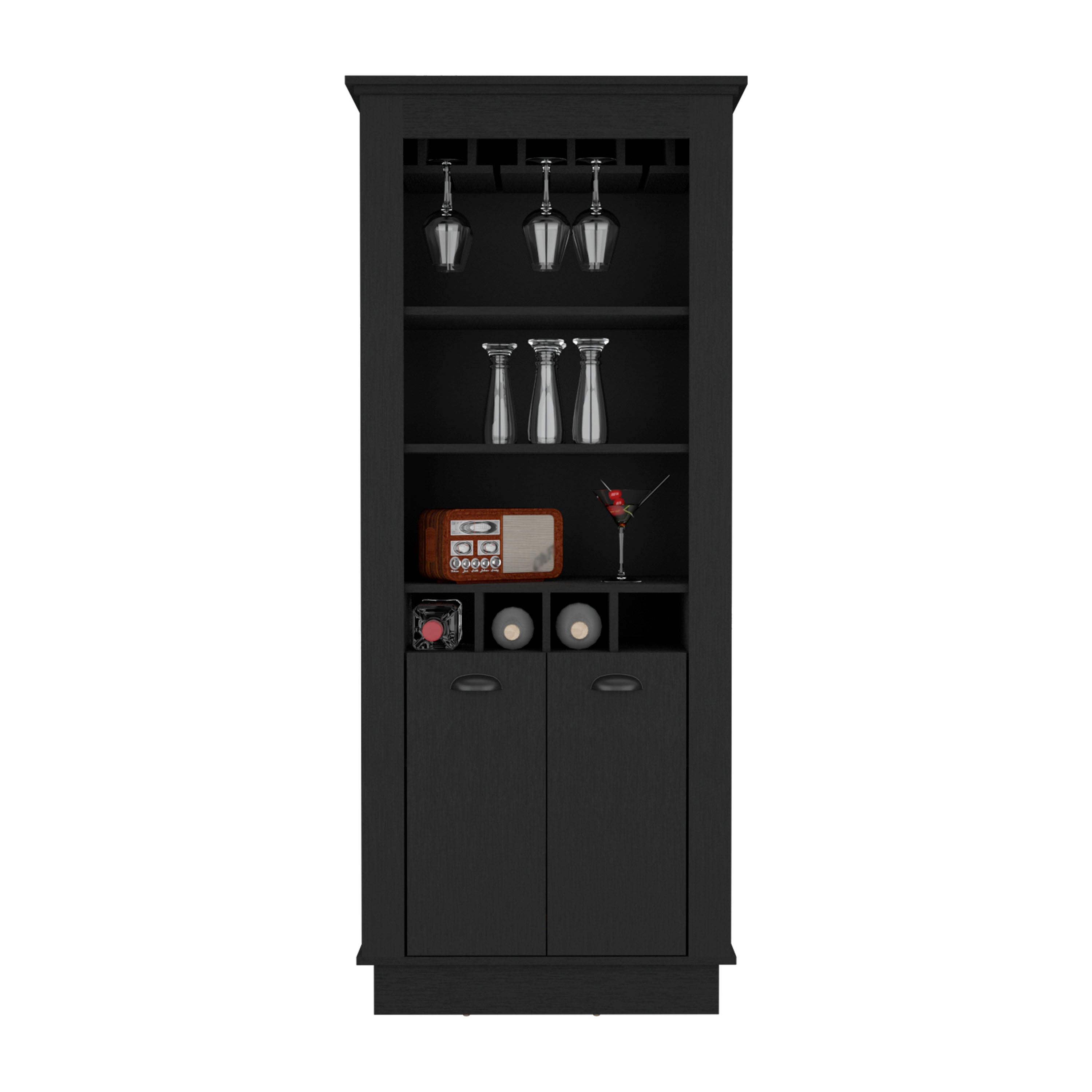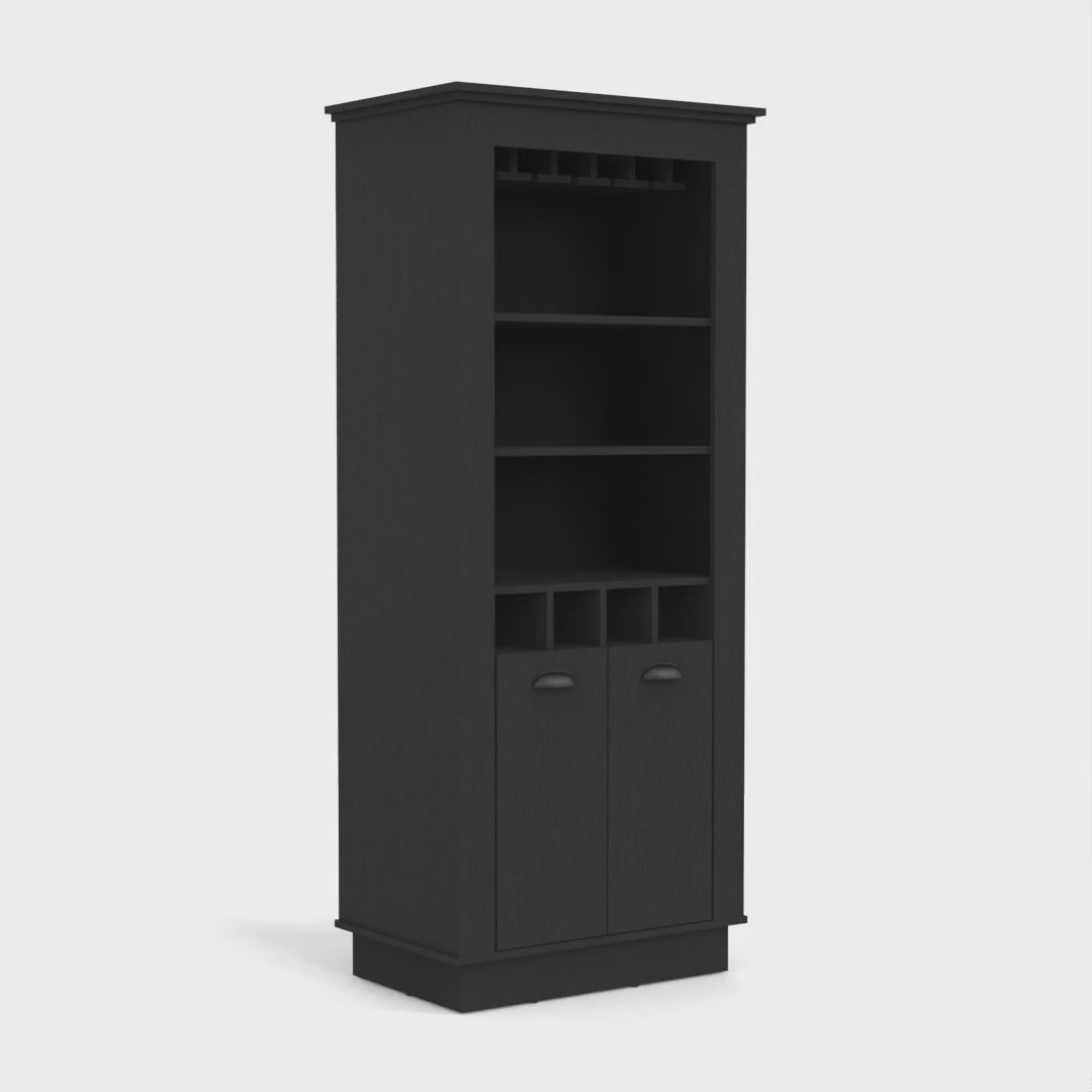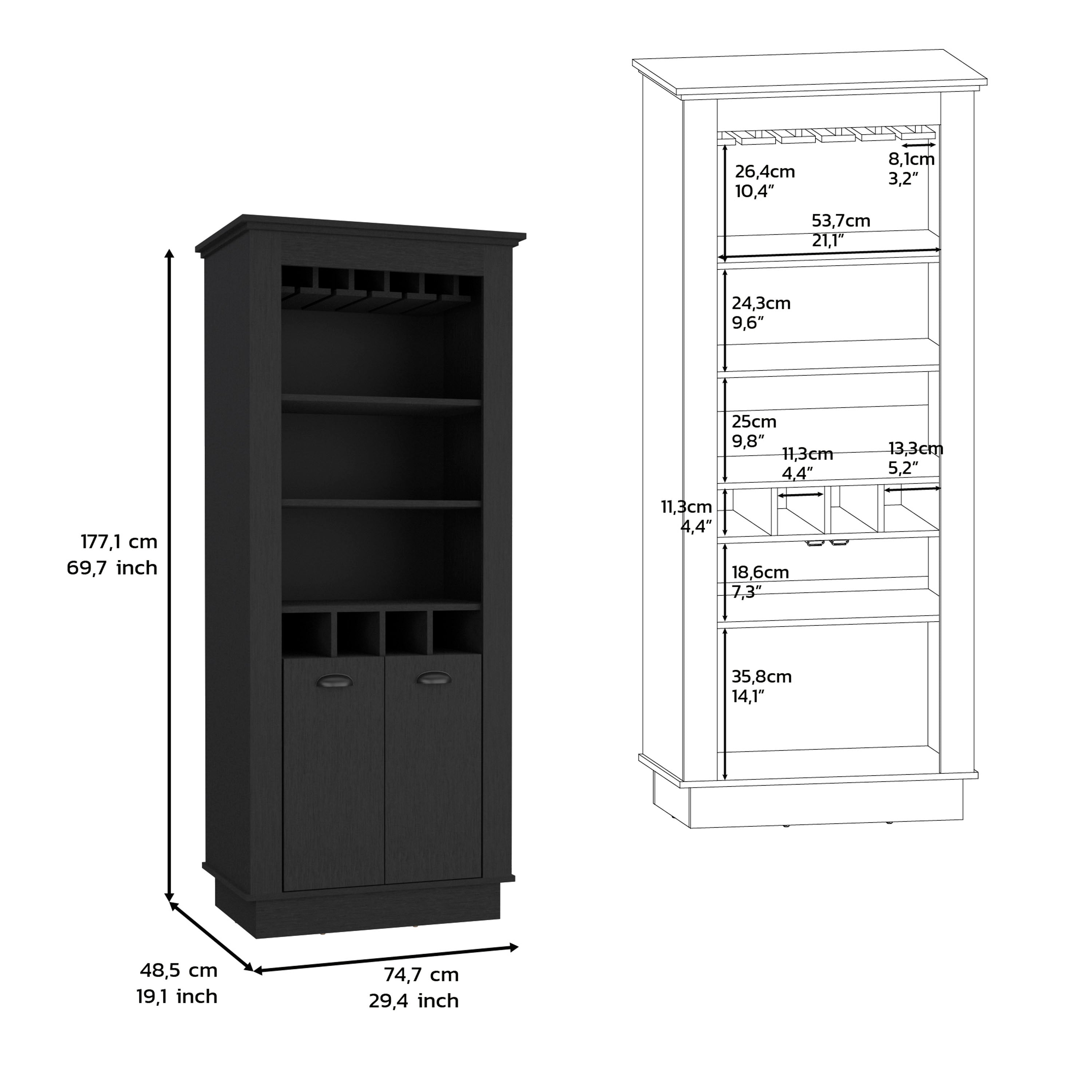 Meet the Gale Bar Cabinet, where elegance meets function. Boasting four distinct 4.4"W x 4.4"H bottle racks and an upper glass holder for ten, it's the quintessential home bar piece. With added storage shelves for your mixers and essentials, this cabinet shines in white, black, or macadamia finishes. Compact yet sophisticated, it's the perfect blend of design and utility.