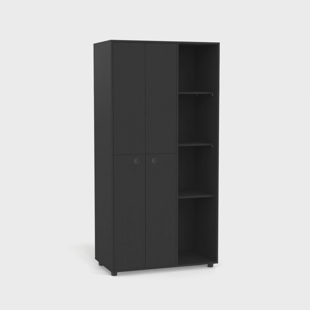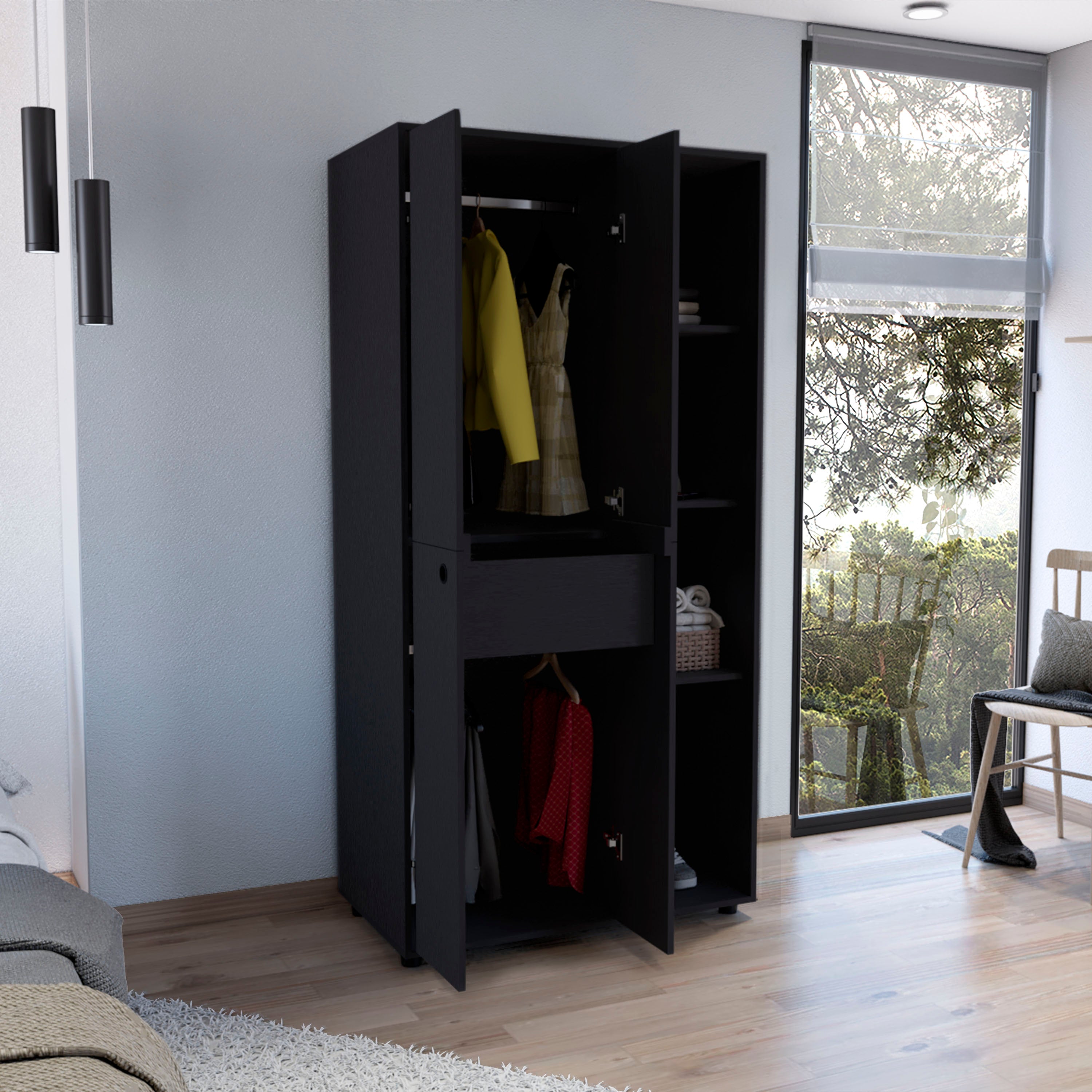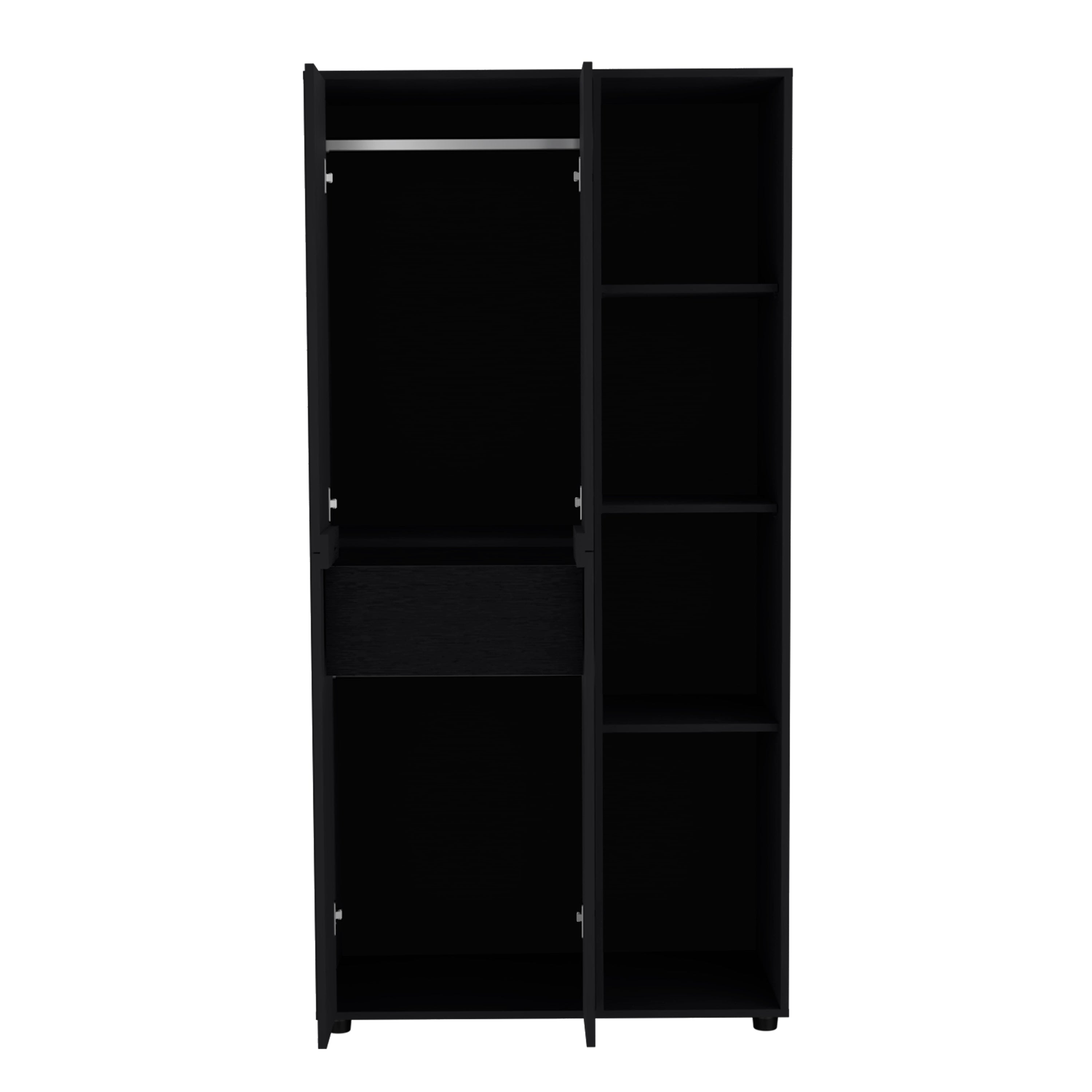 Minto Armoire with Two-door Storage with Metal Rods, Drawer, Three Open Shelves