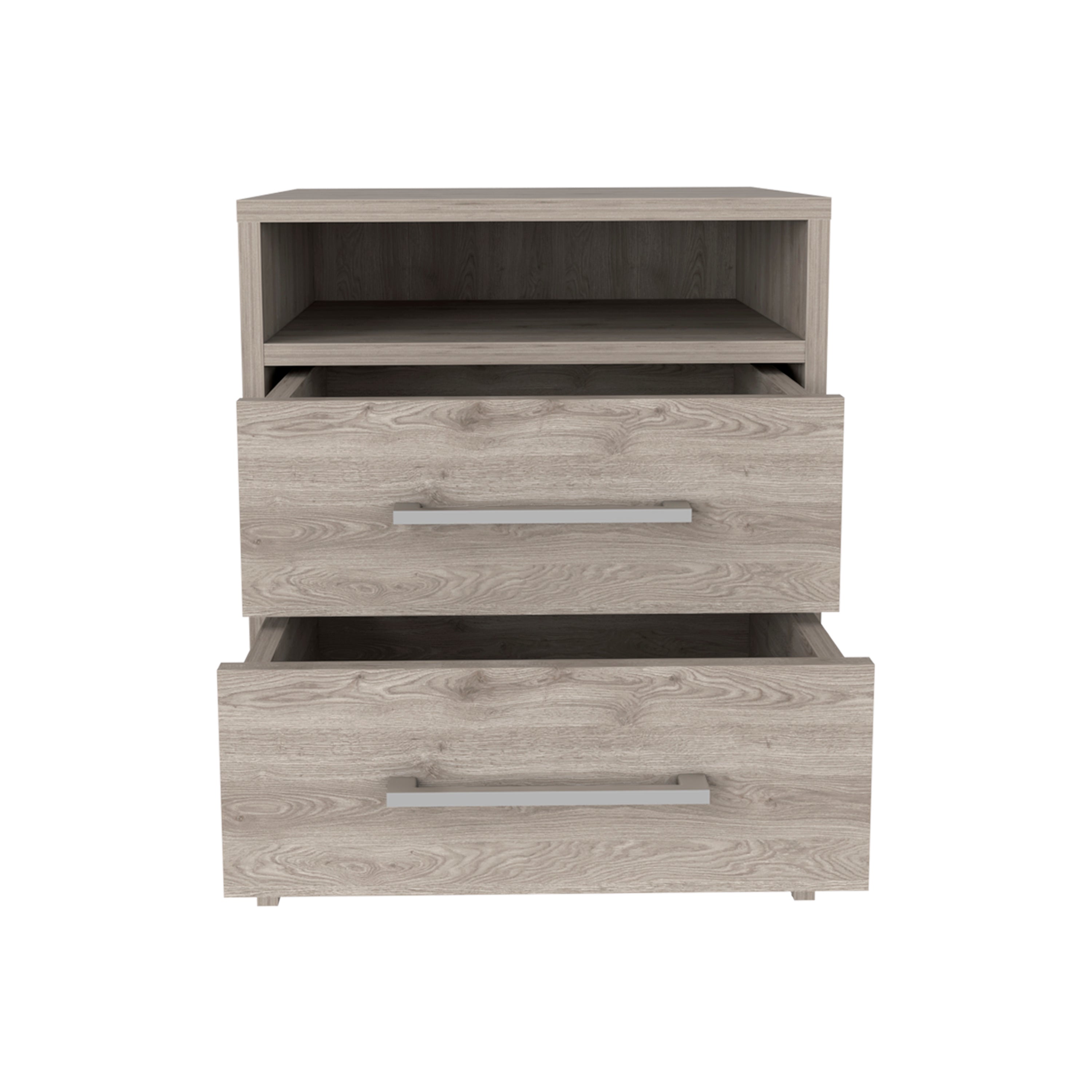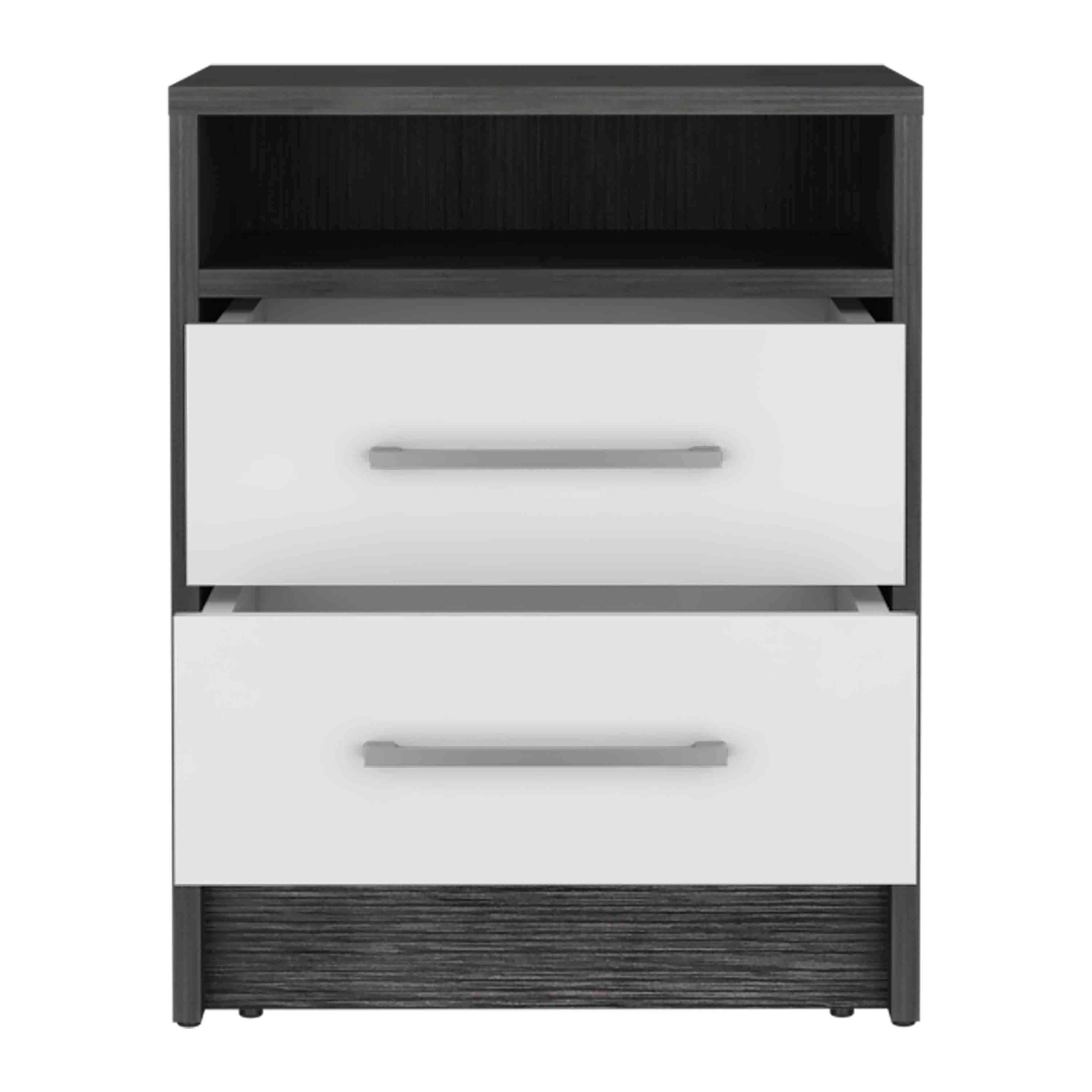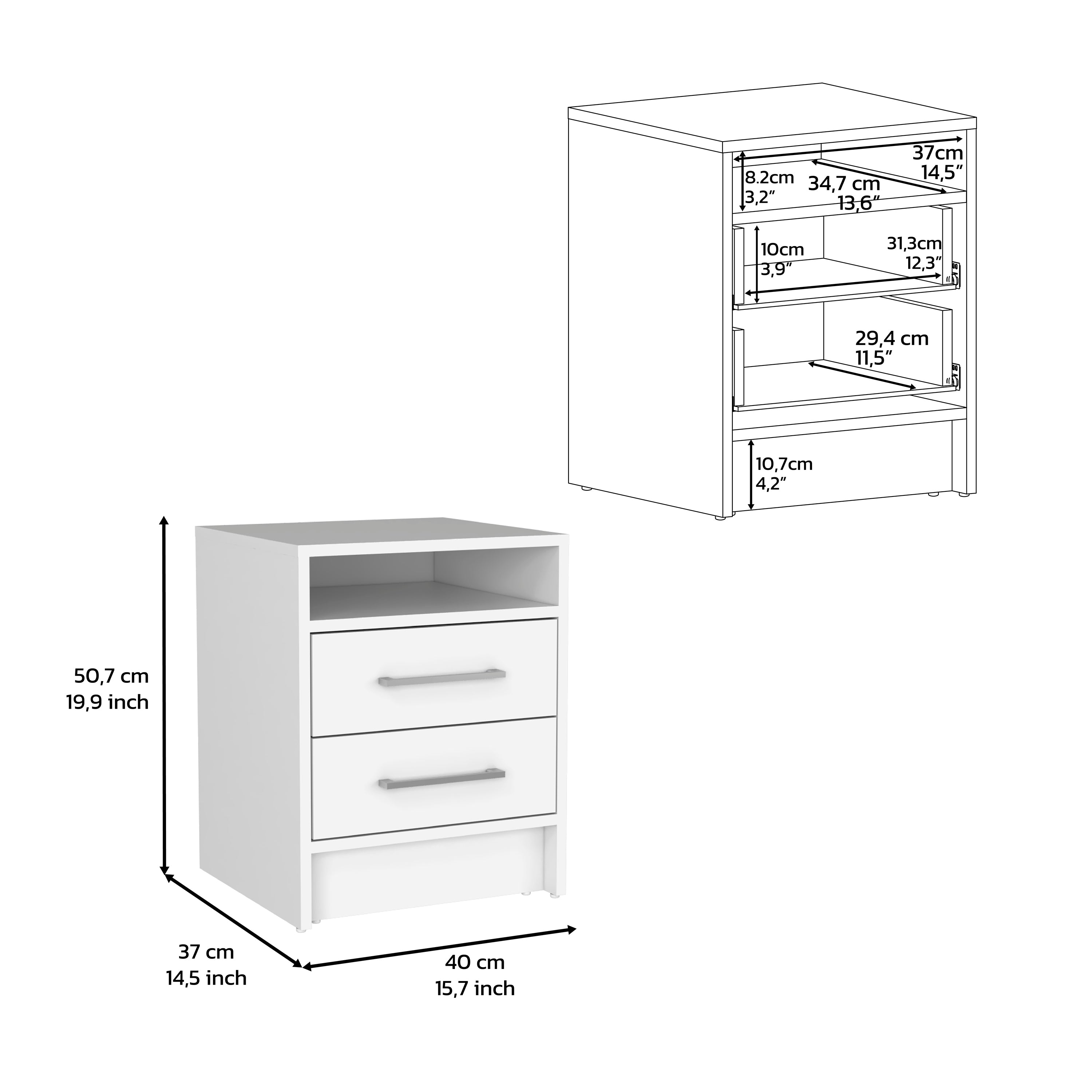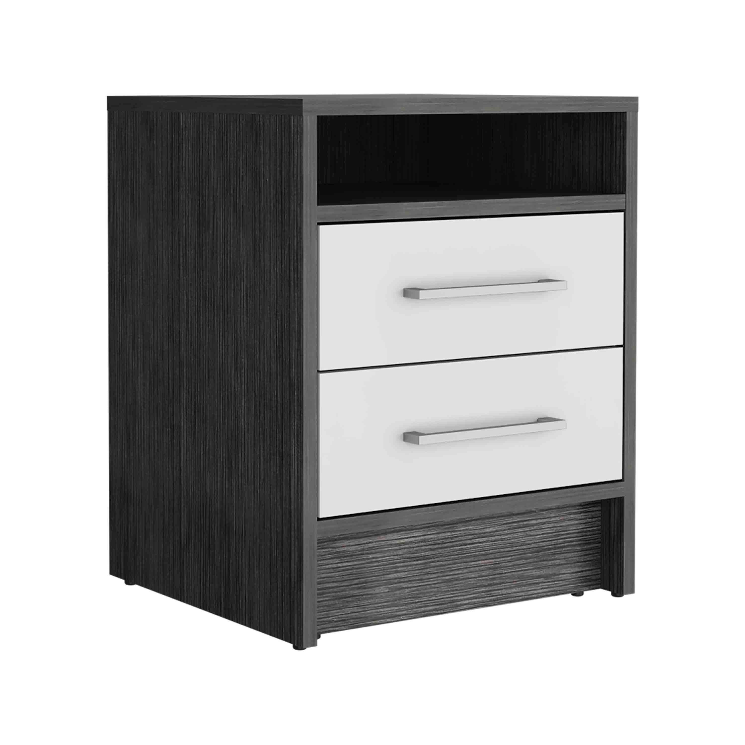 Leyva Nightstand is the perfect finishing touch for any contemporary bedroom or living room. Its sleek design and two handy drawers make it perfect for storing all your bedside essentials within easy reach. The open compartment is also ideal for keeping books or a mobile phone close to hand. The simple yet stylish metal handles complete the look of this versatile piece of furniture. Ample superior-top (15,75''W X 14,57' 'D). Designed with elegant dark brown and white-light oak manufactured wood finish.
