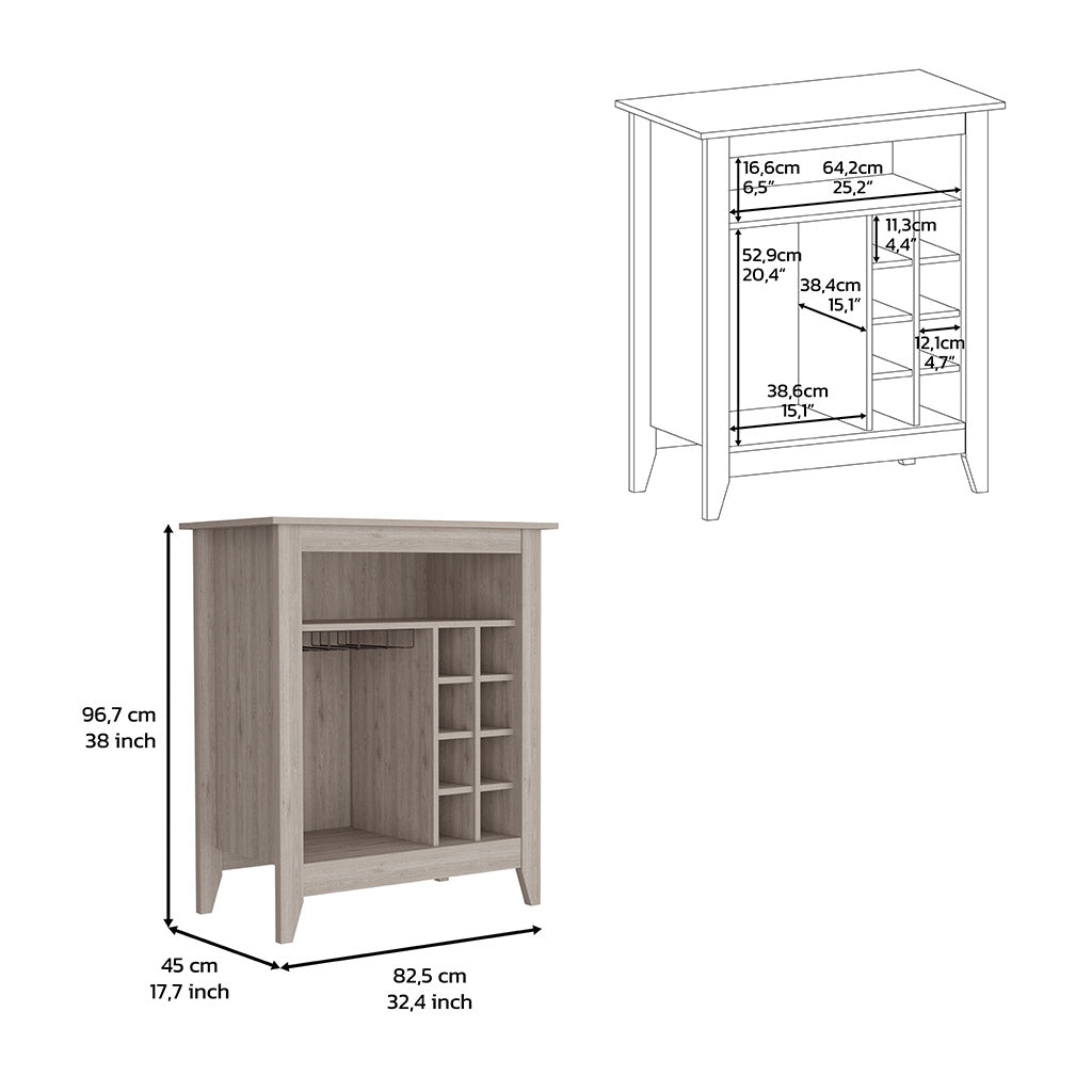 Mojito Bar Cabinet, if you're a wine connoisseur who needs plenty of storage for your bottles, the Mojito Bar Cabinet is perfect for you. With eight cubicles (4.8'H X 4.4'W) for your favorite wine and plenty of storage space for your glasses, this bar cabinet also has an interior shelf to give you extra room. Plus, the ideal superior top (37.12'') makes it easy to decorate. Designed with elegant black wengue, carbon espresso and light grey manufactured wood finish.