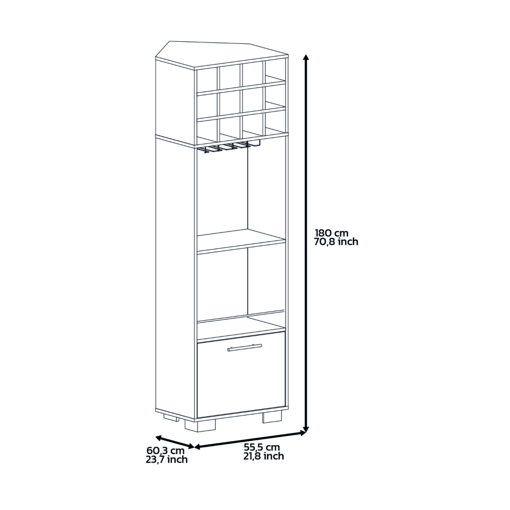 Norway Corner Bar Cabinet, Eight Built-in Wine Rack, Two Side Shelves
