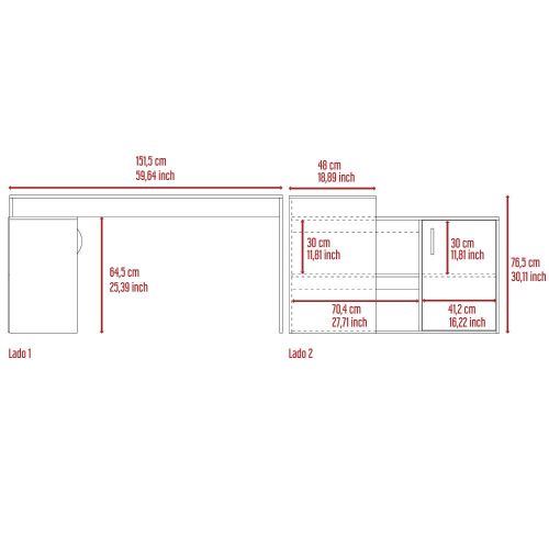 Pearl Desk L-Shaped, what could be more perfect for the work-from-home set than a Pearl Desk? This unique, modern L-shaped desk is perfect for any corner of your room. It comes with two open shelves and two inside shelves with doors, making it the perfect place to store all of your supplies. superior top (75.1'‘) So why not opt for a Pearl Desk today? You'll love its practicality and style! Designed with elegant dark brown and light gray manufactured wood finish.