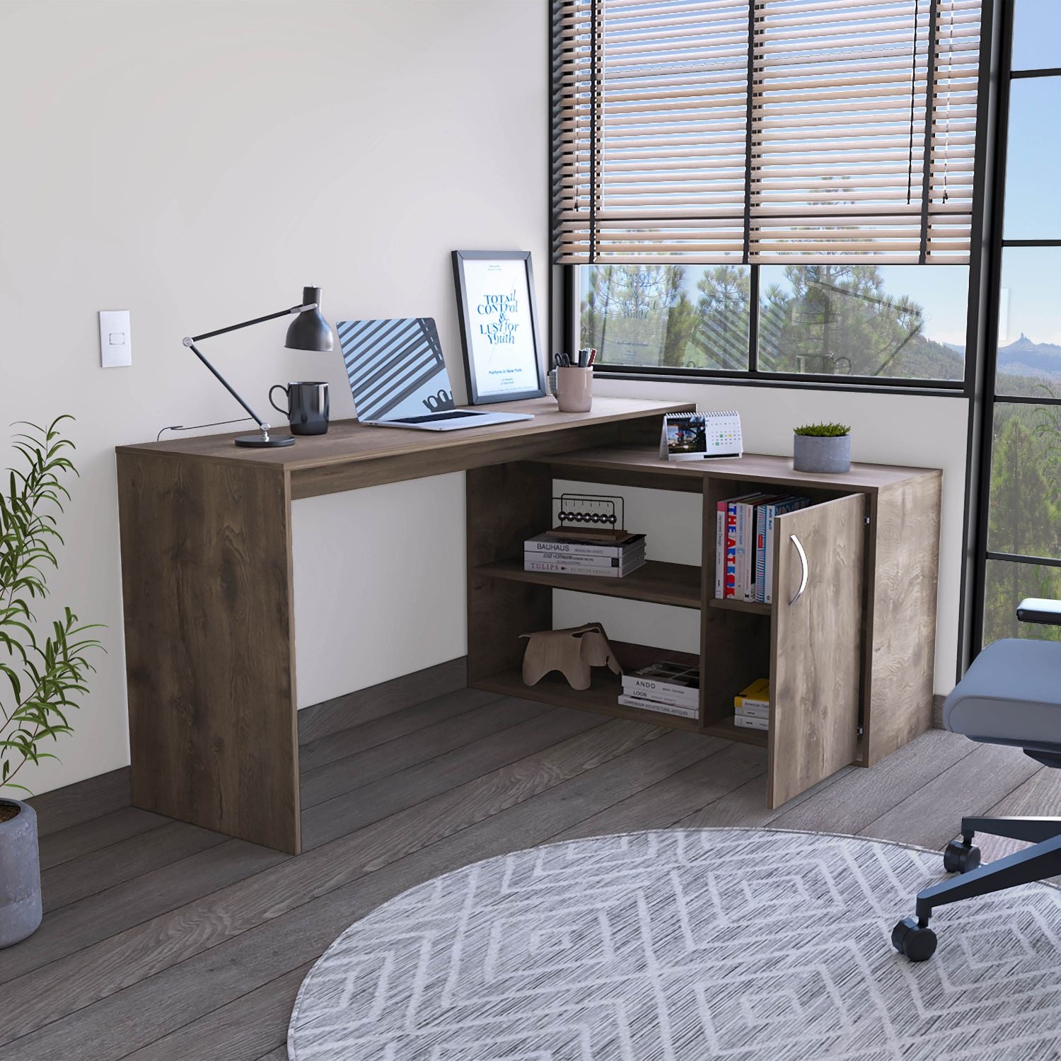 Pearl L-Shaped Desk, Single Door Cabinet, Two Shelves