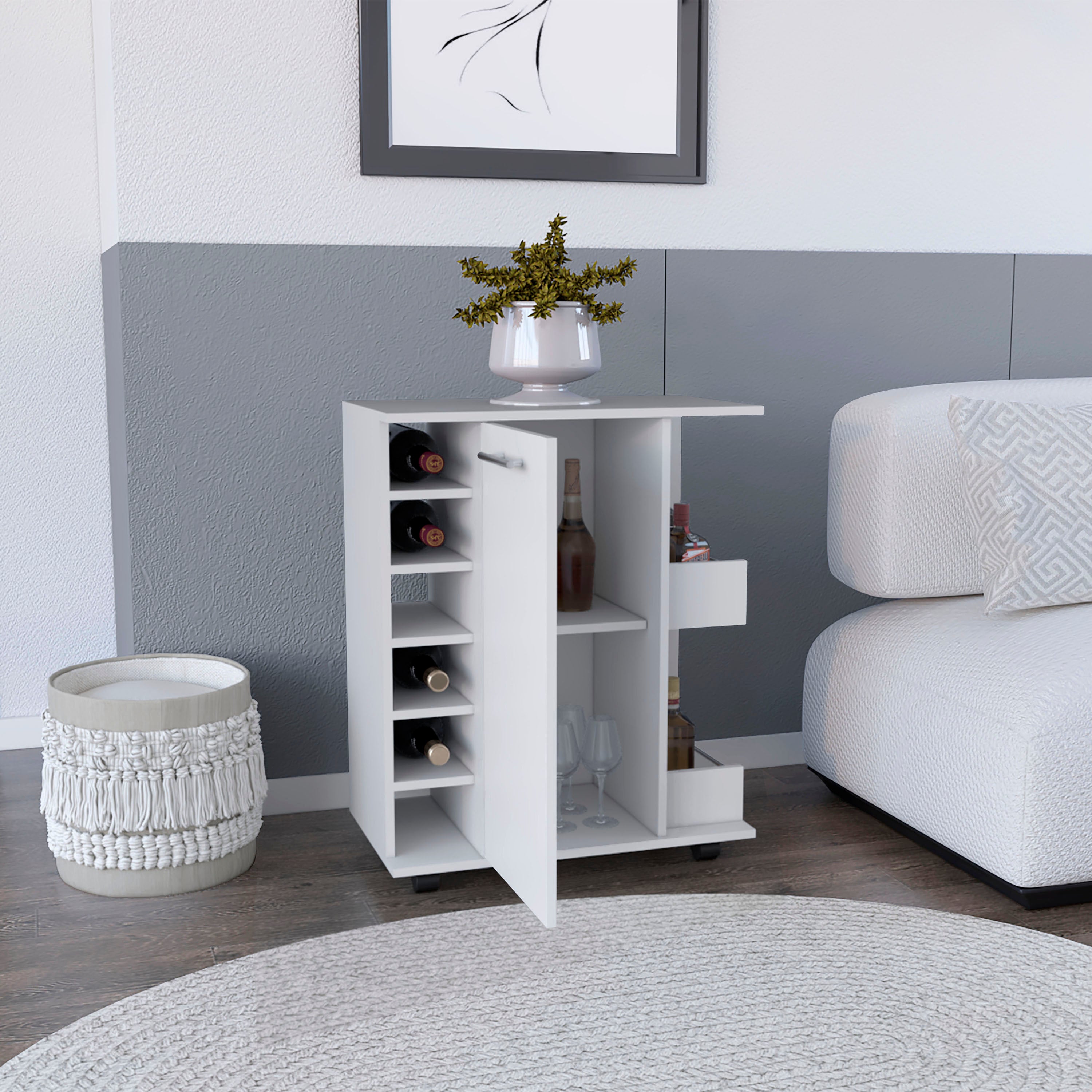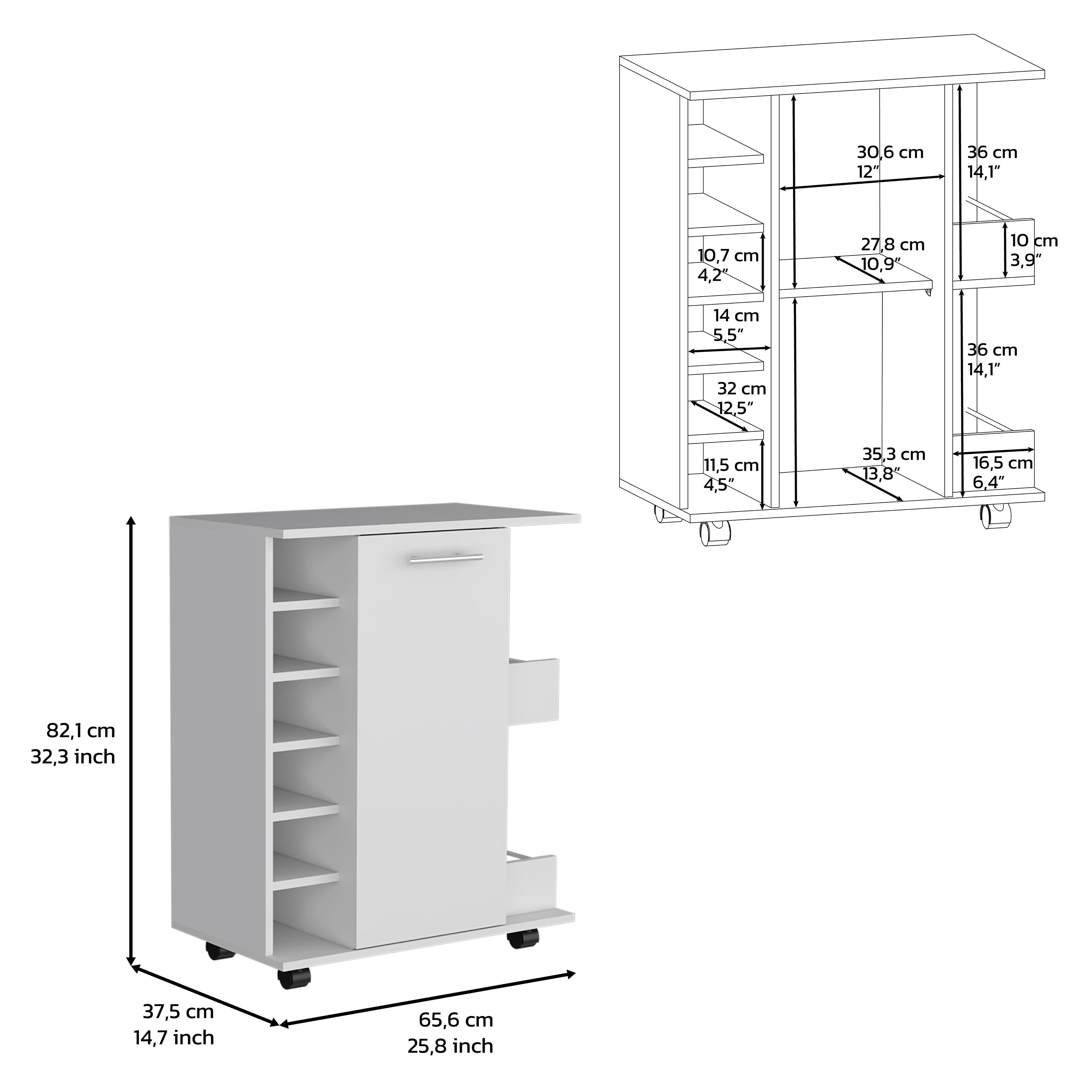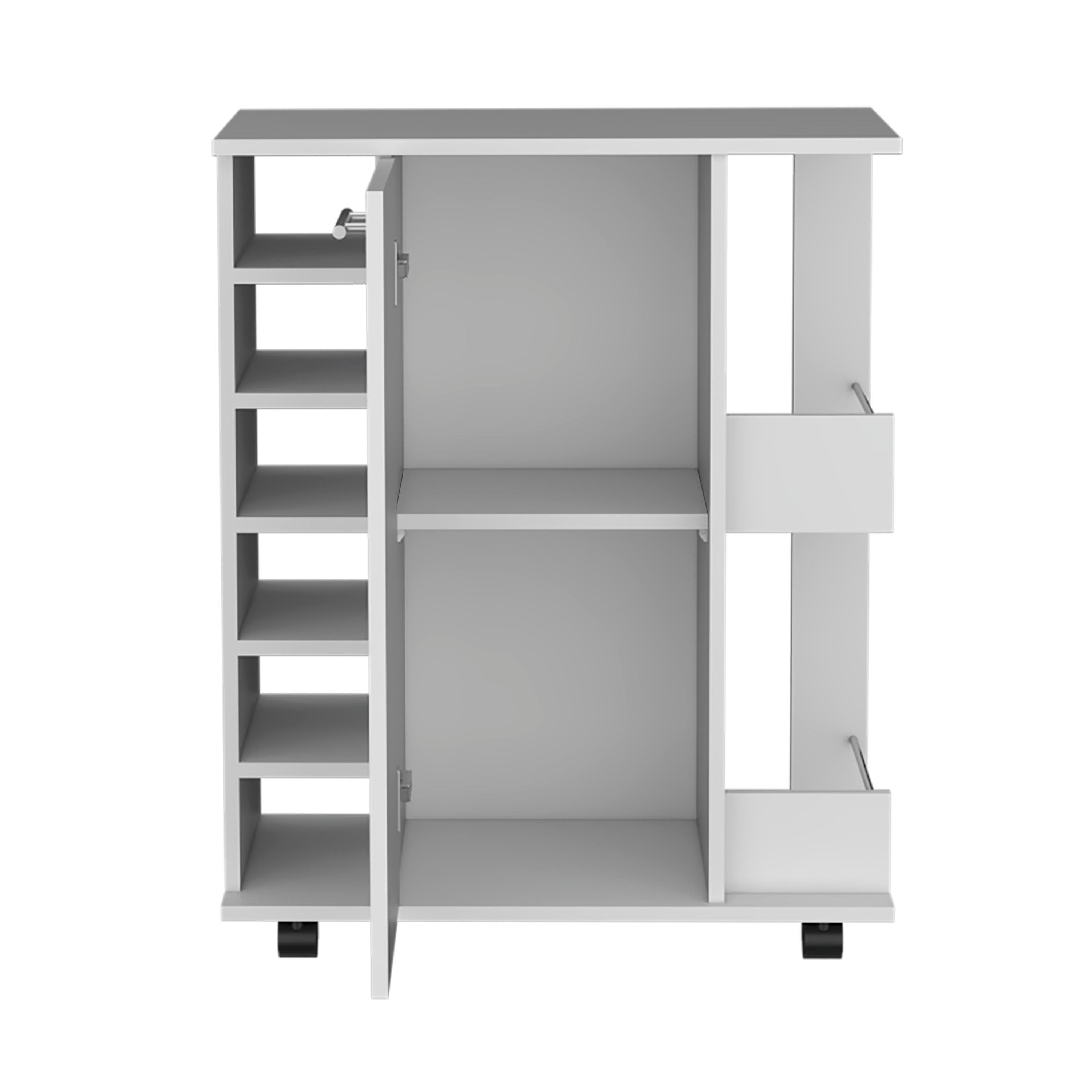 Selden Bar Cart with Six-Built in Bottle Racks, Casters and Two-Open Side Shelves