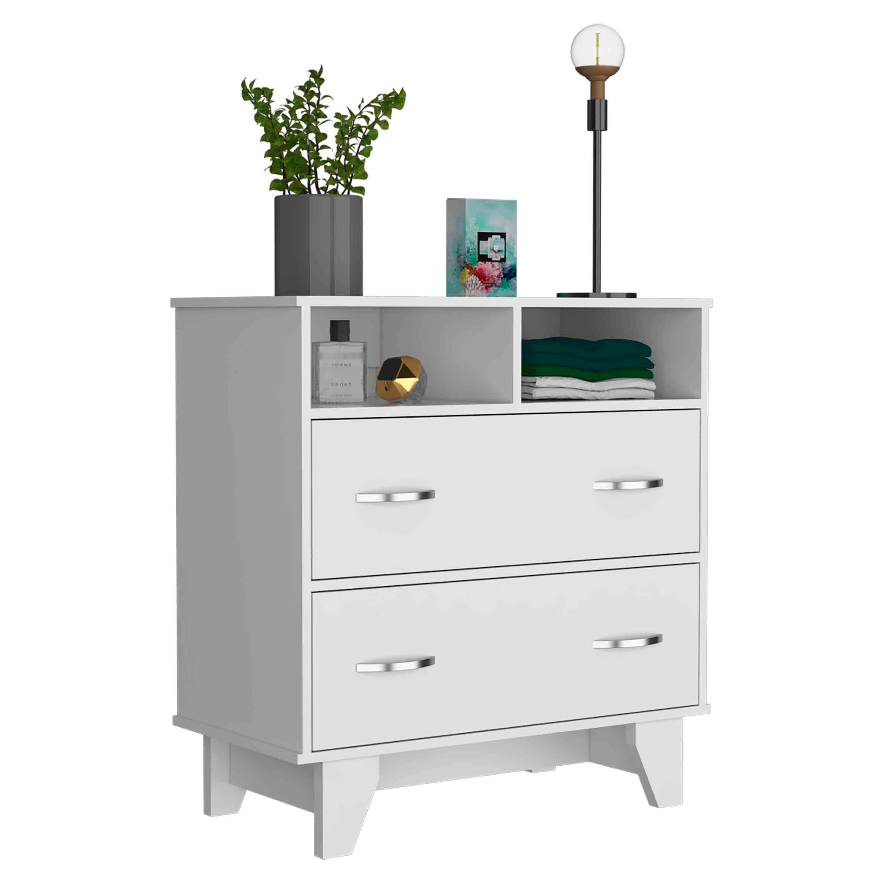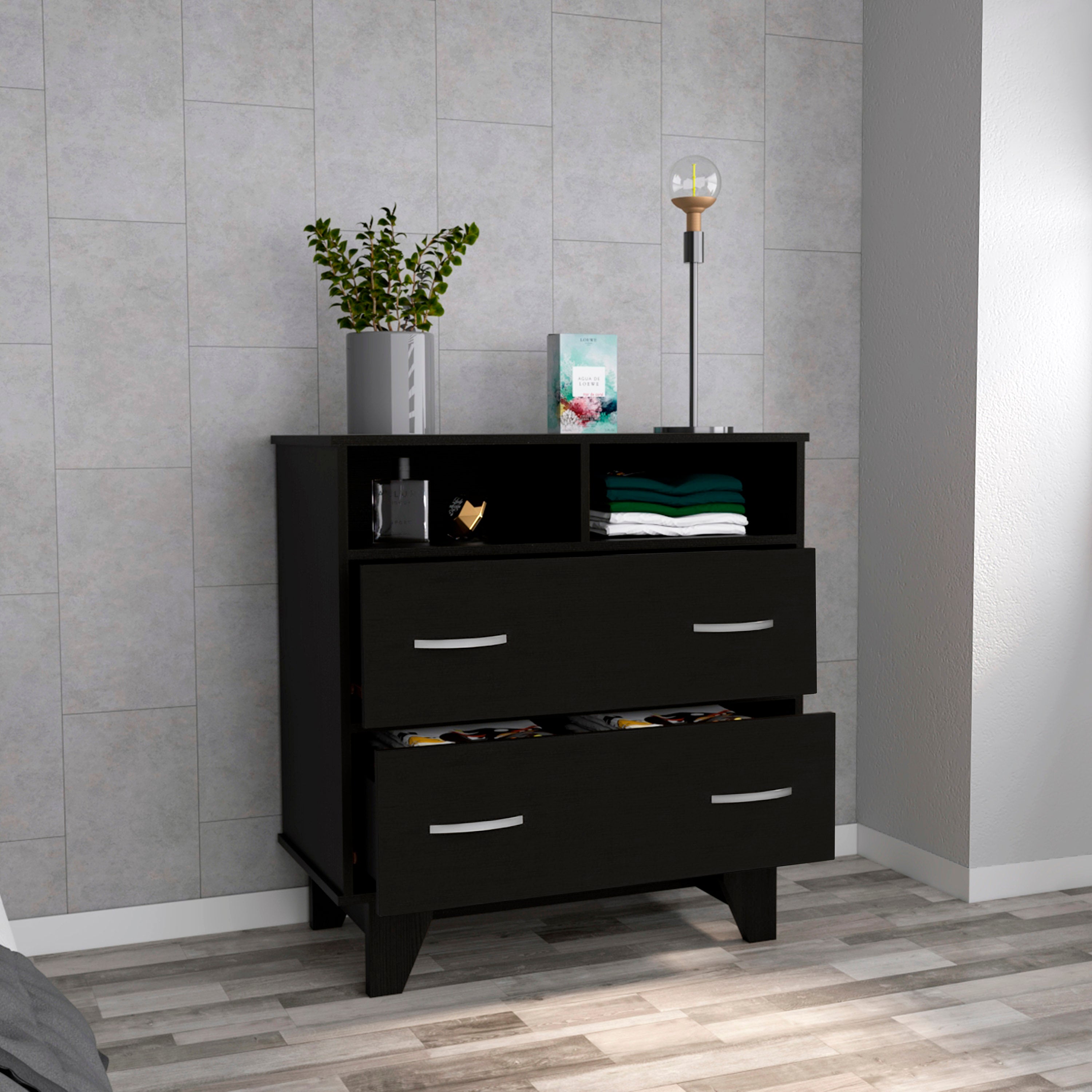 Stamford Two Drawer Dresser, Four Legs, Two Open Shelves, Superior Top