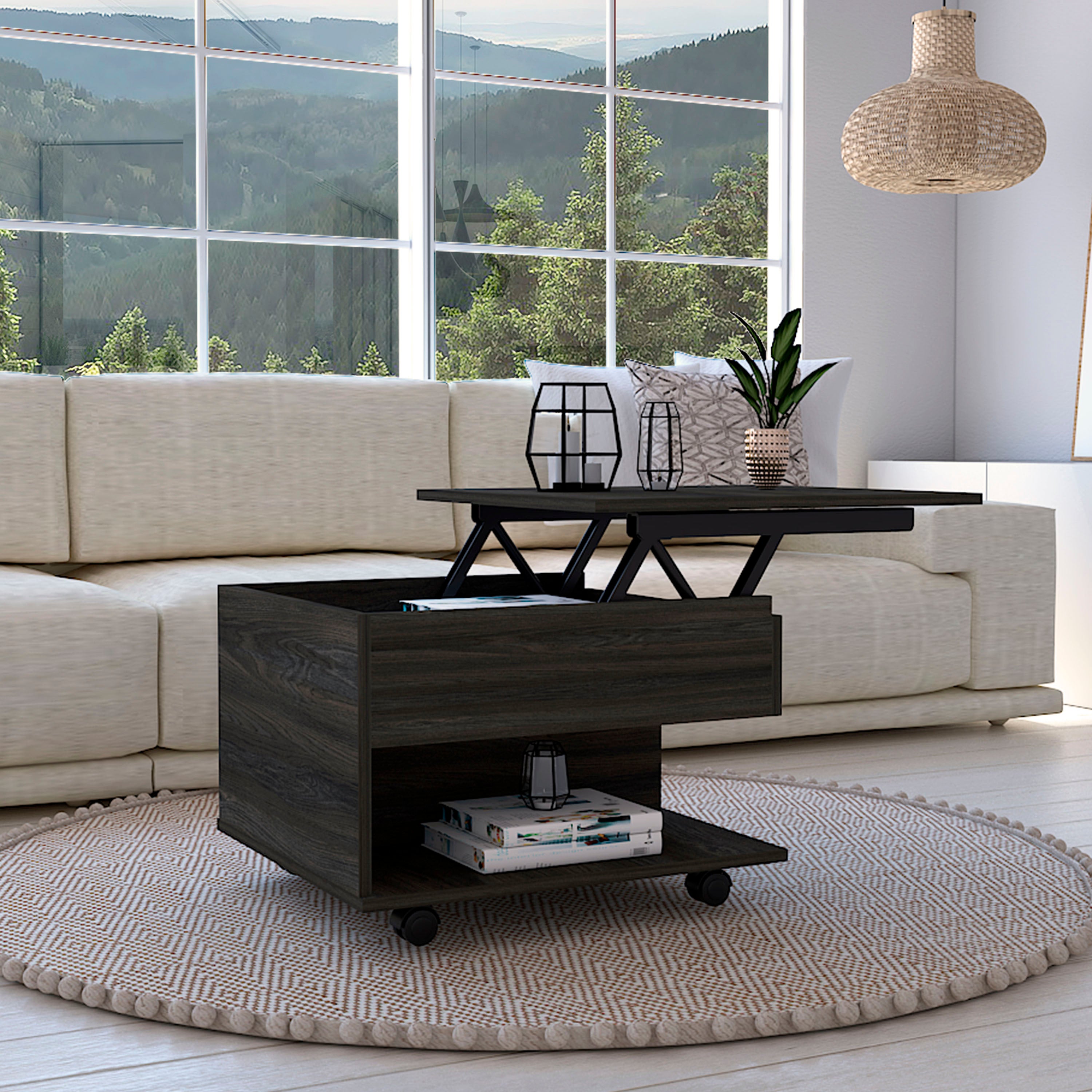 Babel Lift Top Coffee Table, Casters, One Shelf