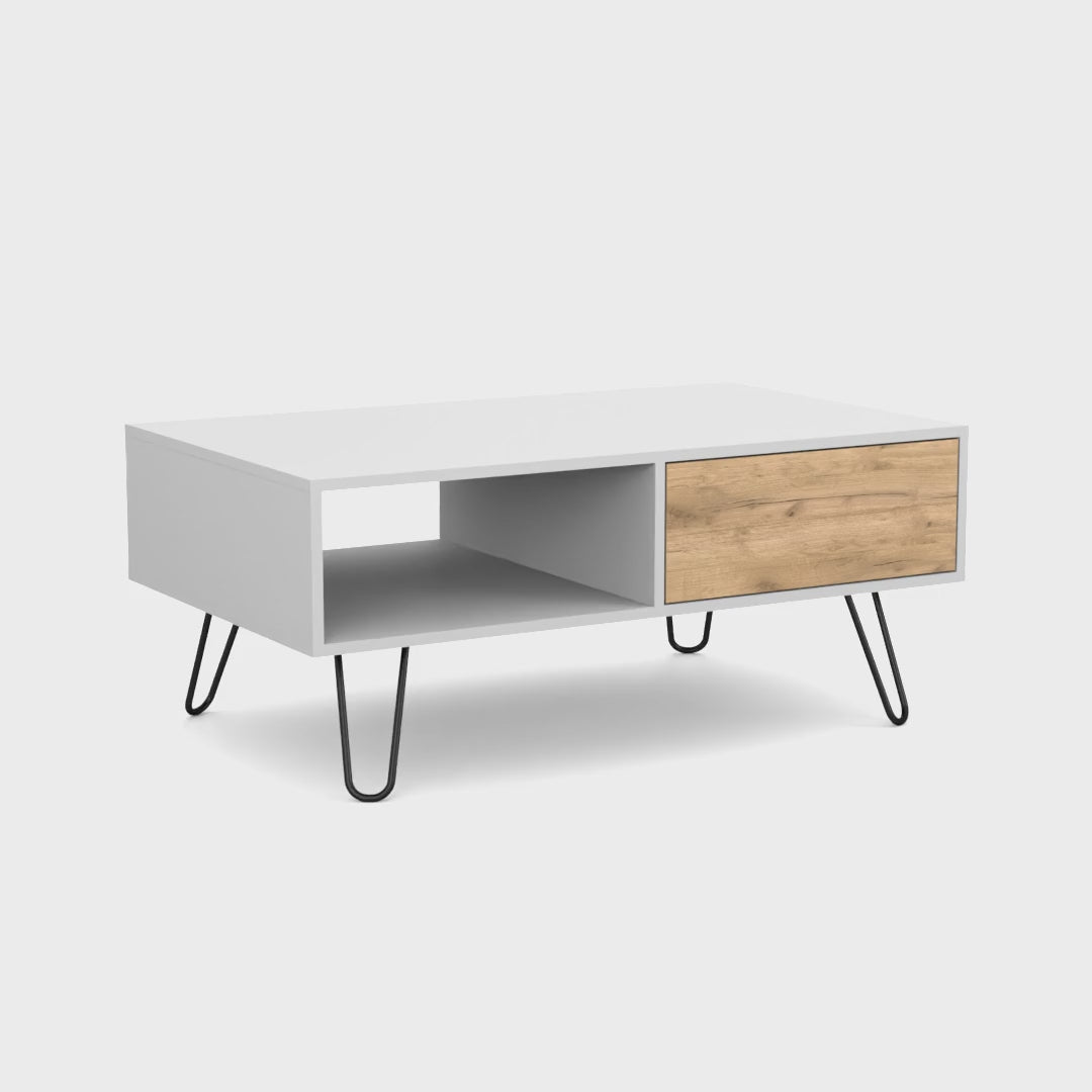 Combine style and functionality in your living room with the Ranlo Coffee Table. Featuring one drawer and one open shelf, this coffee table offers versatile storage options for magazines, remotes, and decorative items while maintaining a clean and organized space. Its modern design and compact structure make it an ideal centerpiece for any living room.