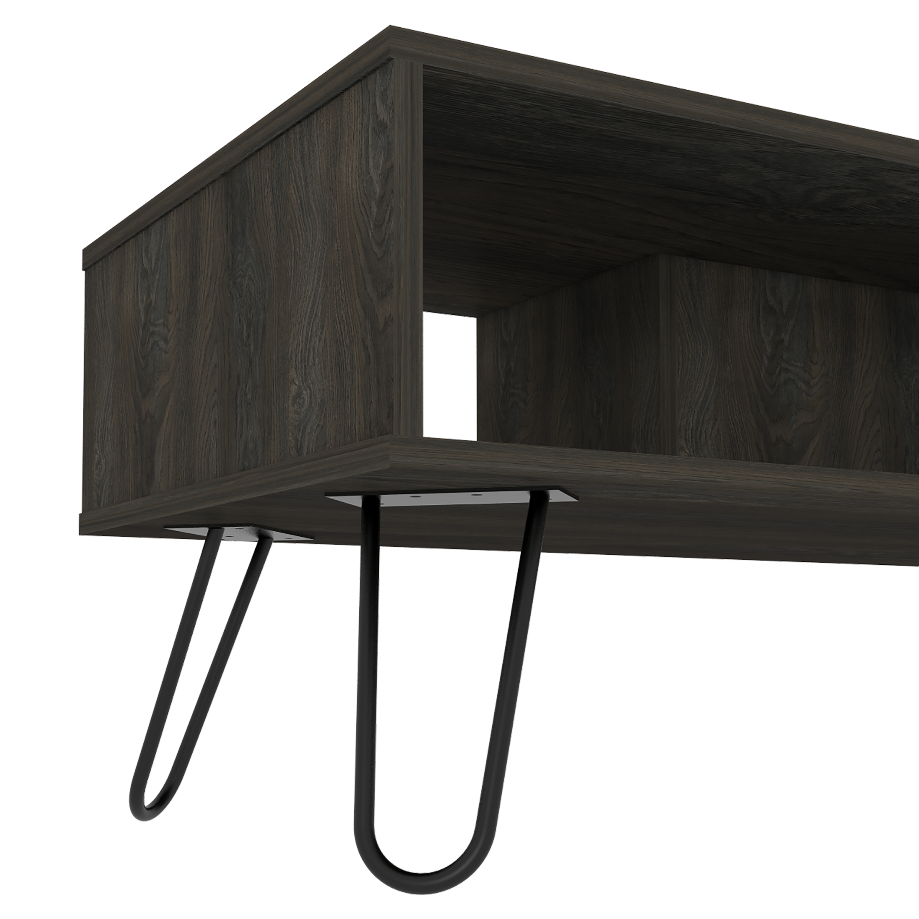 Vassel Coffee Table mobility and style work together, this modern coffee table will be the protagonist when you receive your guests to enjoy a pleasant time in your living room. It features a spacious top surface (39" wide X 17" depth), the exquisite combination of metal round legs and particle board gives it an amazing look, and an all-around open shelf to provide a lot of space to display decor or storage items like books. Designed with elegant White manufactured wood finish.