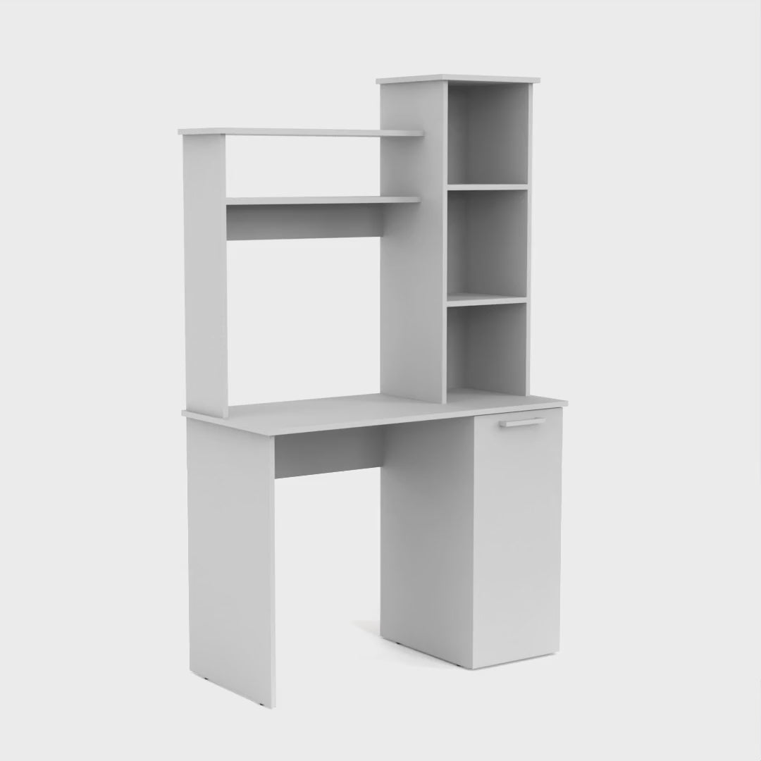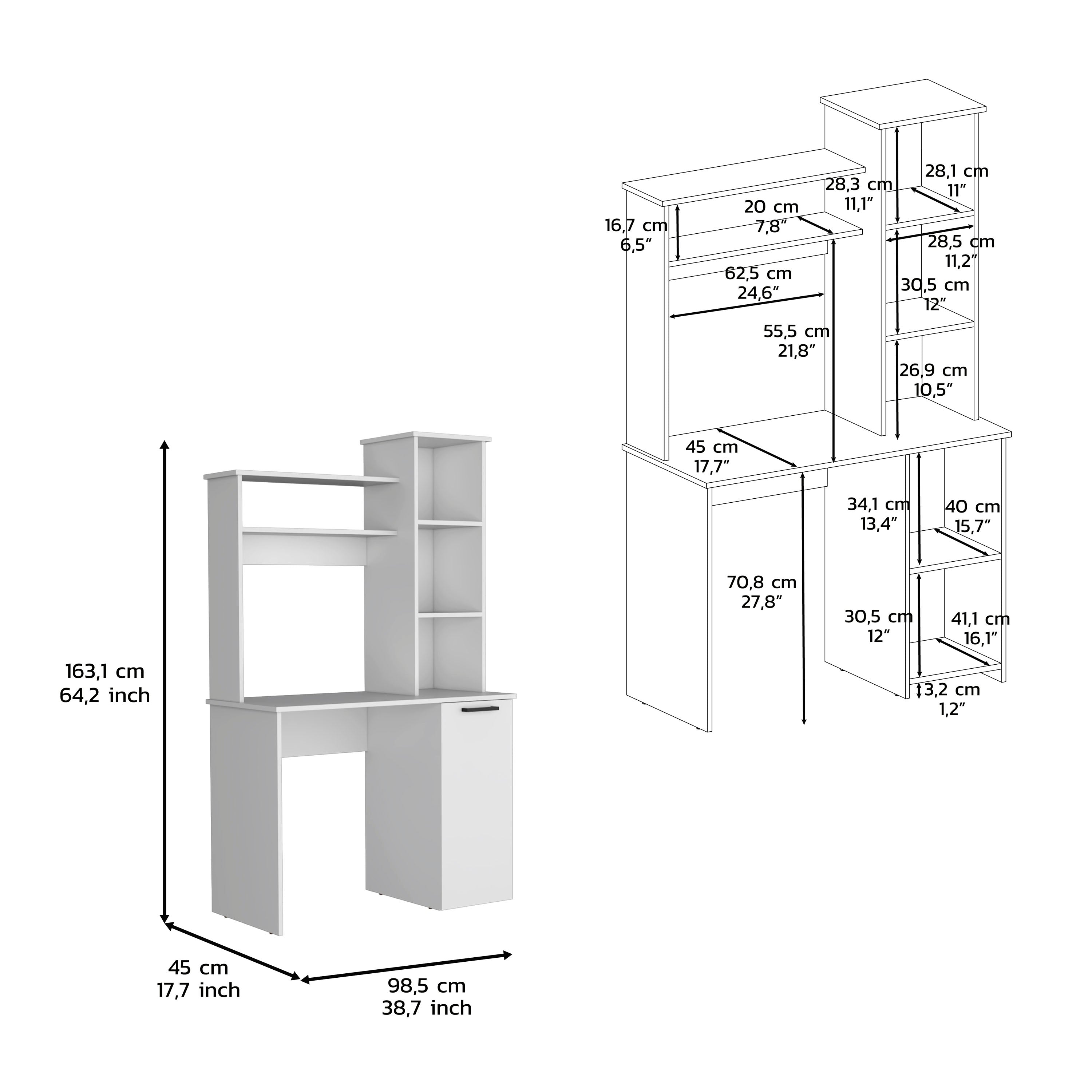 Introducing the Muncy Computer Desk with Hutch: where modern design meets unparalleled functionality. A 25.8"W x 17.7"D work platform promises ample room for tasks big and small. The hutch is perfect for decor items or essential work tools. Additional storage needs? Muncy's got you covered with multiple shelves and a singular door cabinet. Whether you prefer the clean white, classic black, or light gray manufactured wood finish, this desk seamlessly integrates into any workspace aesthetic. Upgrade to Muncy – the epitome of organized sophistication.