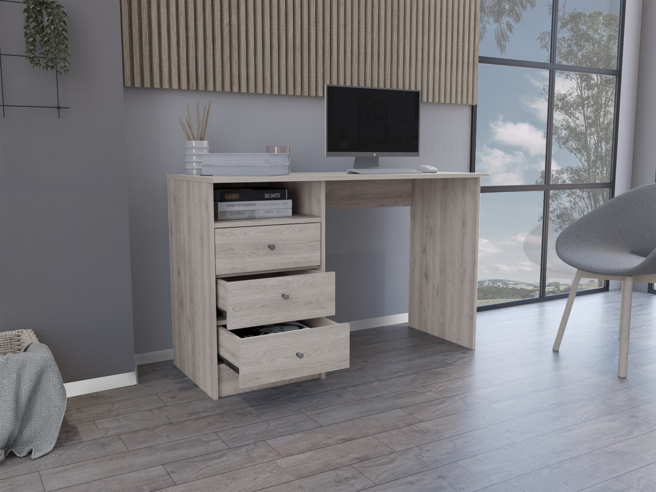 The Nemocon is a 3-drawer modern pedestal Desk, perfect for a home office or compact working area. The open shelf provides a space for quick storage and organization to maintain a clutter-free Desktop. A clean and contemporary design with ample storage will compliment your style and maximize your space, it also includes three ample drawers (15,5''W X 5,9''H). Designed with elegant light gray, gray oak, and black wengue manufactured wood finish.