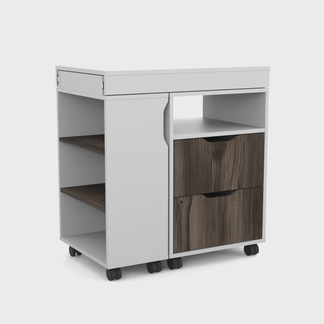 Odessa Extendable Desk, 2 Drawers, 4 Shelves, 4 Wheels