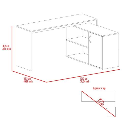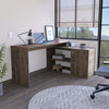 Pearl Desk L-Shaped, what could be more perfect for the work-from-home set than a Pearl Desk? This unique, modern L-shaped desk is perfect for any corner of your room. It comes with two open shelves and two inside shelves with doors, making it the perfect place to store all of your supplies. superior top (75.1'‘) So why not opt for a Pearl Desk today? You'll love its practicality and style! Designed with elegant dark brown and light gray manufactured wood finish.