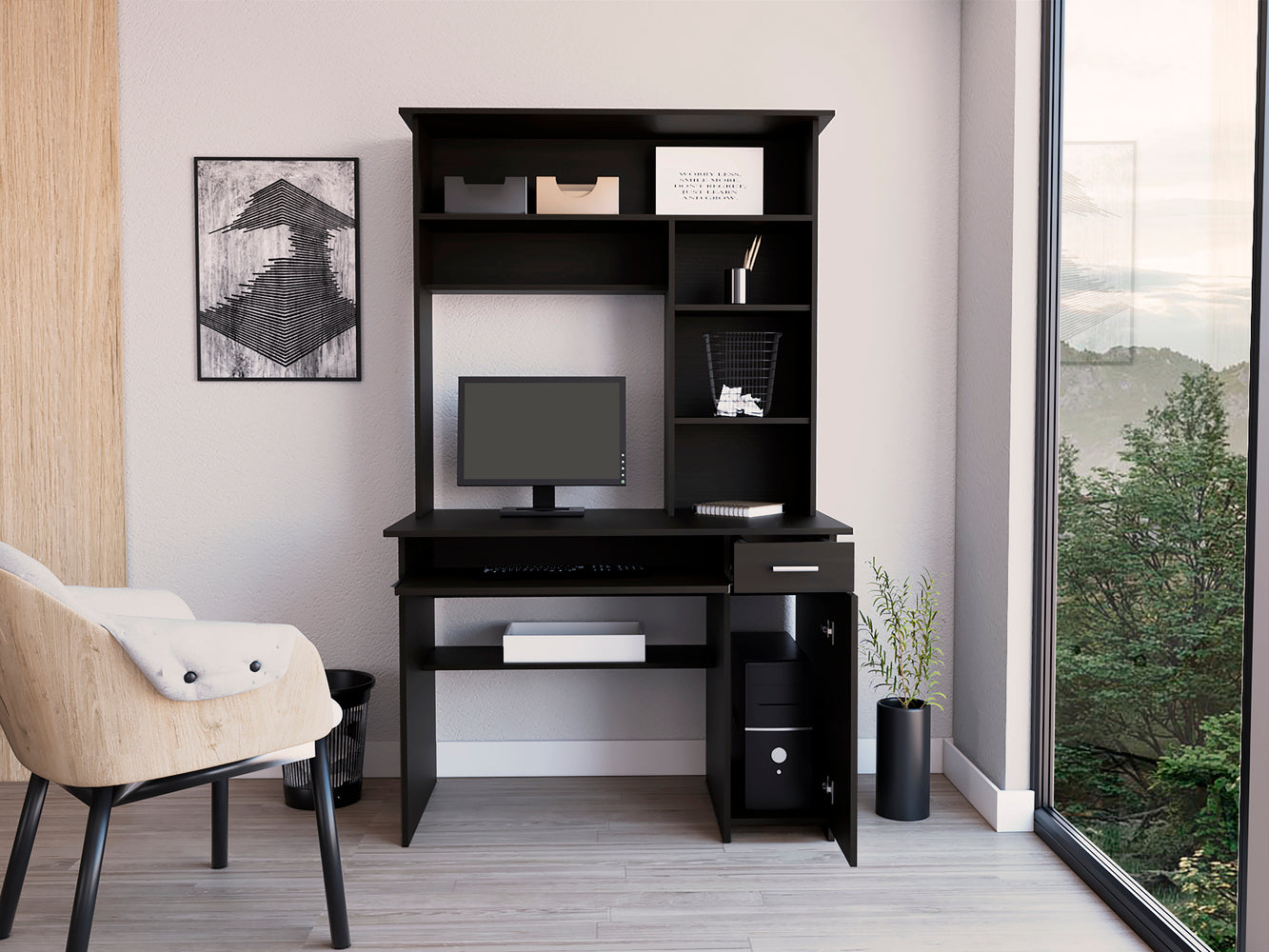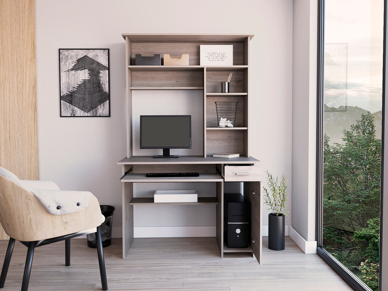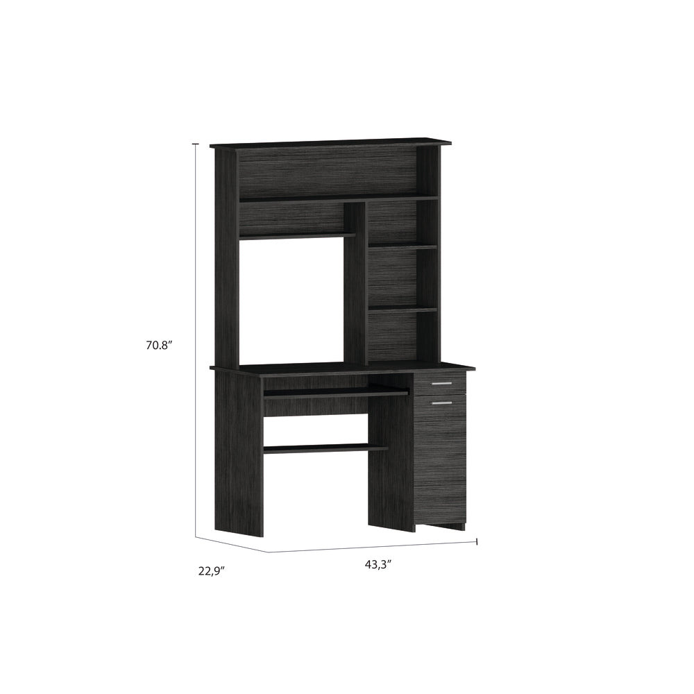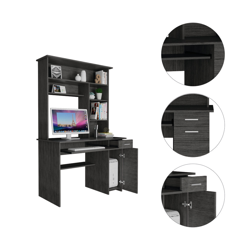 Xalo Compu Hutch Desk, Keyboard Tray, Door Panel For CPU, Multiple Shelves, One Drawer