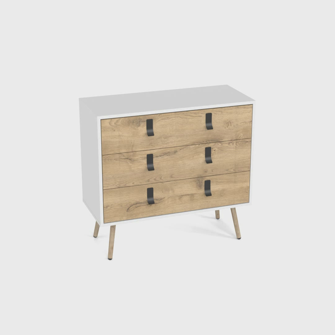 Toka Three Drawers Dresser with Handles and Wooden Legs