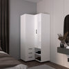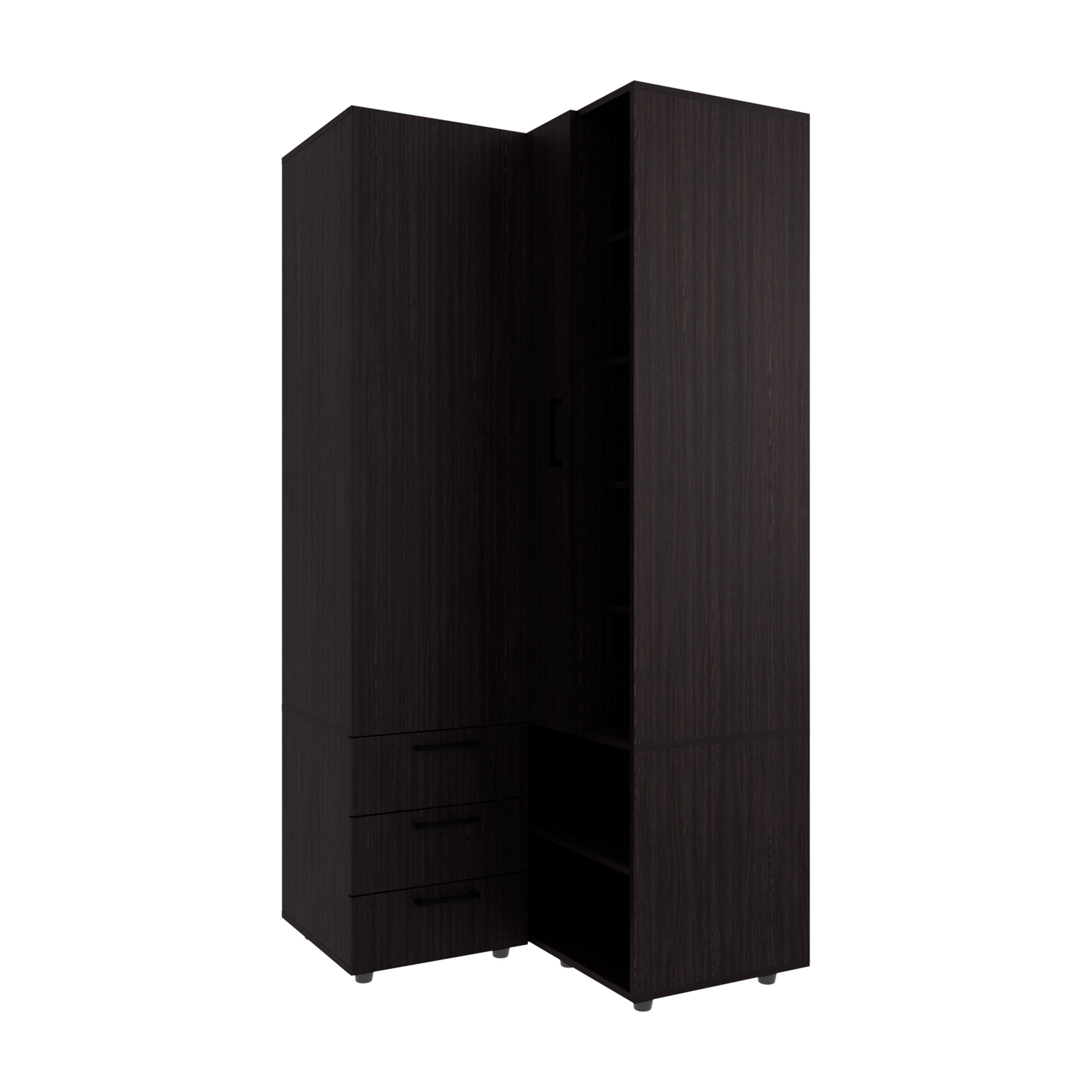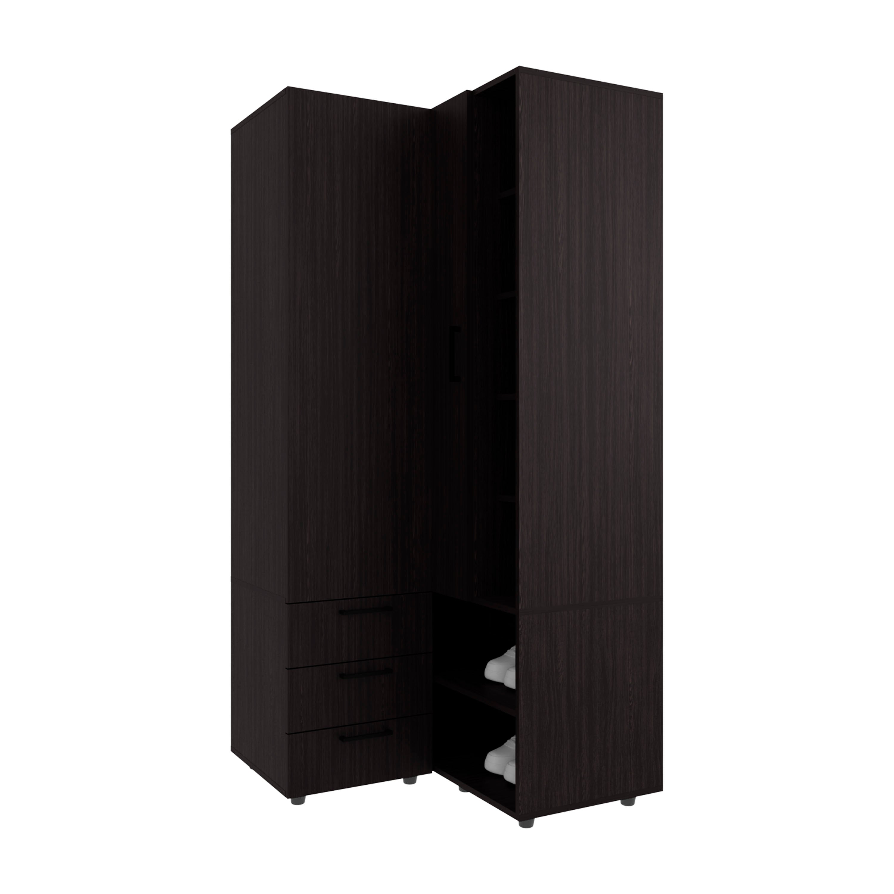 The Granger Corner Armoire is a modern and functional space-saving storage solution, perfect for maximizing unused corners in your bedroom. Designed with one door, three drawers, seven shelves, and ten sturdy legs, it provides ample room to organize clothing, shoes, and accessories while maintaining excellent stability.